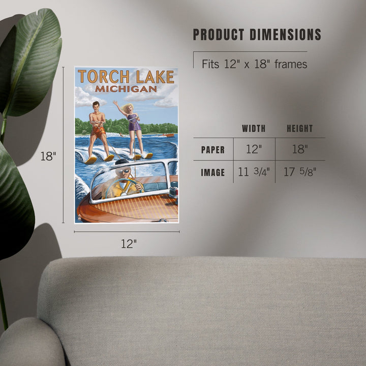 Torch Lake, Michigan, Water Skiing and Wooden Boat, Art & Giclee Prints Art Lantern Press