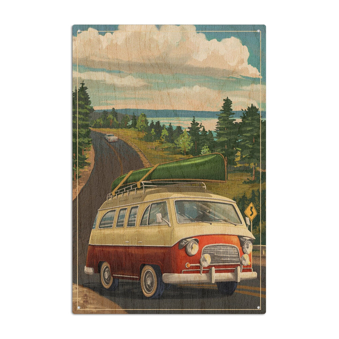 Camper Van, Canoe, Lantern Press Artwork, Wood Signs and Postcards - Lantern Press