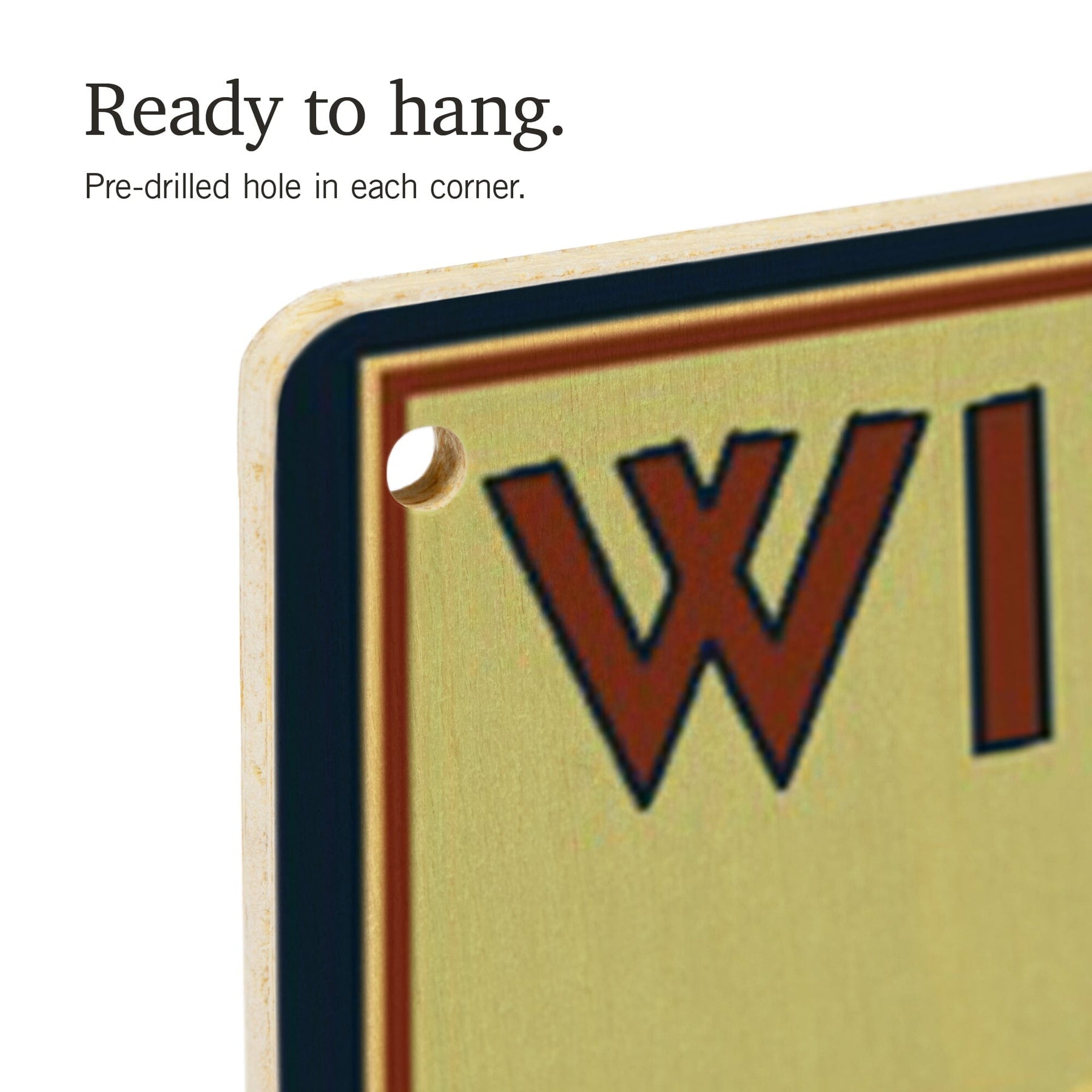 • Hole in each corner, ready to hang