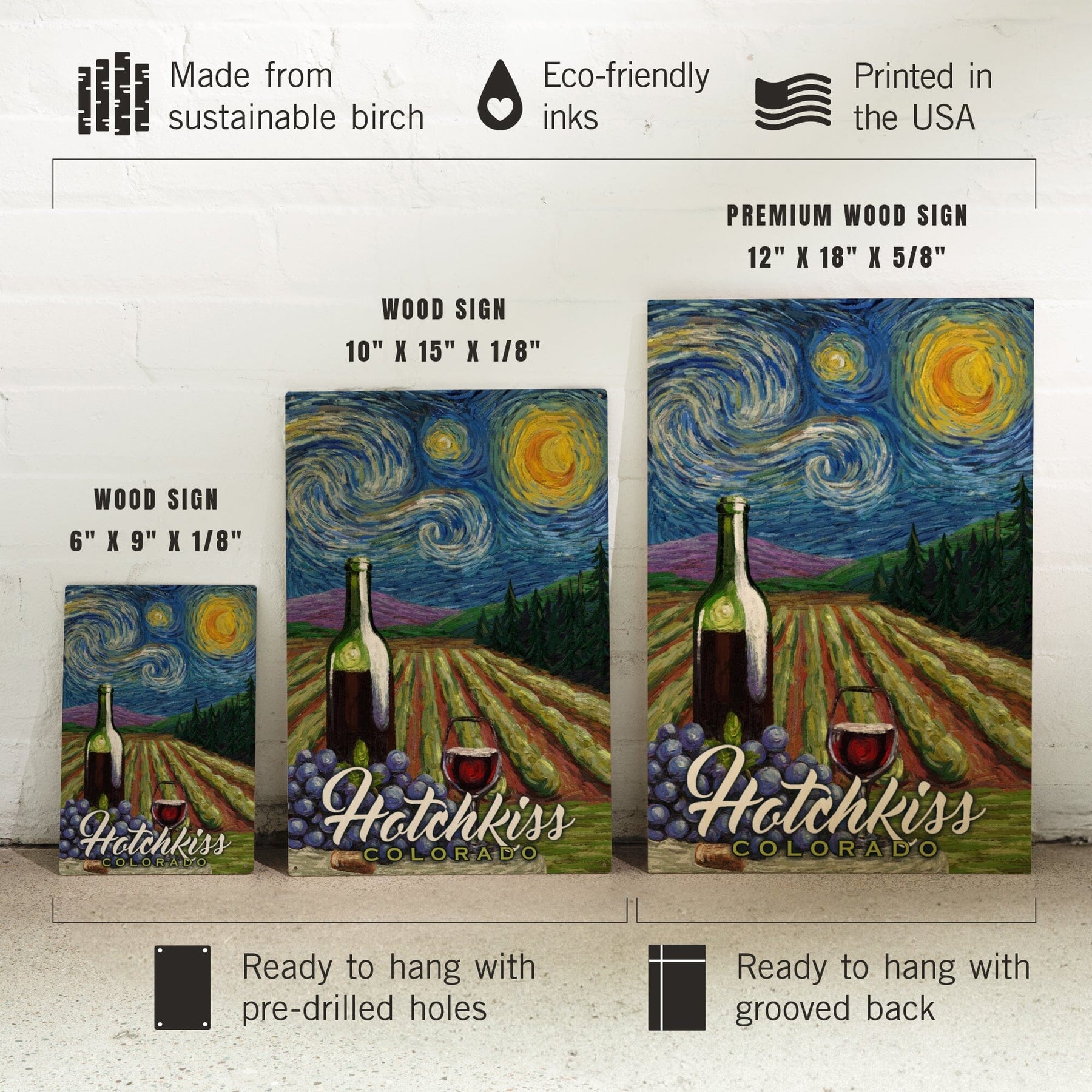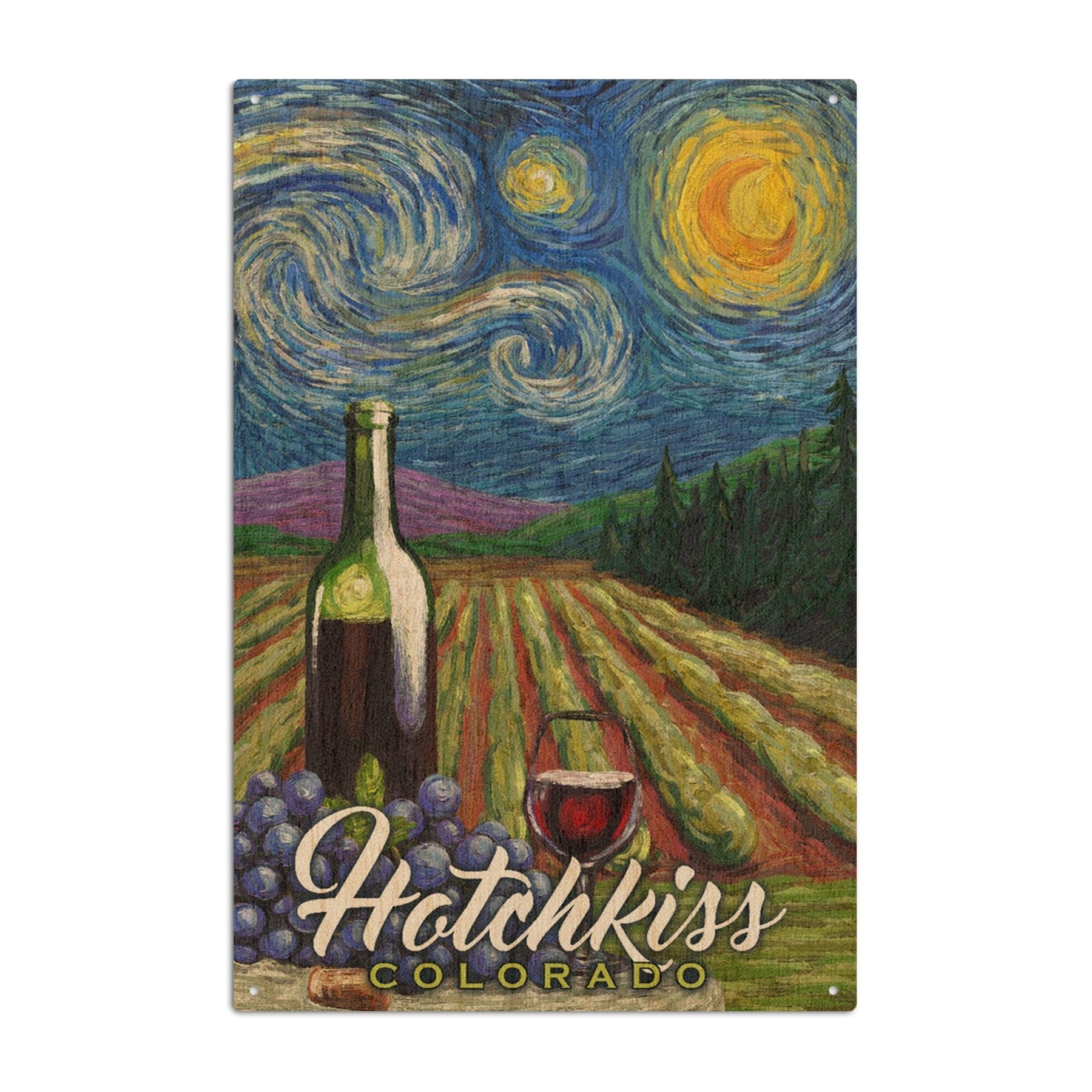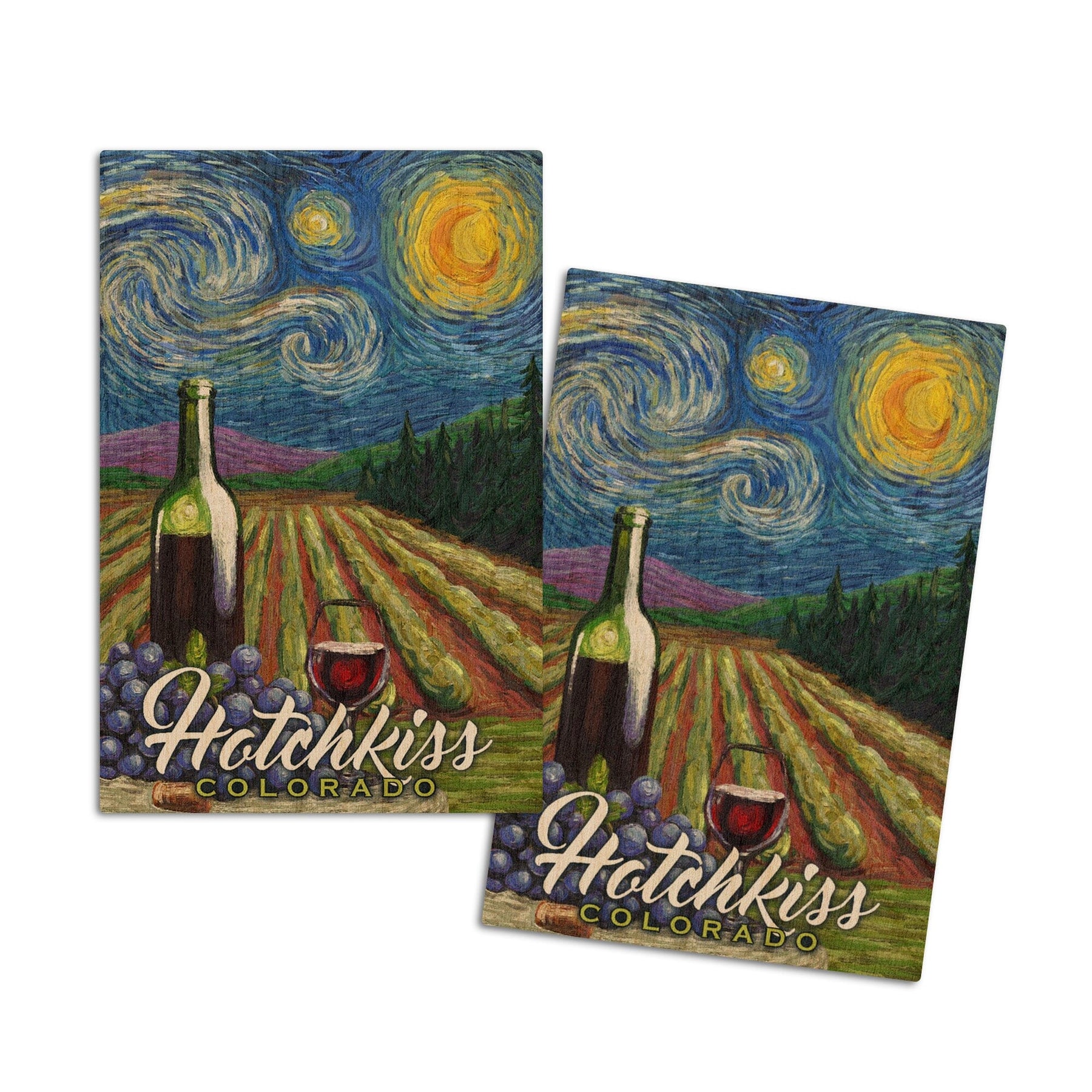 Hotchkiss, Colorado, Vineyard, Starry Night, Lantern Press Artwork, Wood Signs and Postcards