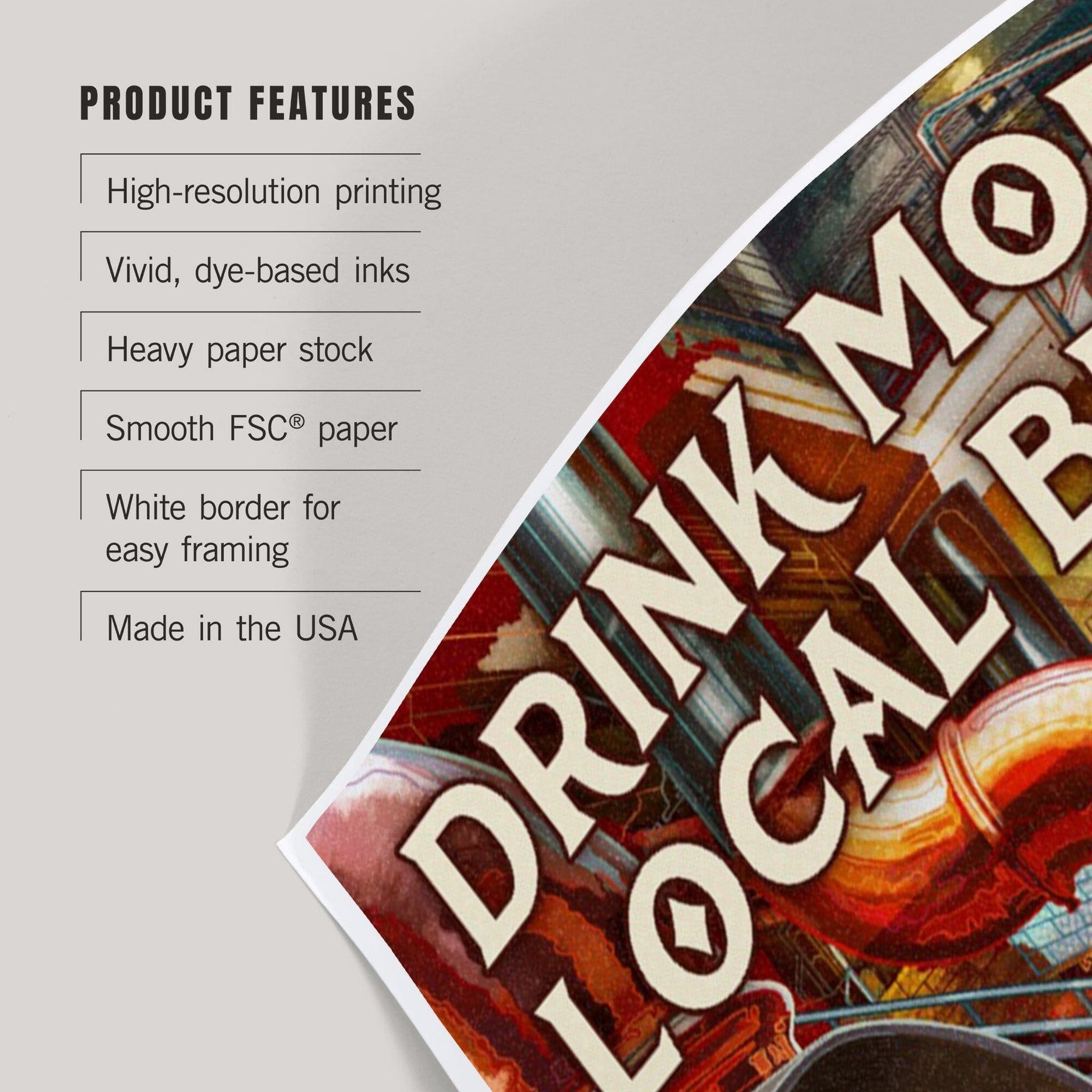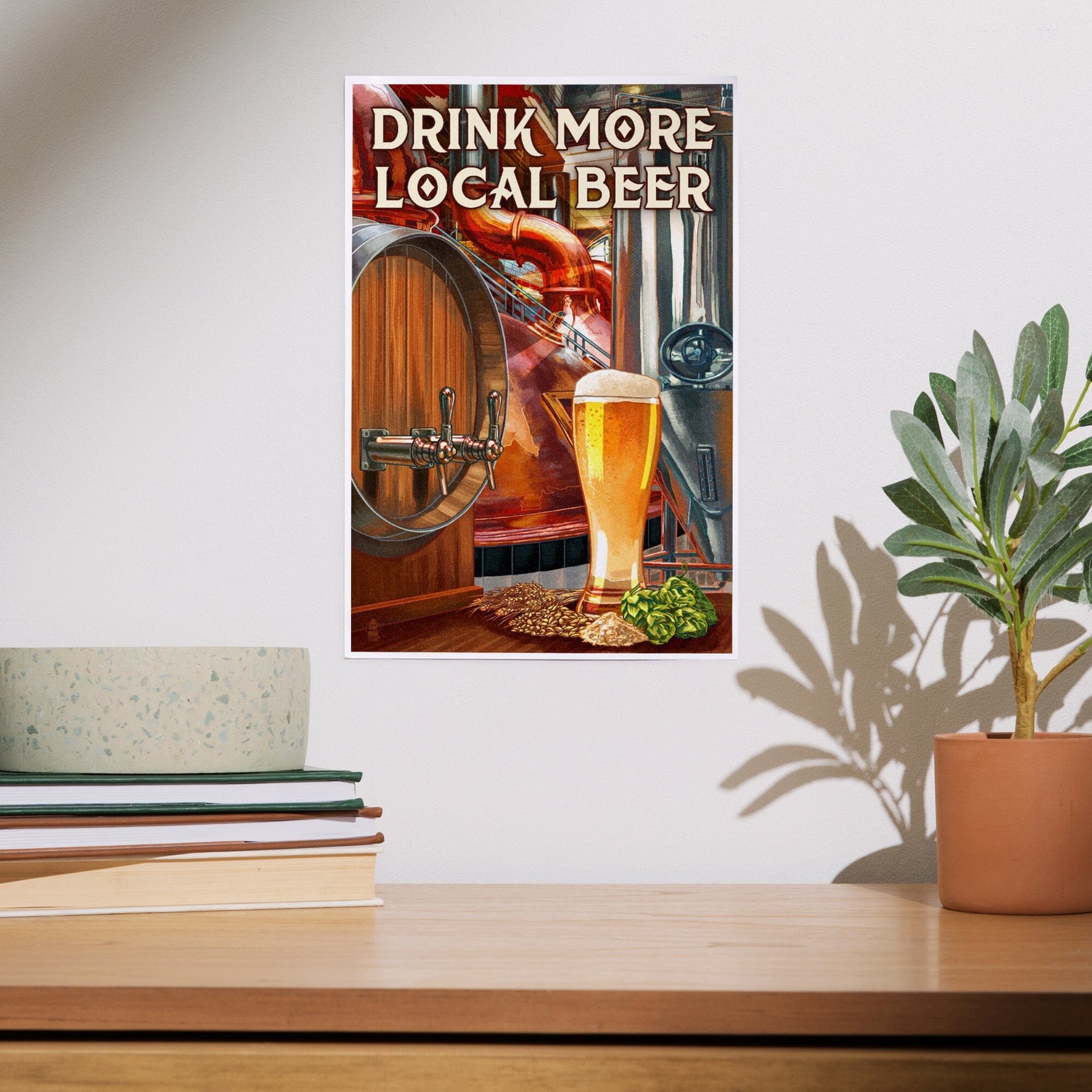 Drink More Local Beer, Brewery Scene, Art & Giclee Prints - Lantern Press
