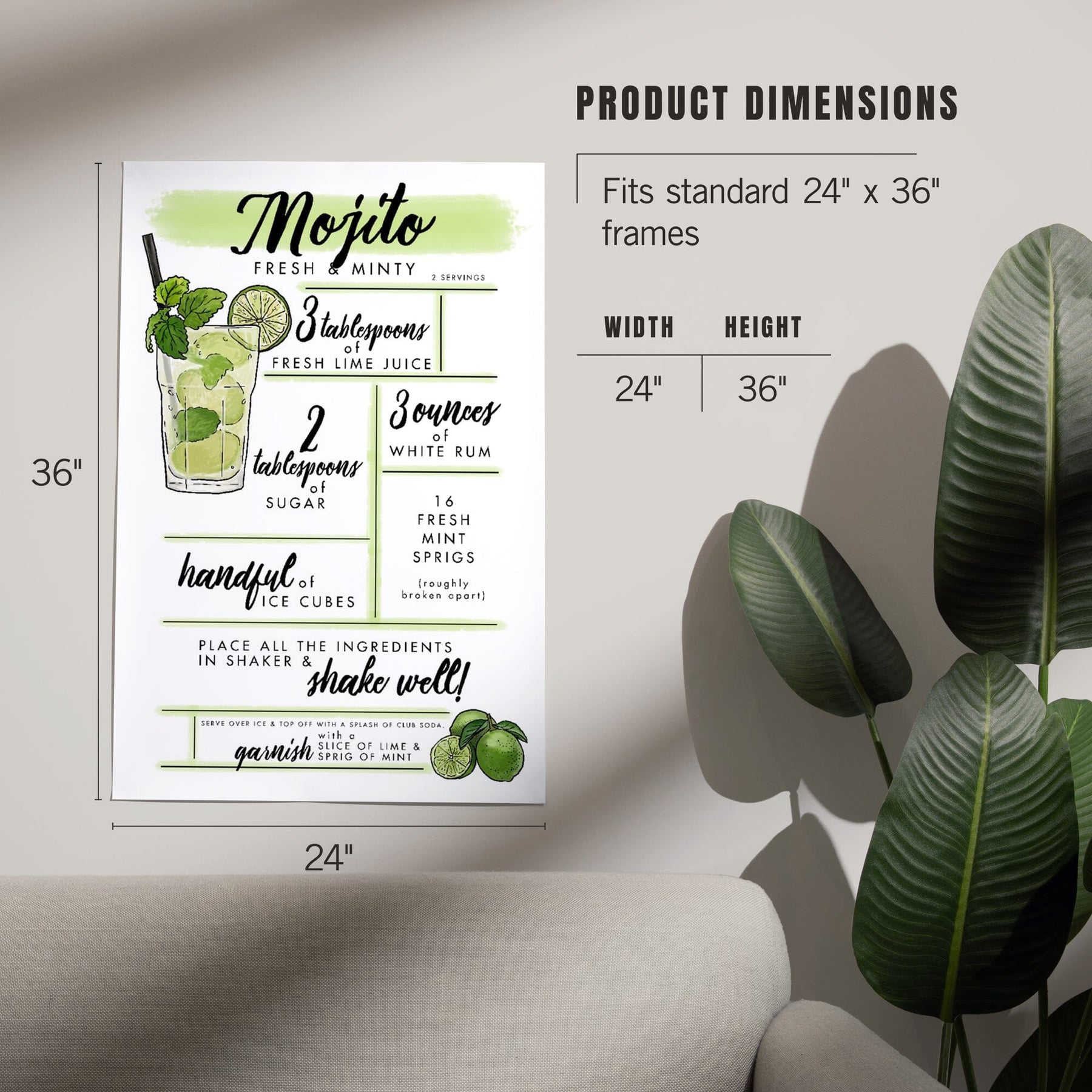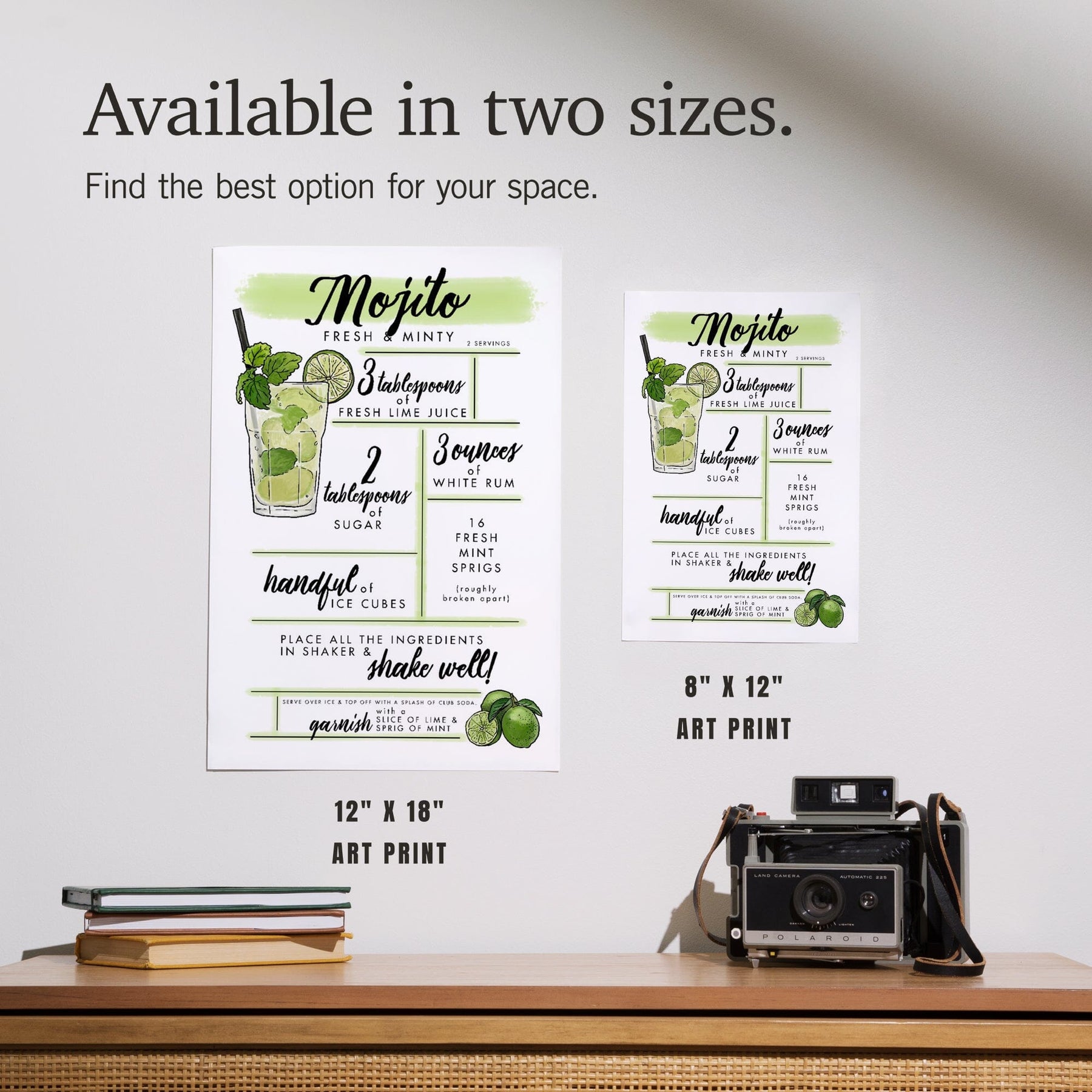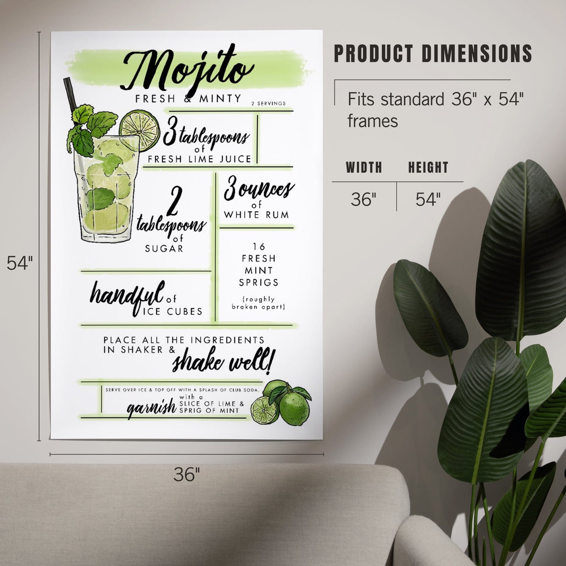 Mojito, Cocktail Recipe, Art & Giclee Prints Art Lantern Press