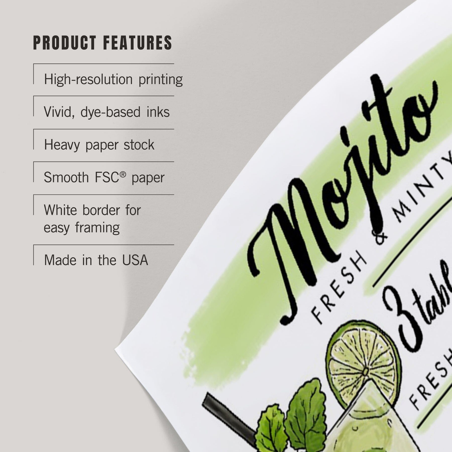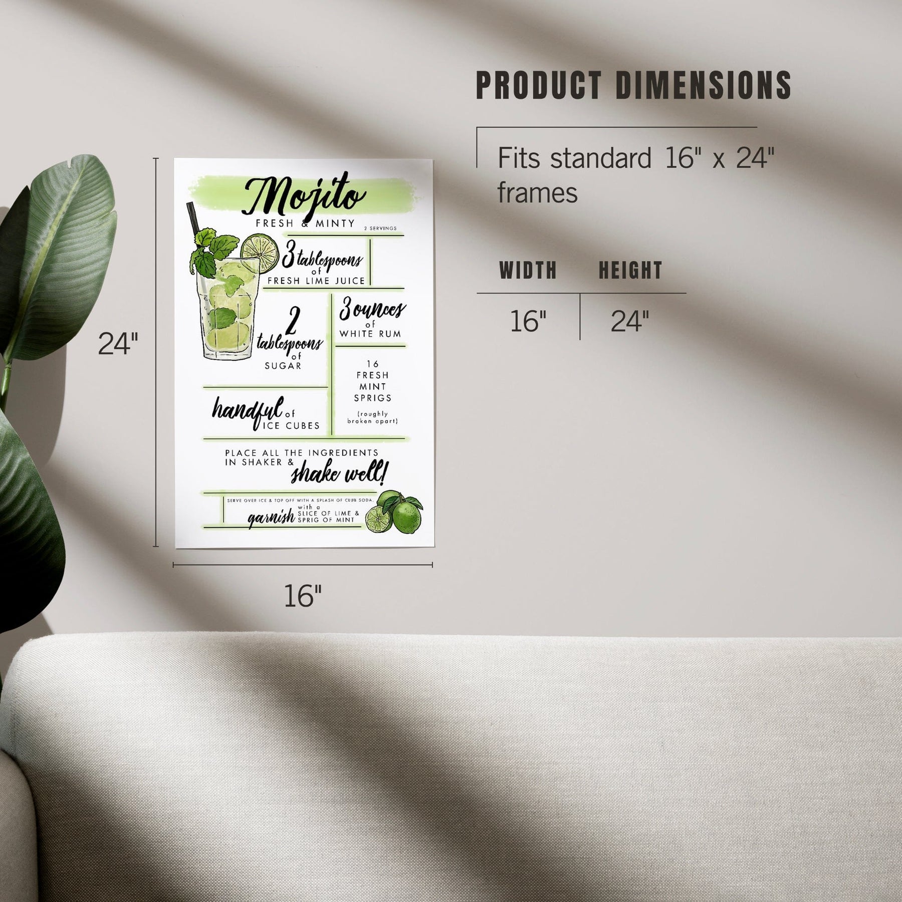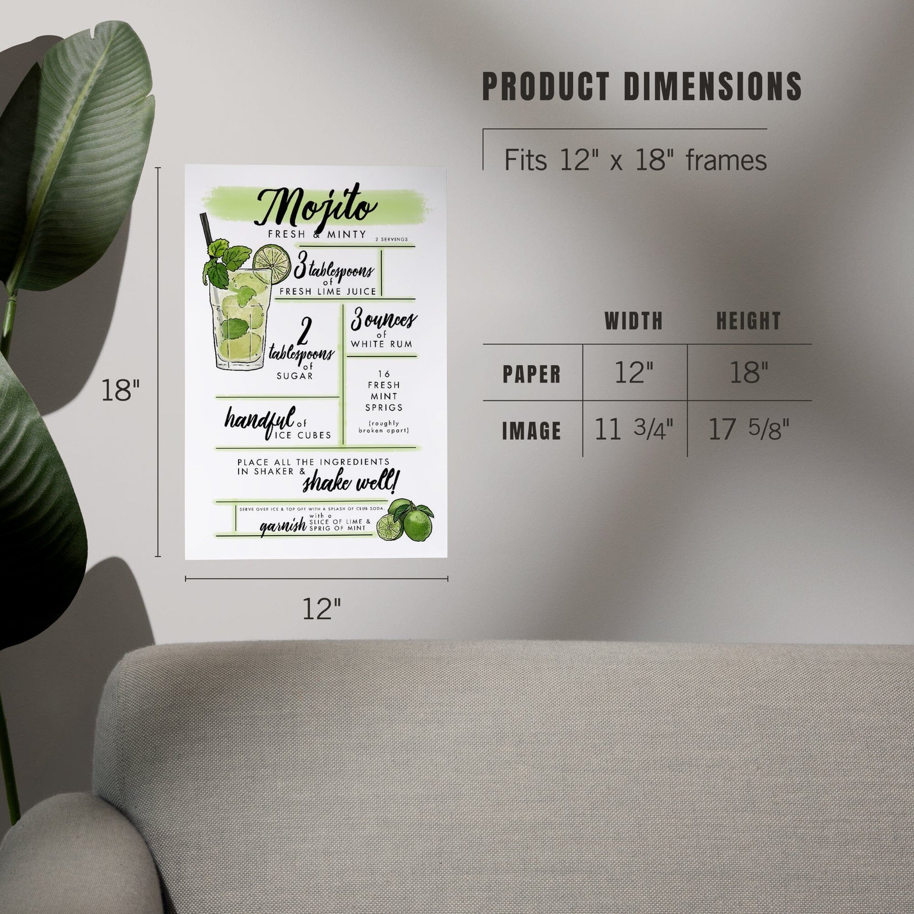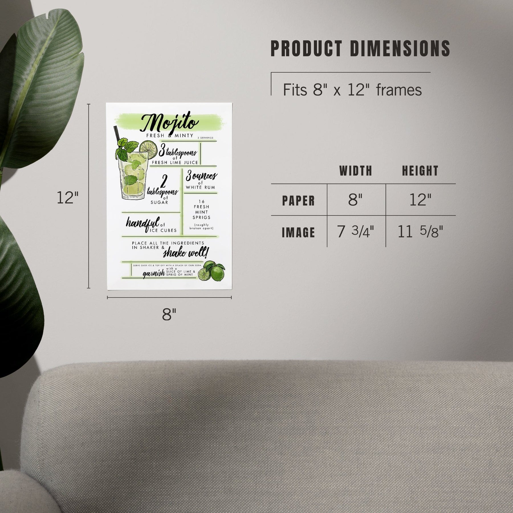 Mojito, Cocktail Recipe, Art & Giclee Prints Art Lantern Press