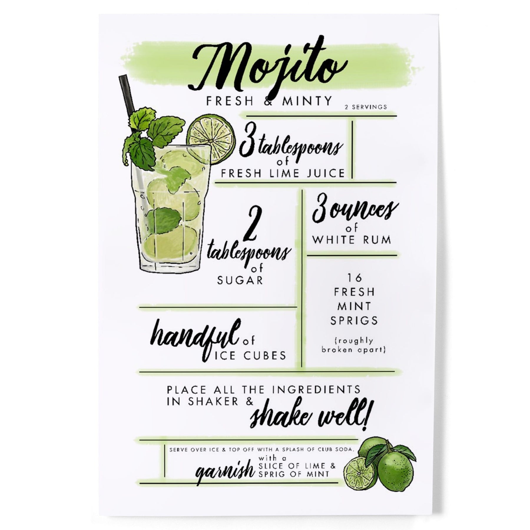 Mojito, Cocktail Recipe, Art & Giclee Prints
