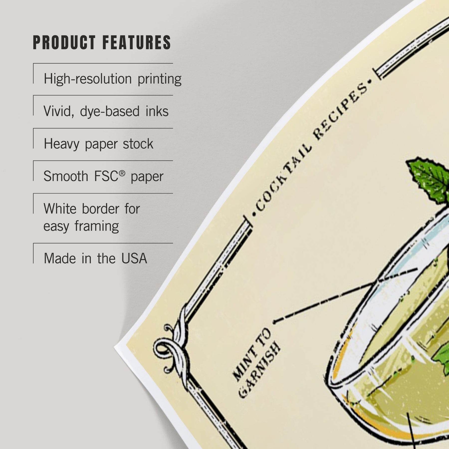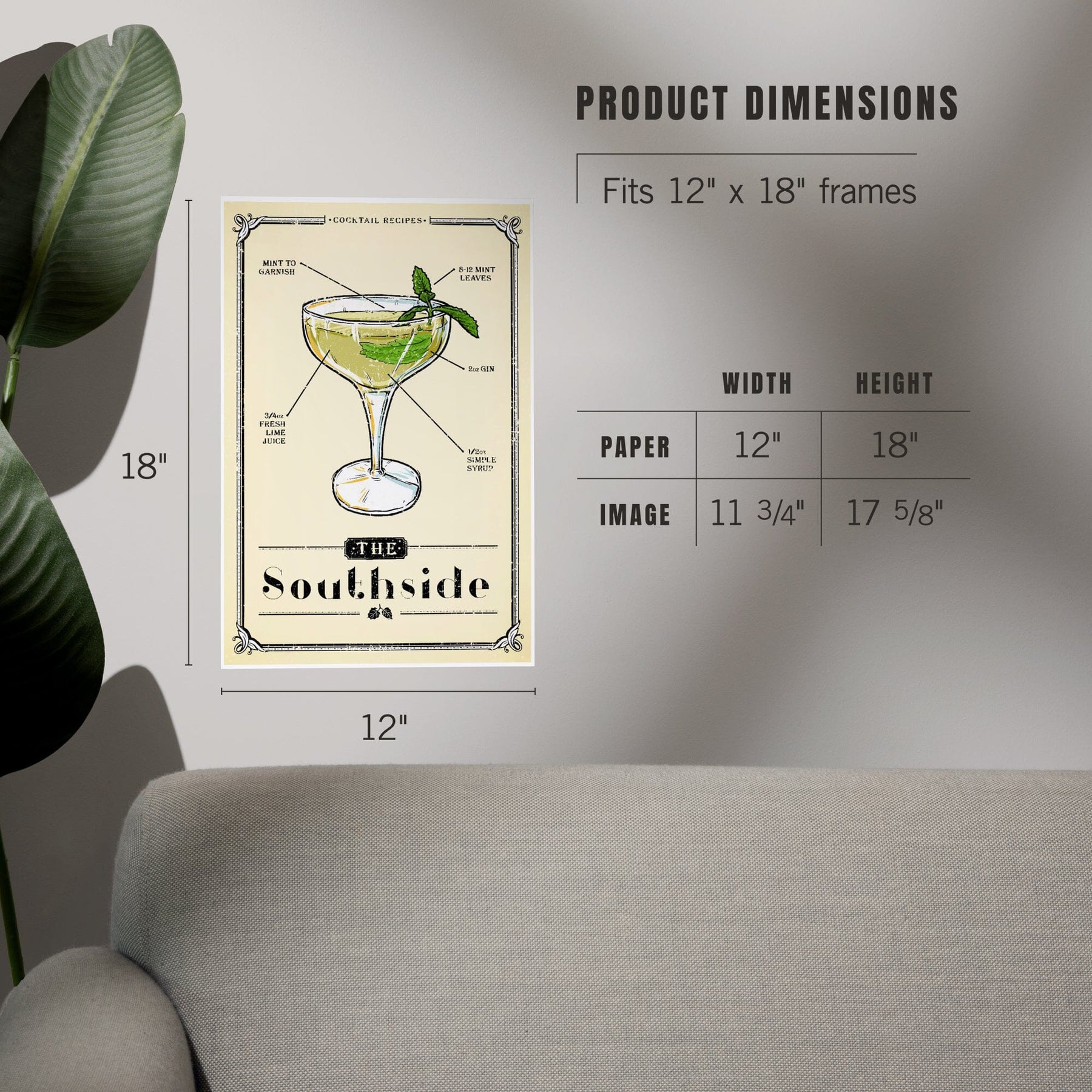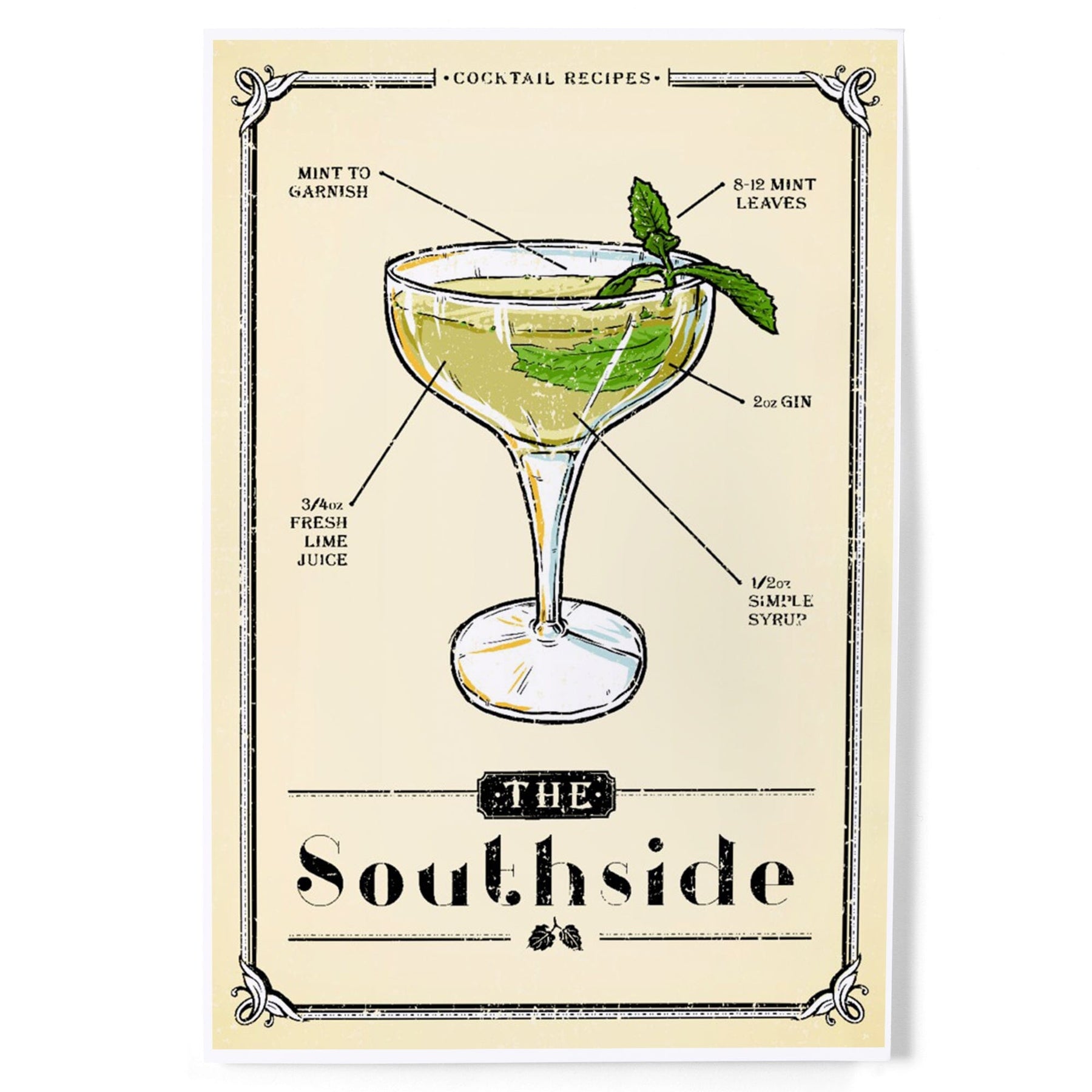 Prohibition, Cocktail Recipe, Southside, Art & Giclee Prints Art Lantern Press