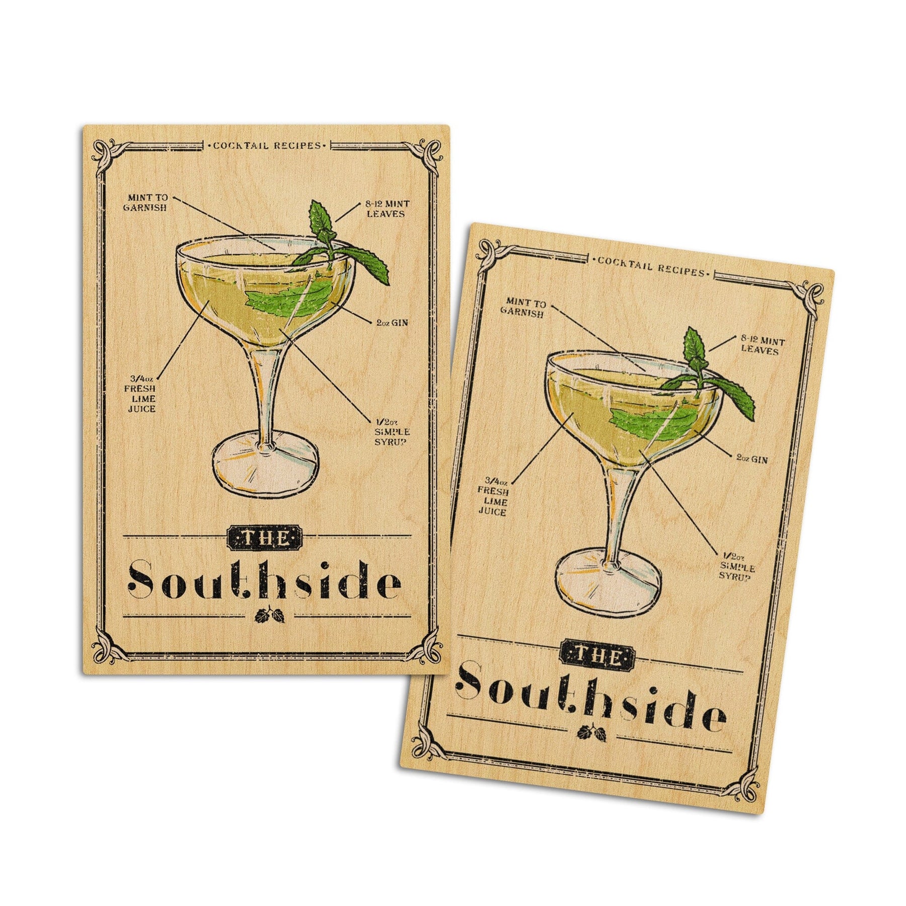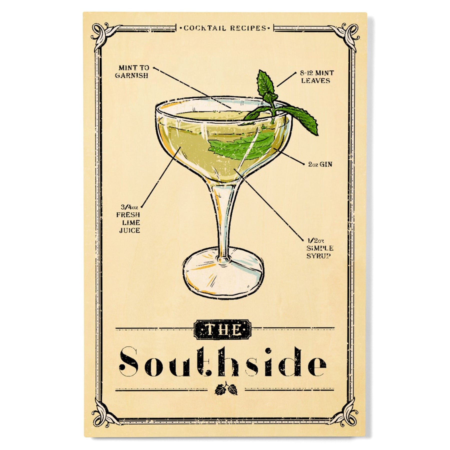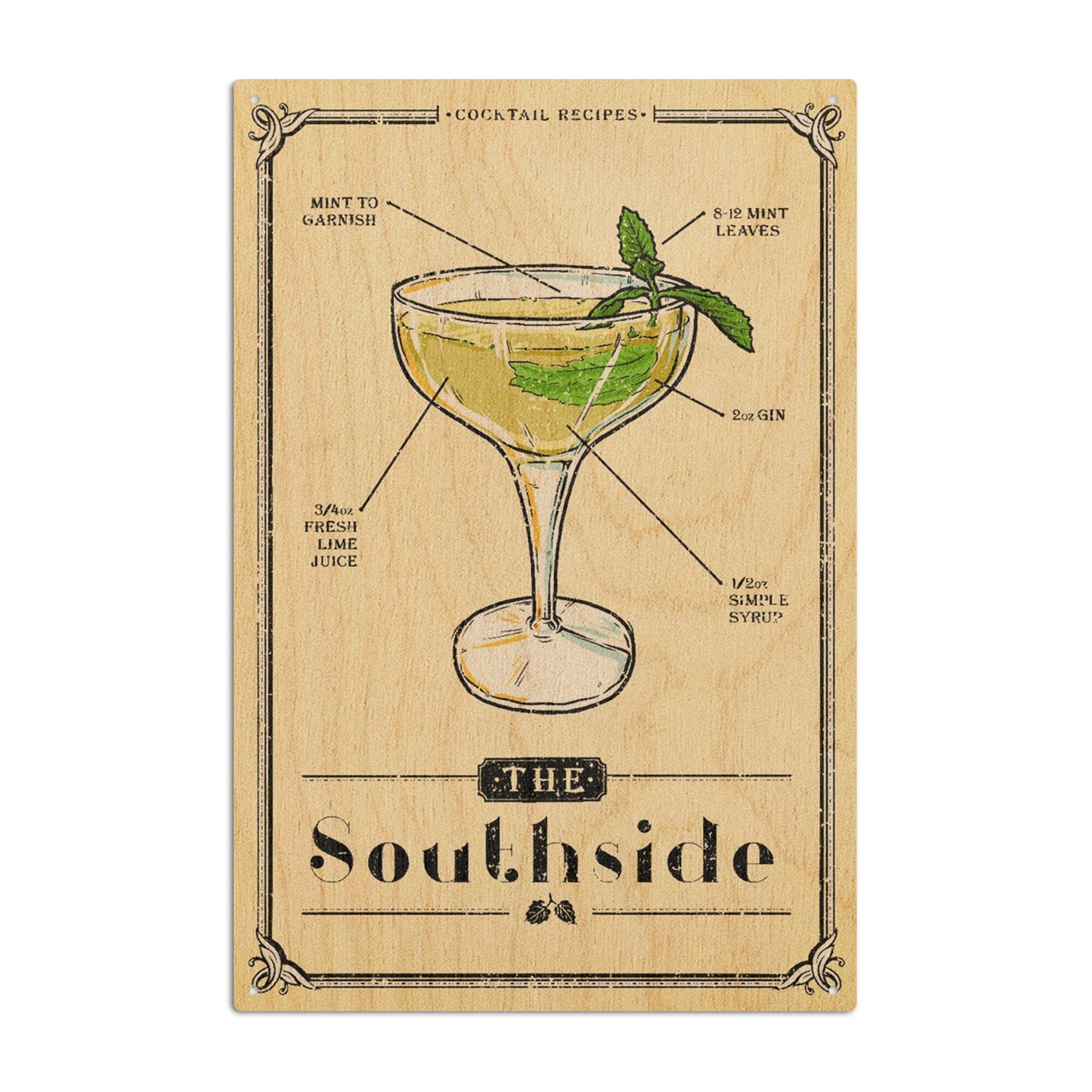 Prohibition, Cocktail Recipe, Southside, Lantern Press Artwork, Wood Signs and Postcards
