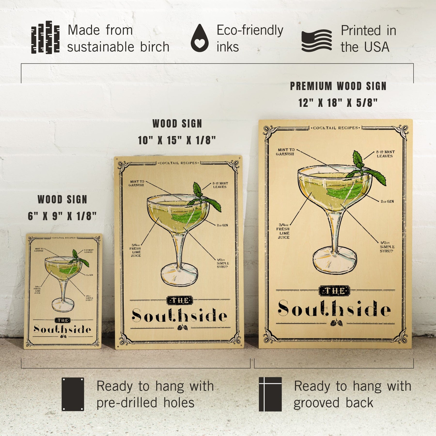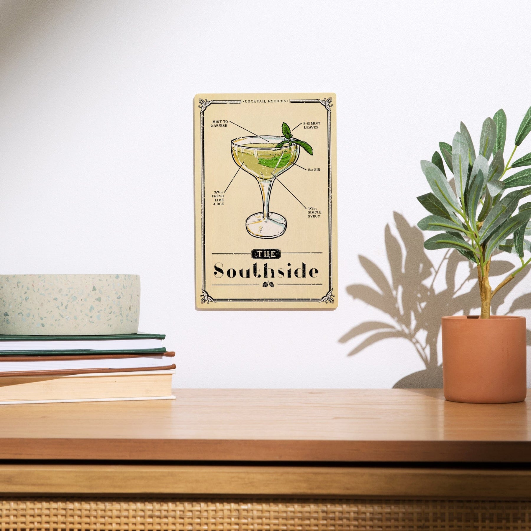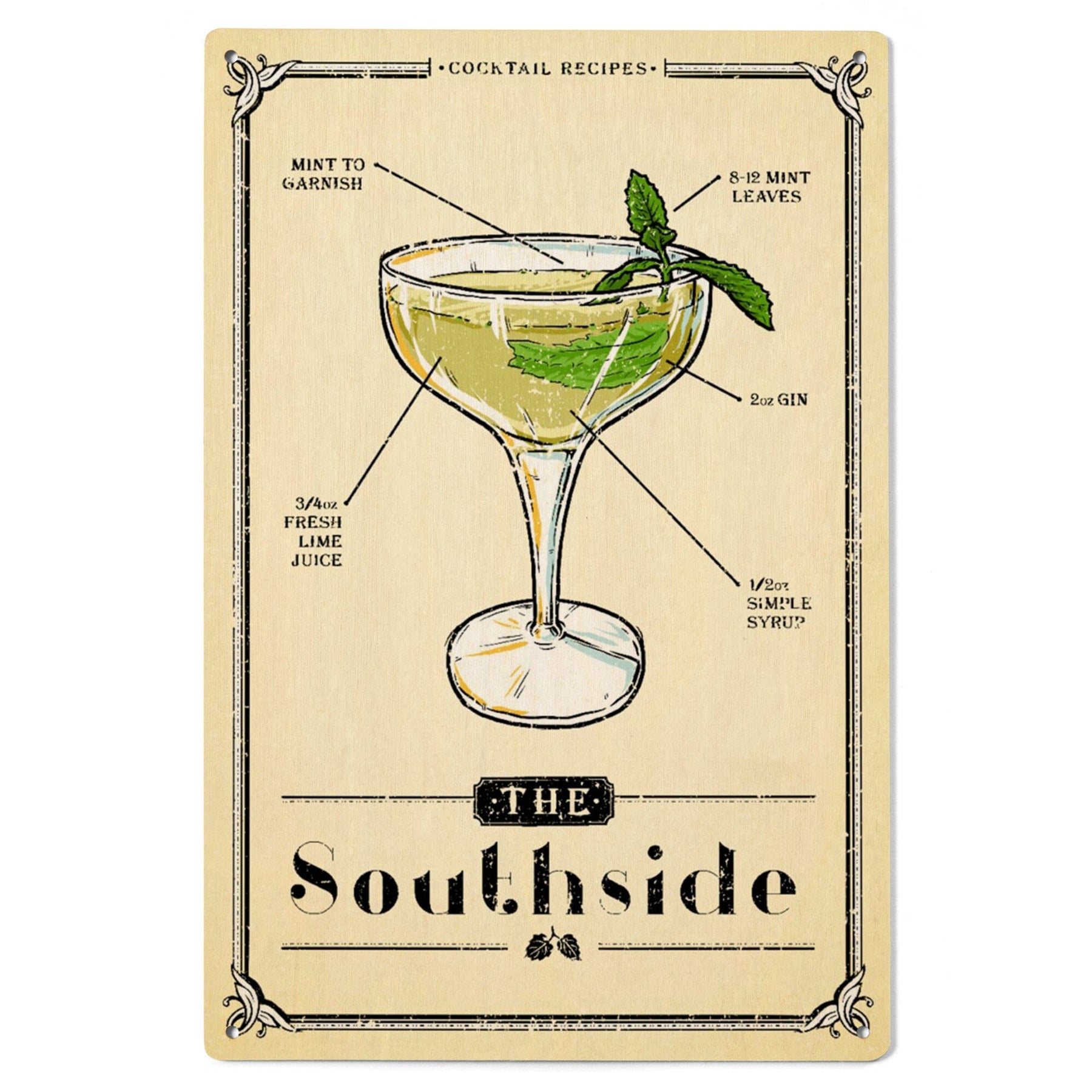 Prohibition, Cocktail Recipe, Southside, Lantern Press Artwork, Wood Signs and Postcards