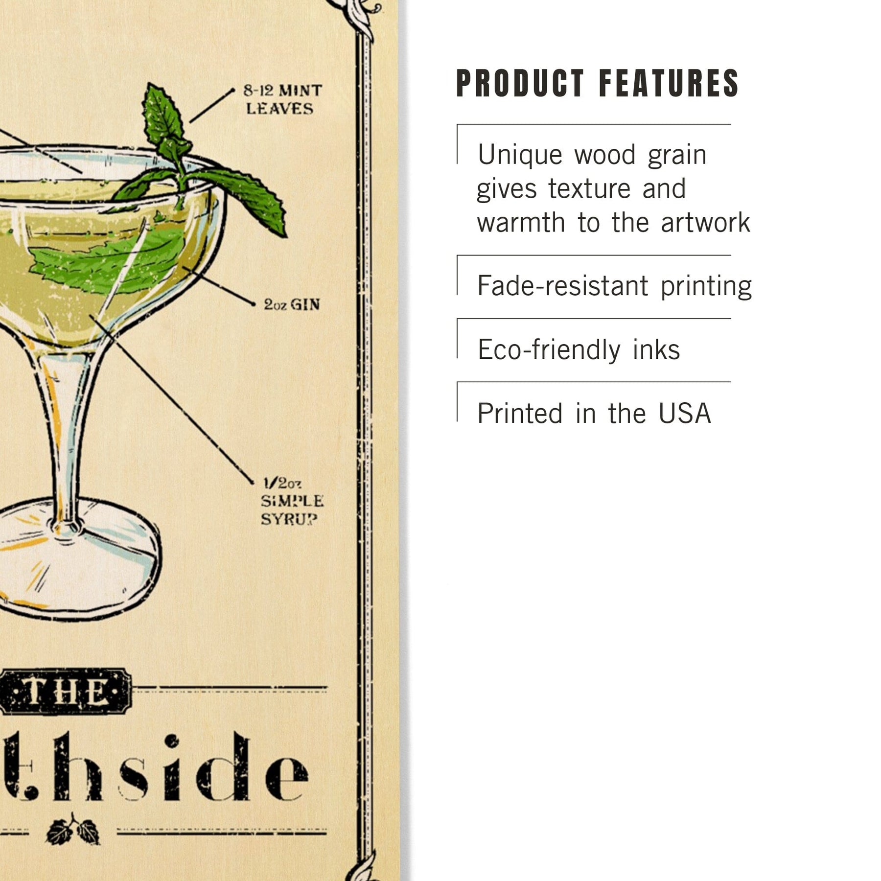 Prohibition, Cocktail Recipe, Southside, Lantern Press Artwork, Wood Signs and Postcards Wood Lantern Press