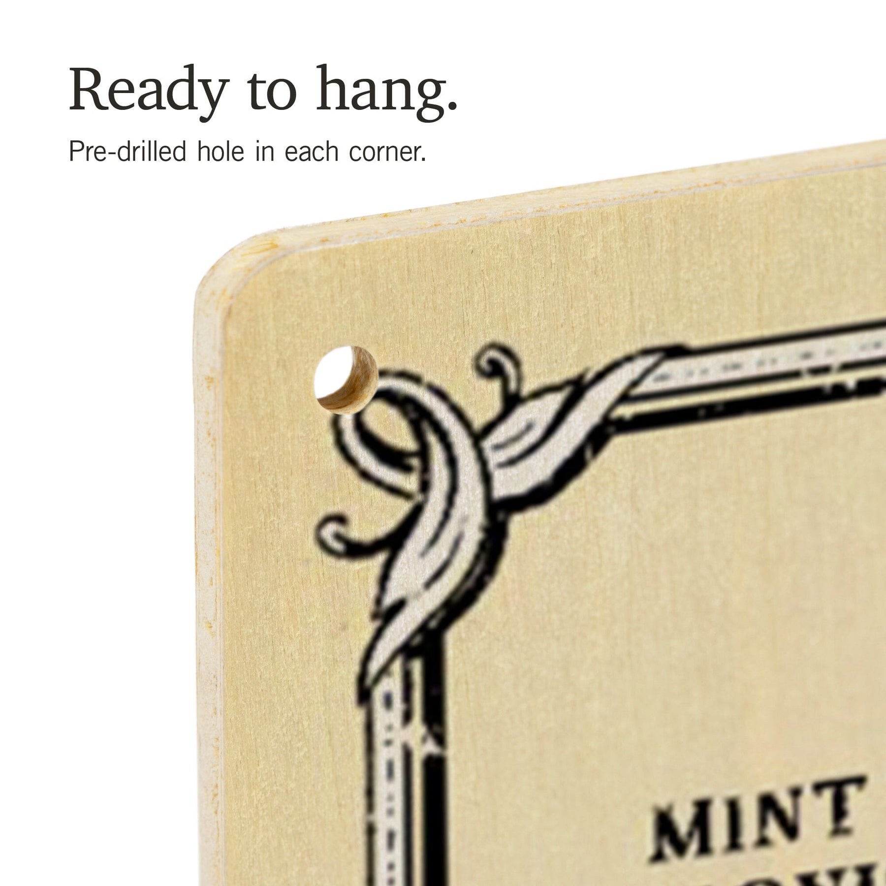 • Hole in each corner, ready to hang