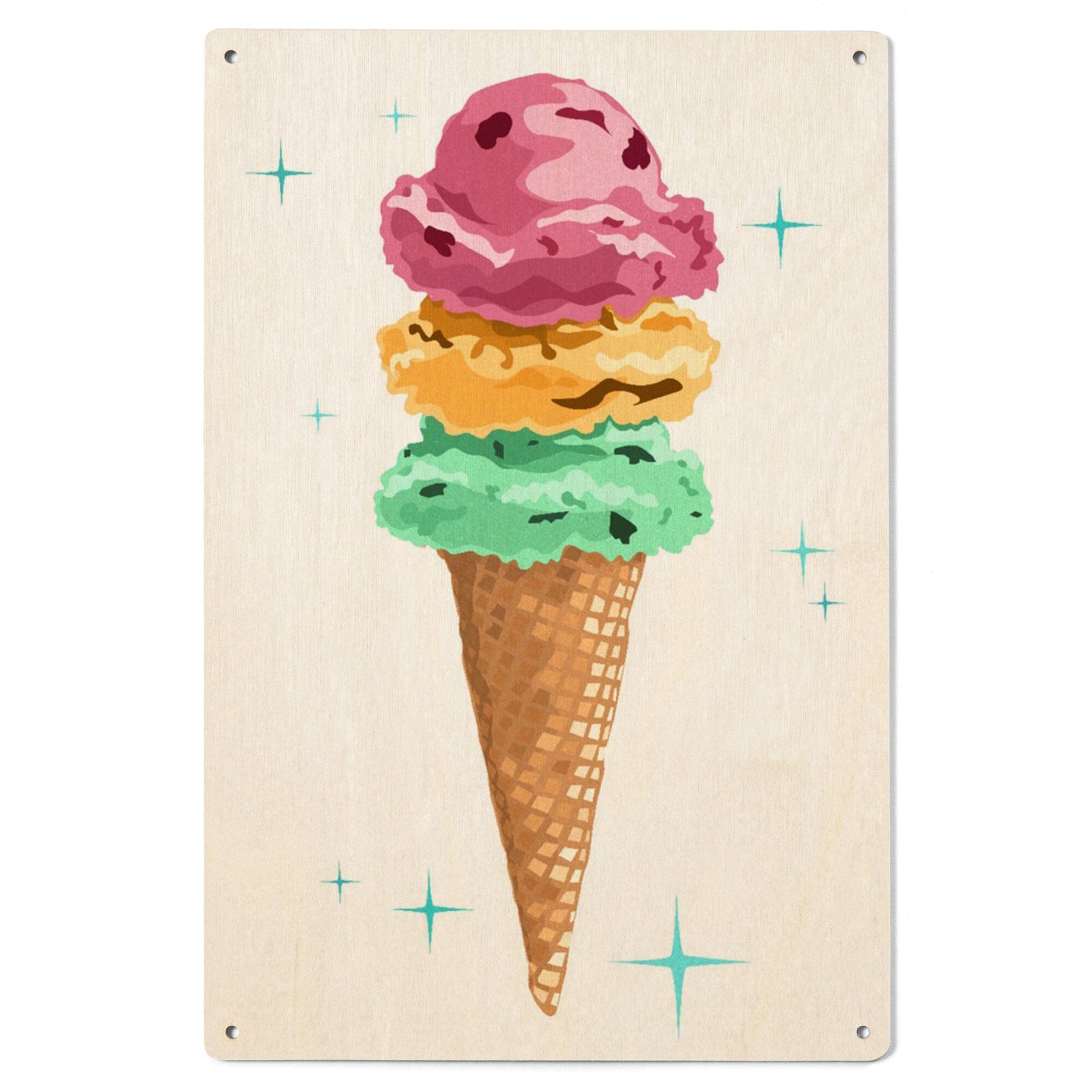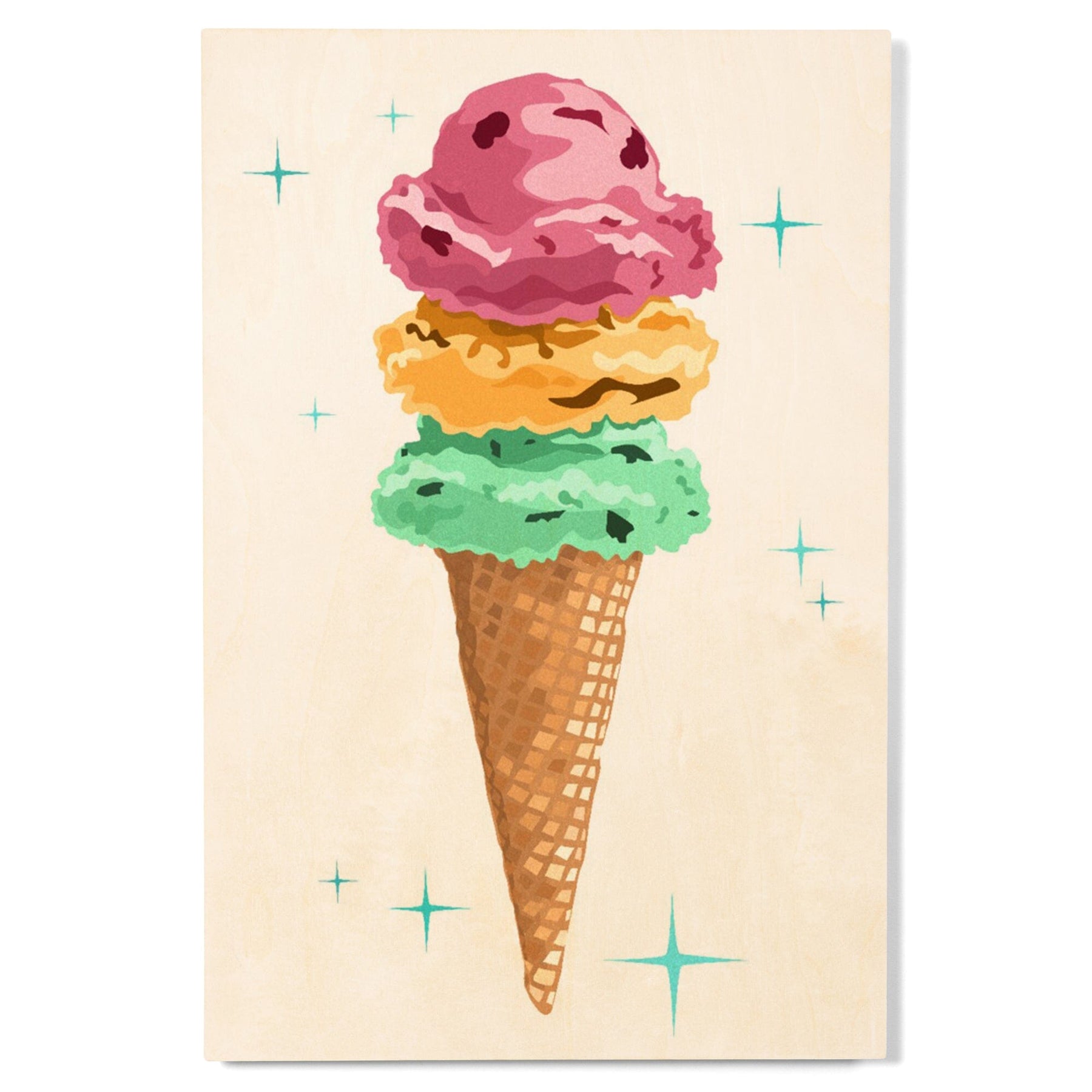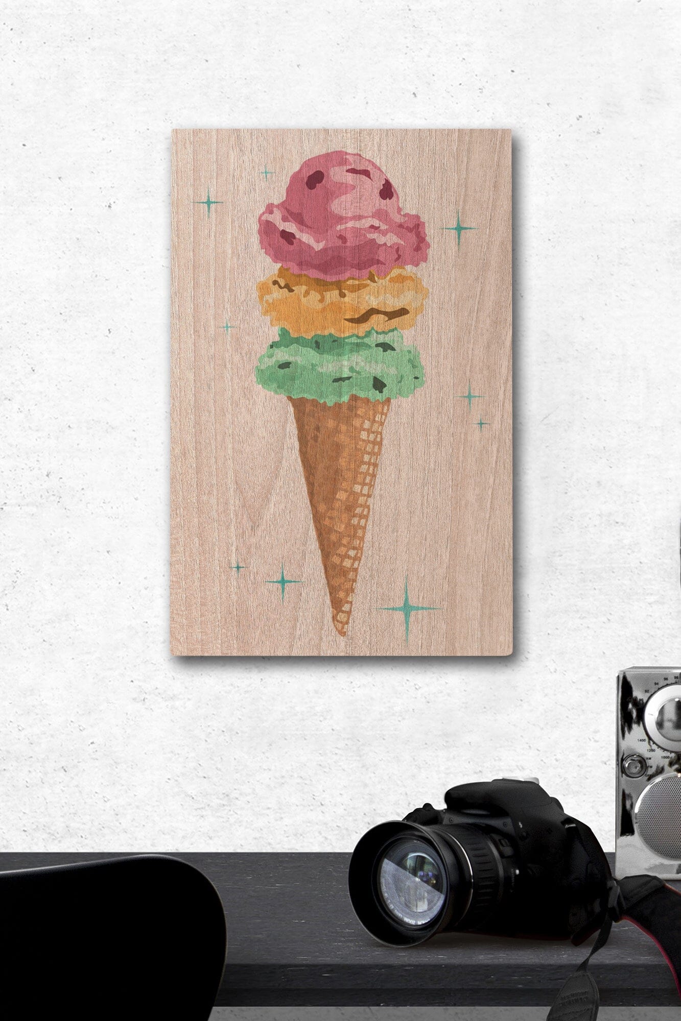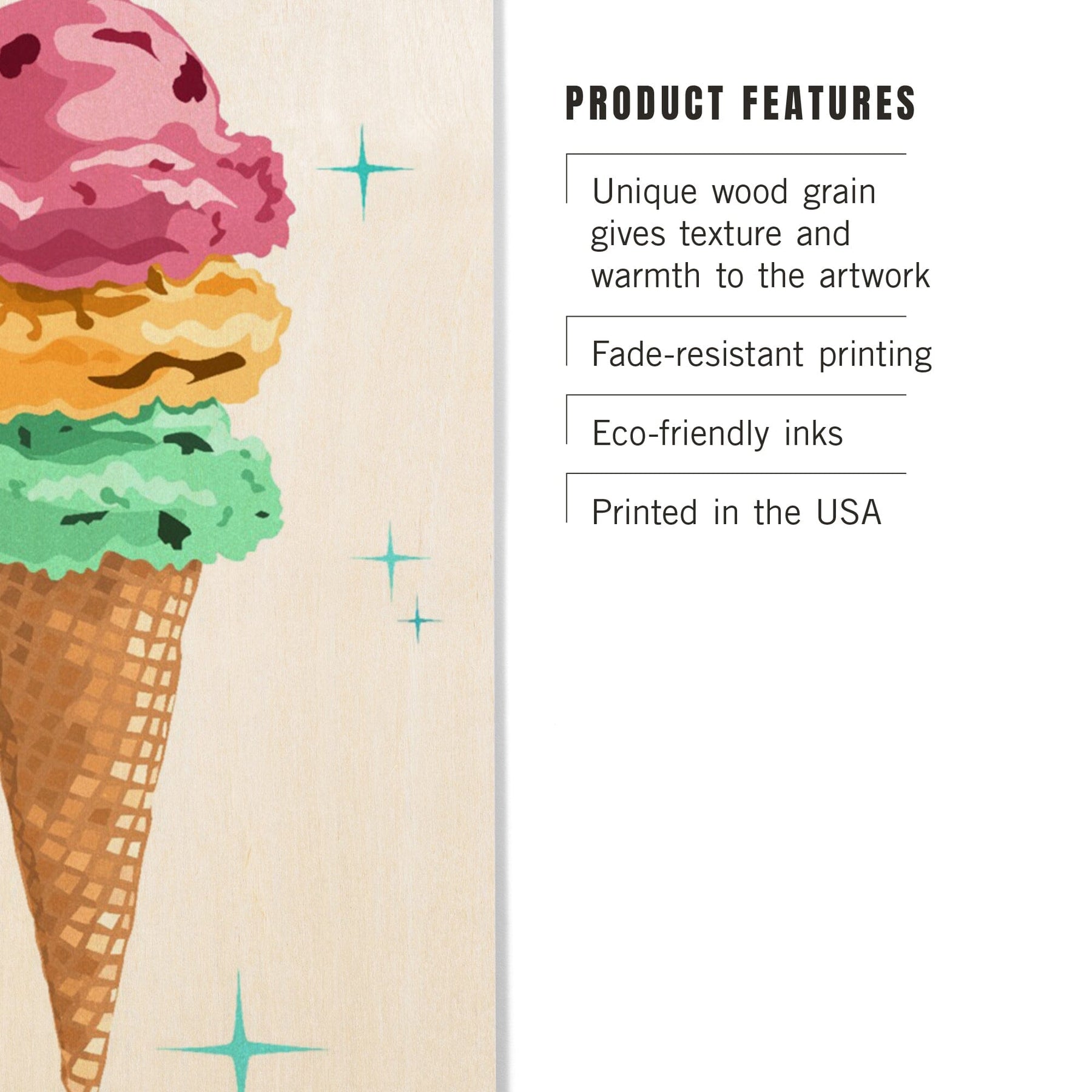 Retro Ice Cream Cone, Lantern Press Artwork, Wood Signs and Postcards