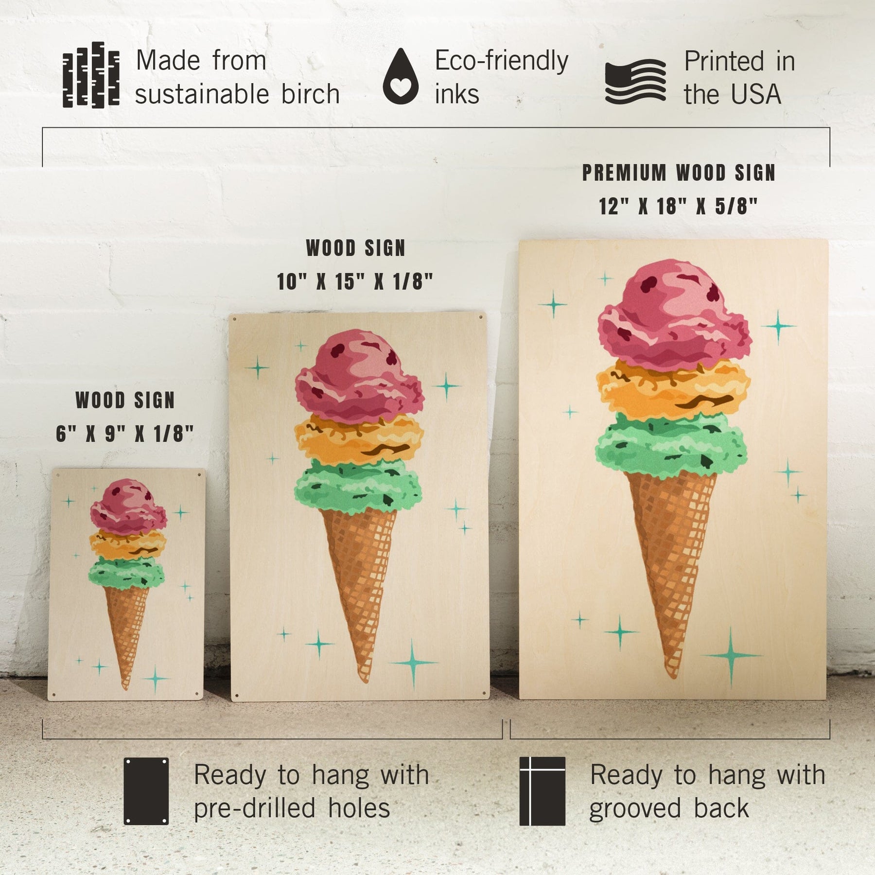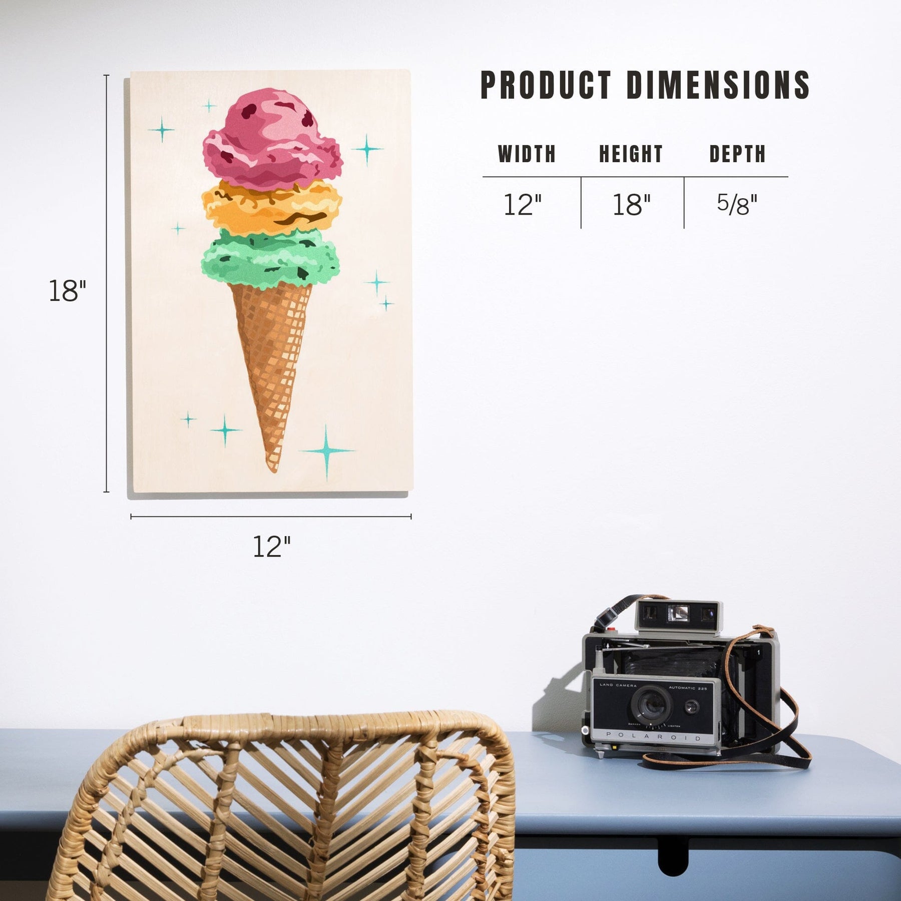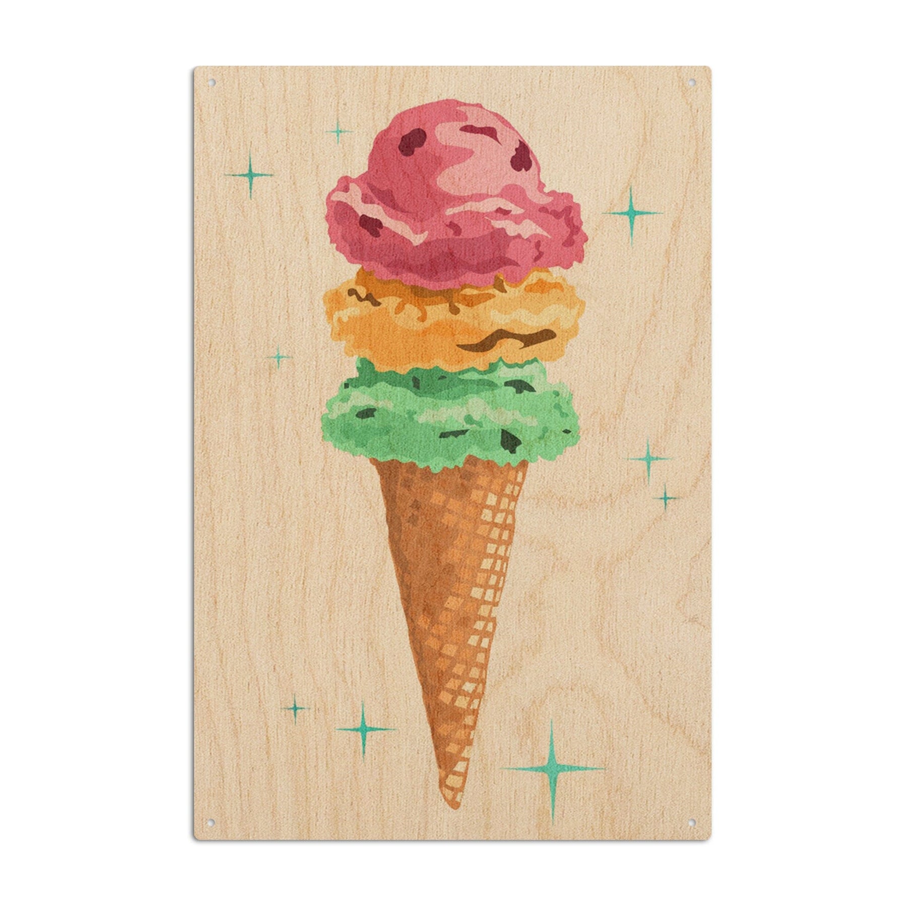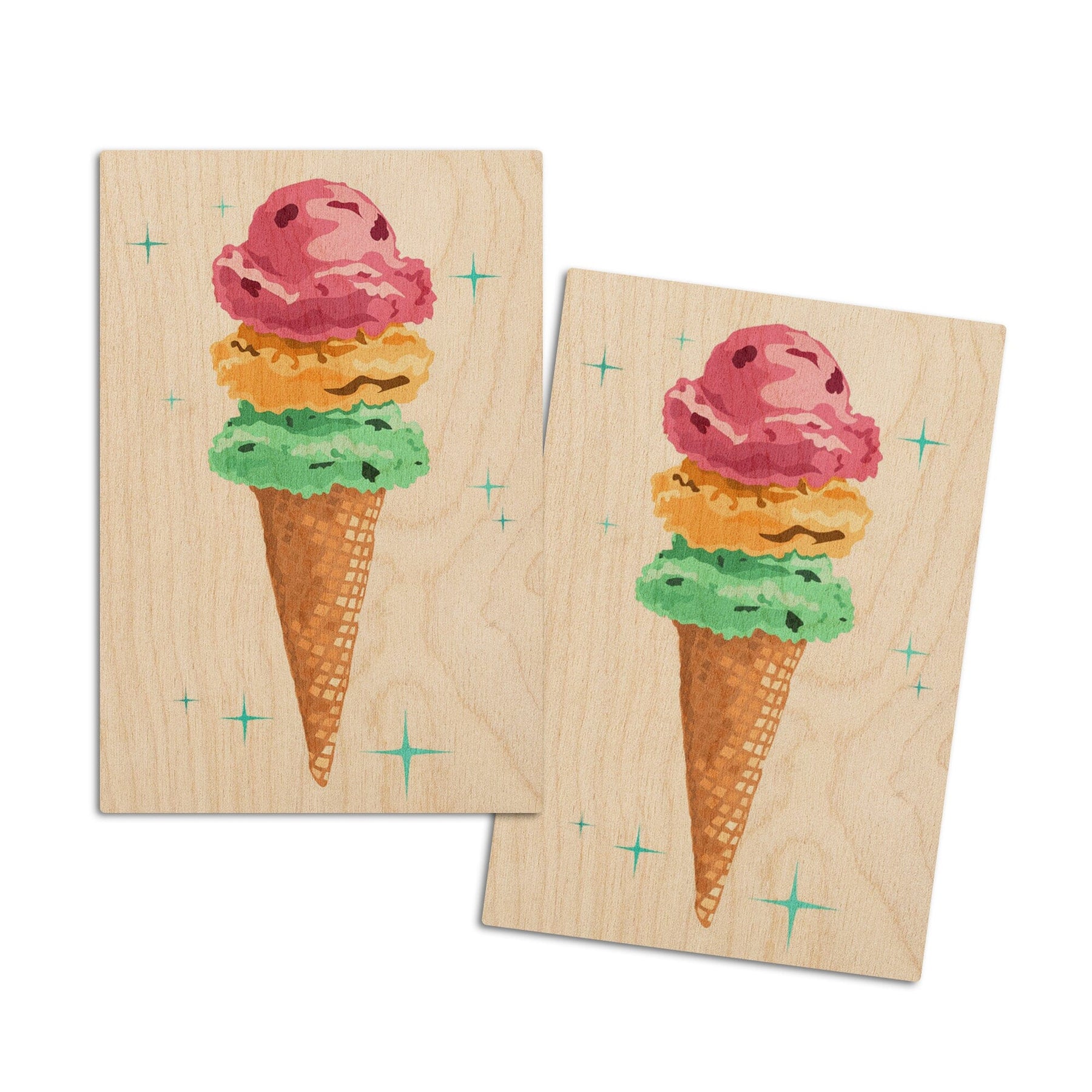 Retro Ice Cream Cone, Lantern Press Artwork, Wood Signs and Postcards