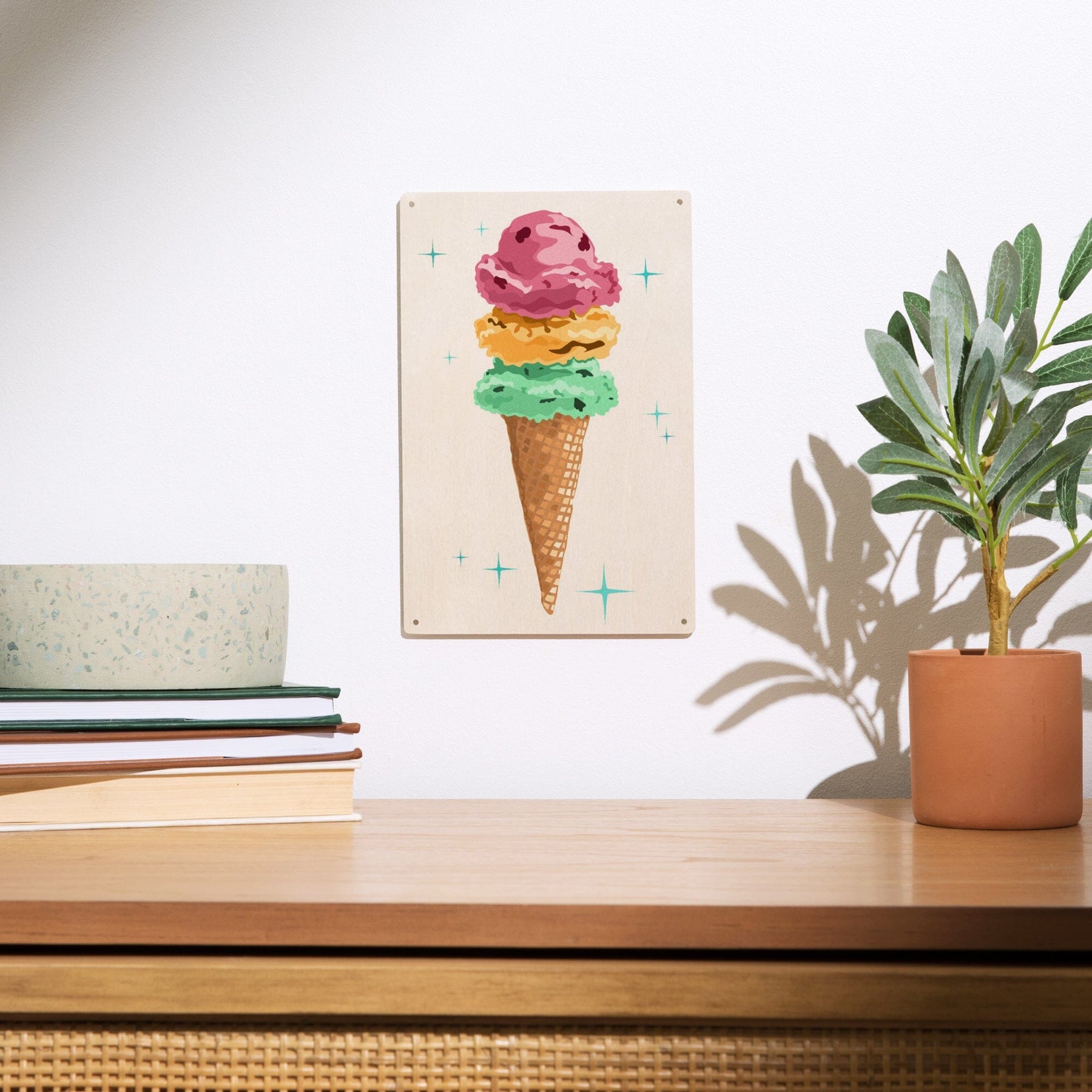 Retro Ice Cream Cone, Lantern Press Artwork, Wood Signs and Postcards Wood Lantern Press