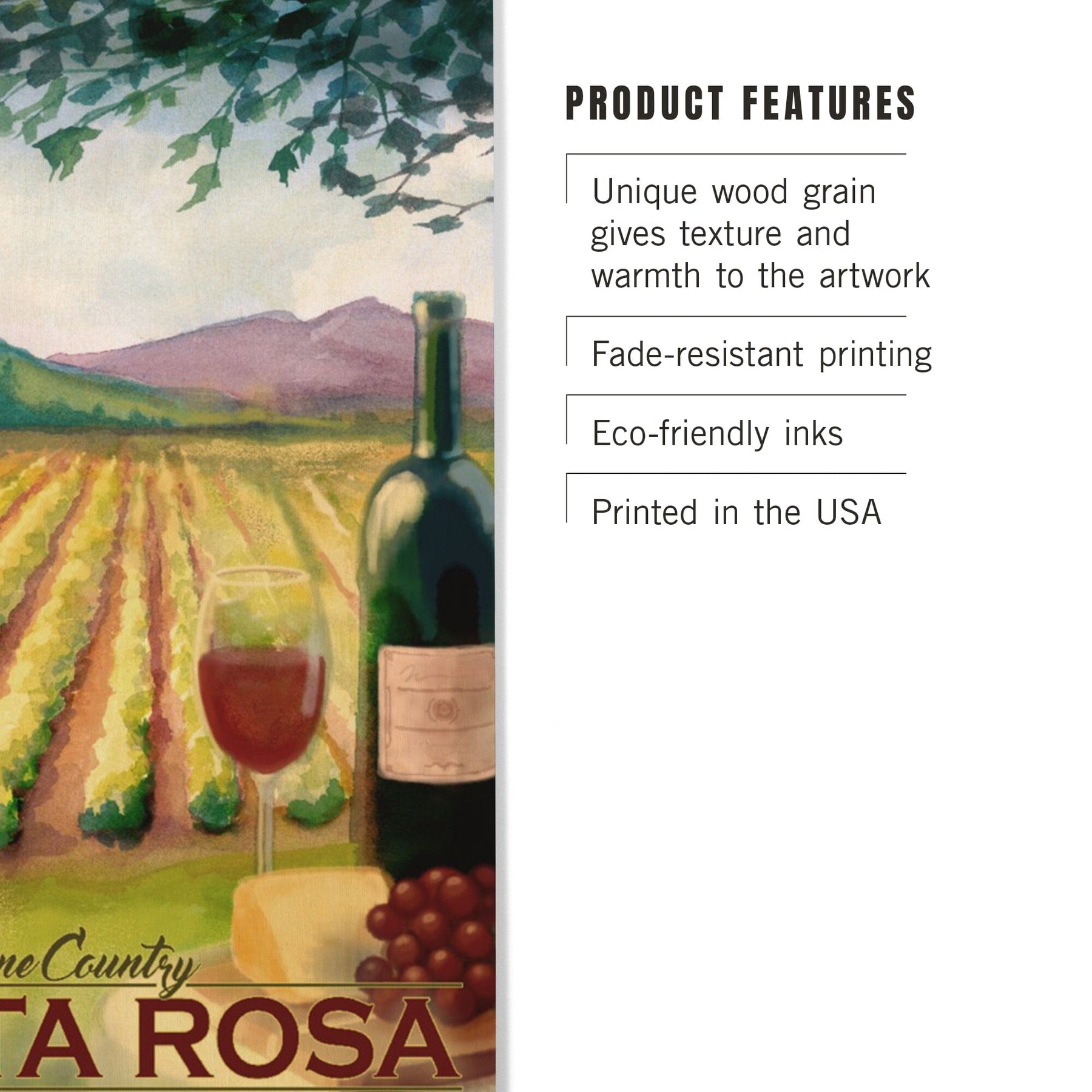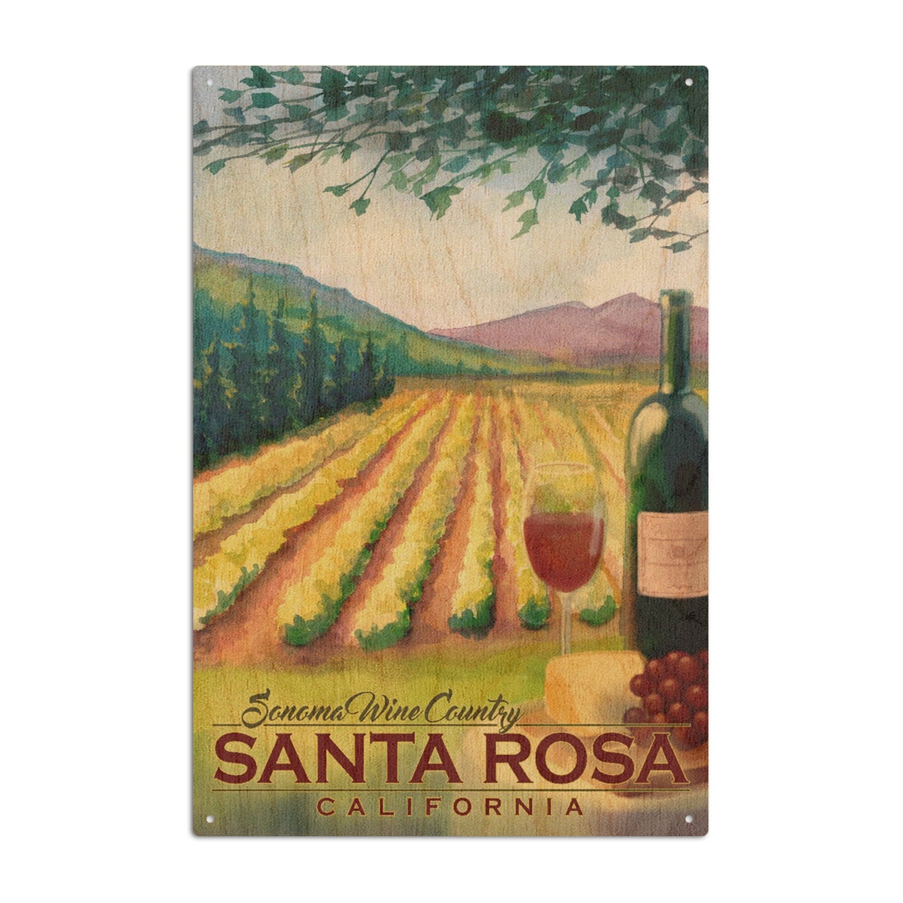 Santa Rosa, California, Sonoma County Wine Country, Lantern Press Artwork, Wood Signs and Postcards Wood Lantern Press