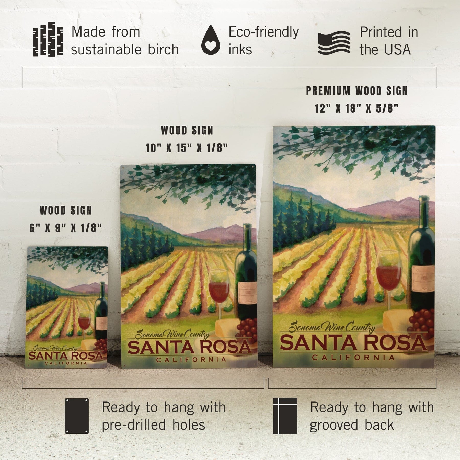Santa Rosa, California, Sonoma County Wine Country, Lantern Press Artwork, Wood Signs and Postcards
