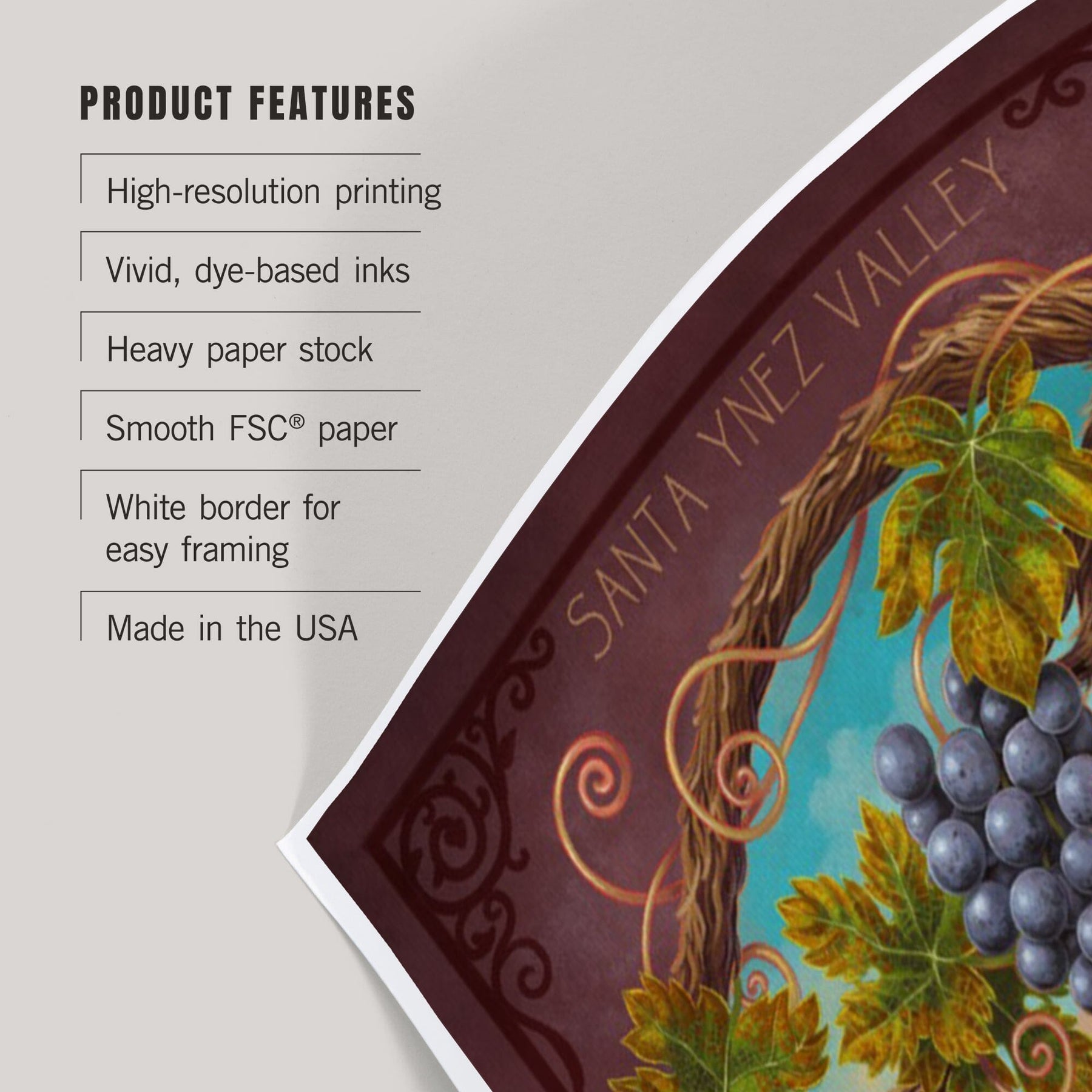 Santa Ynez Valley, California, Merlot Wine Scene, Art & Giclee Prints Art Lantern Press