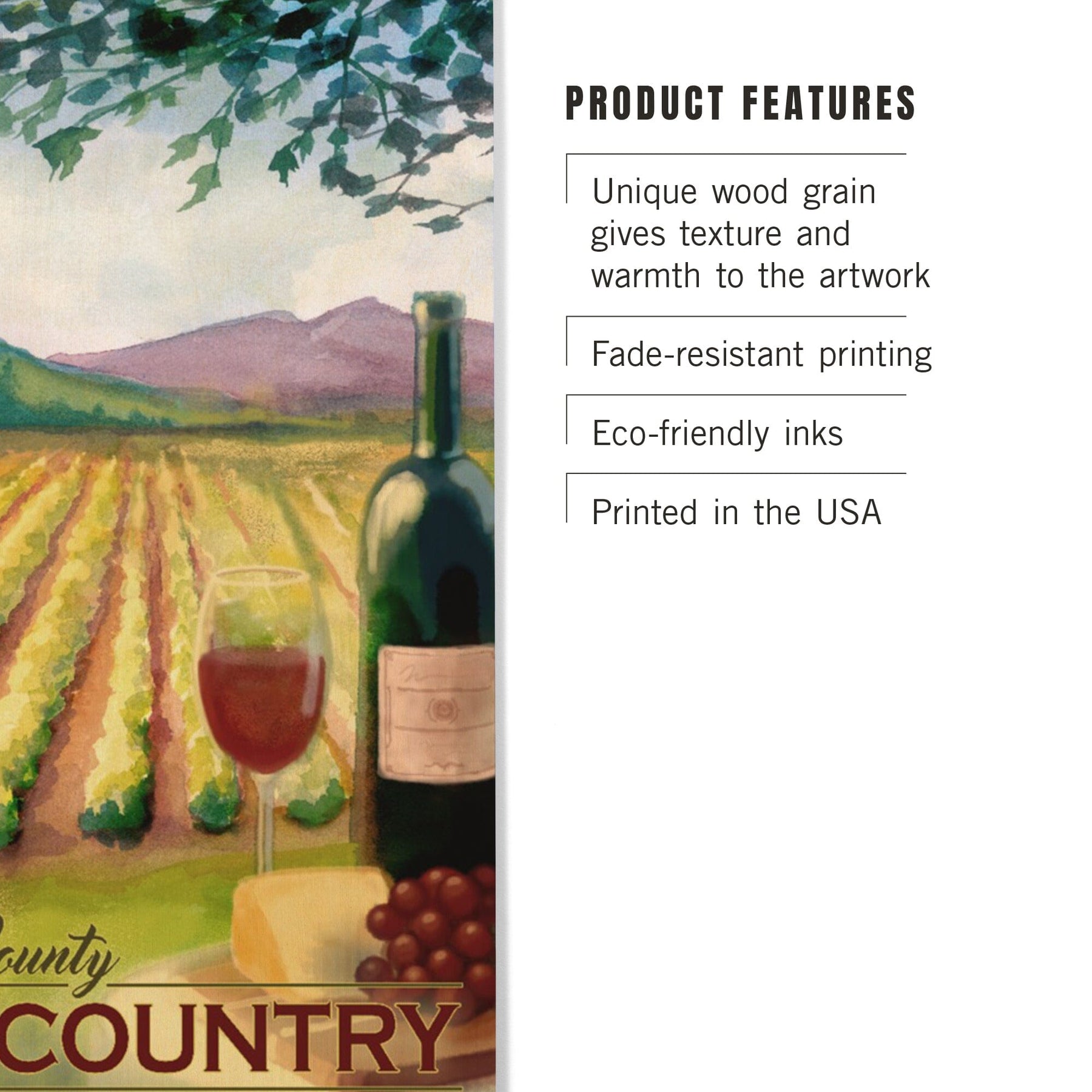 Sonoma County Wine Country, California, Lantern Press Artwork, Wood Signs and Postcards Wood Lantern Press