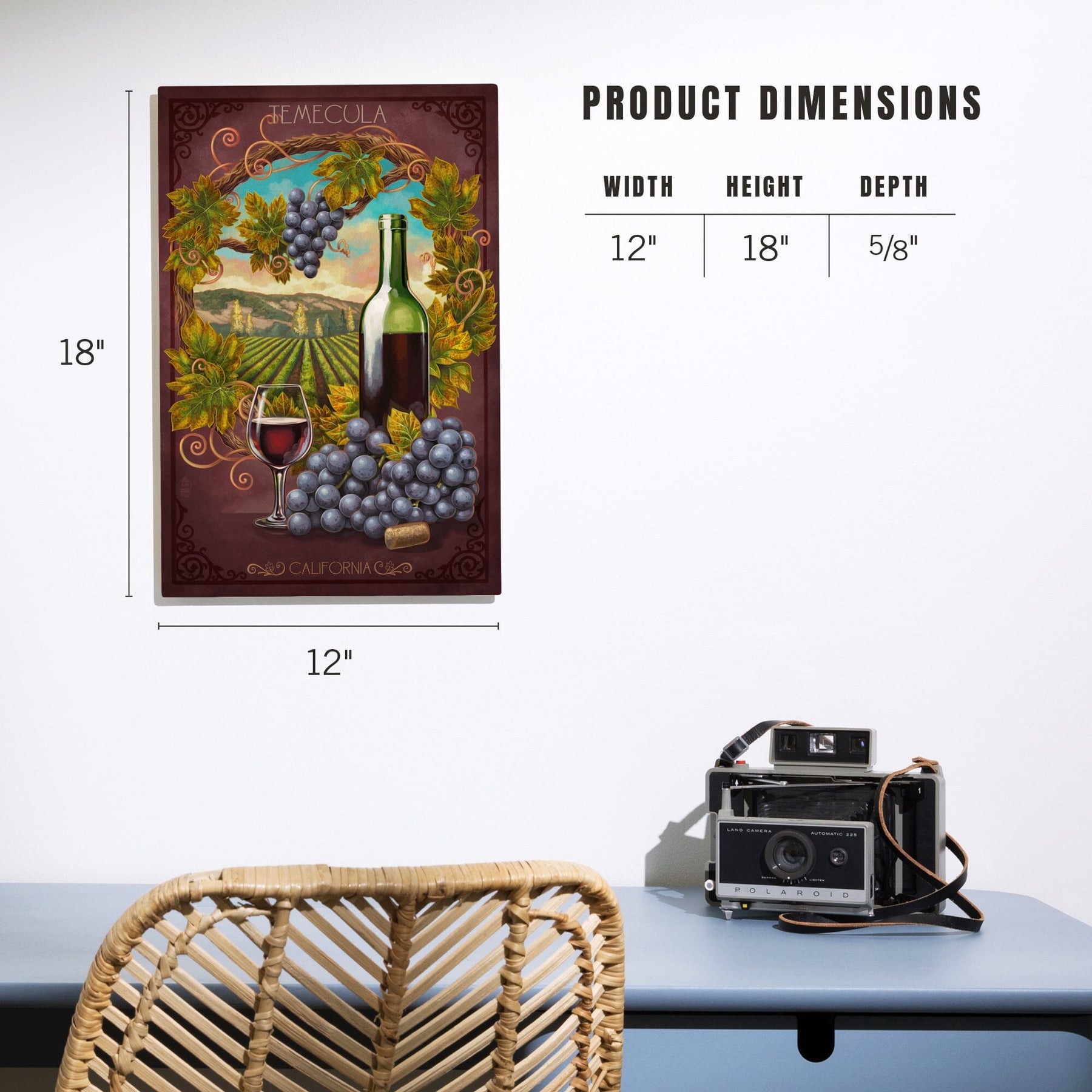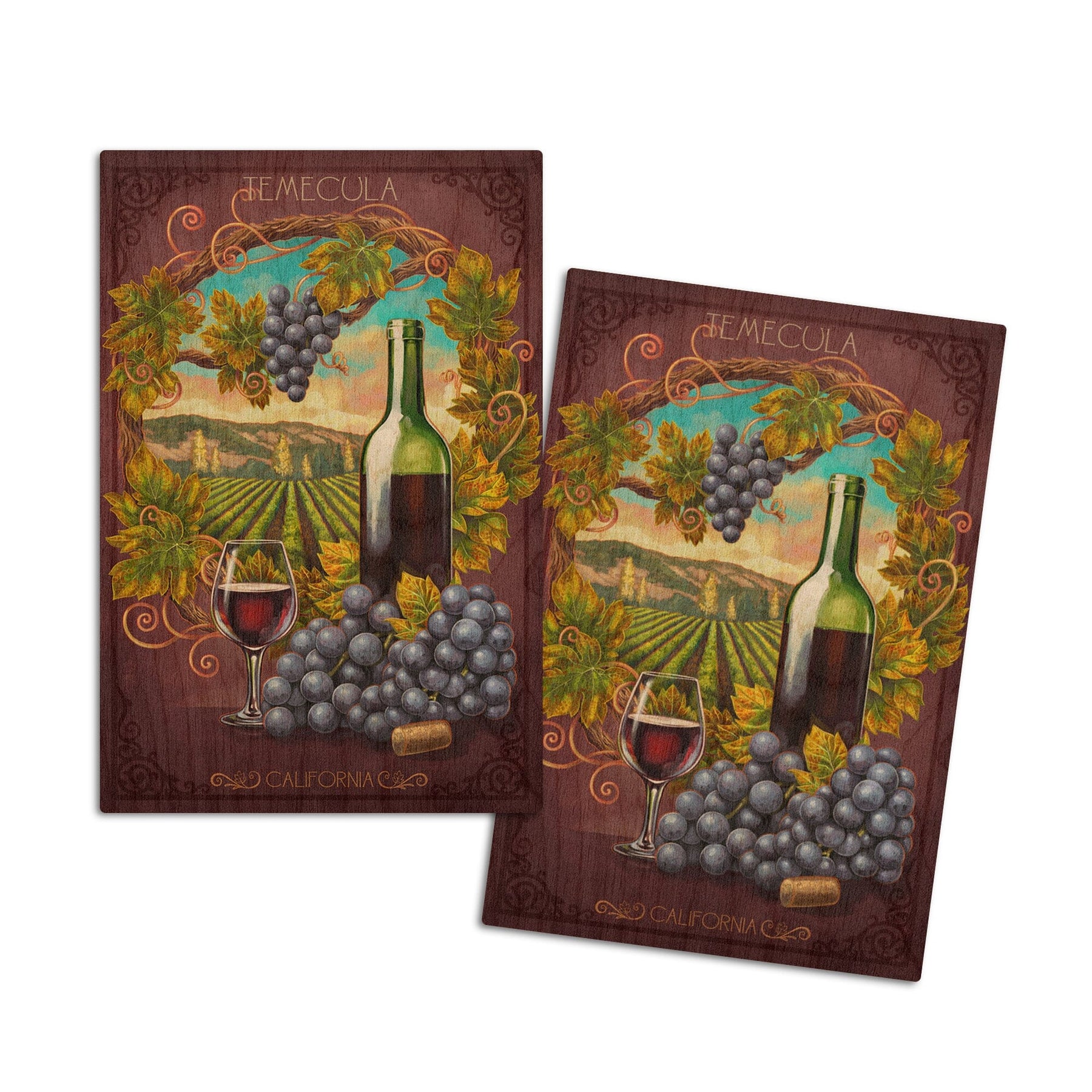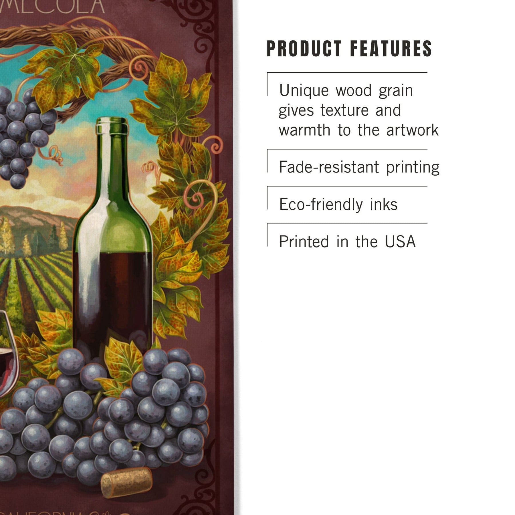 Temecula, California, Merlot Wine Scene, Lantern Press Artwork, Wood Signs and Postcards Wood Lantern Press