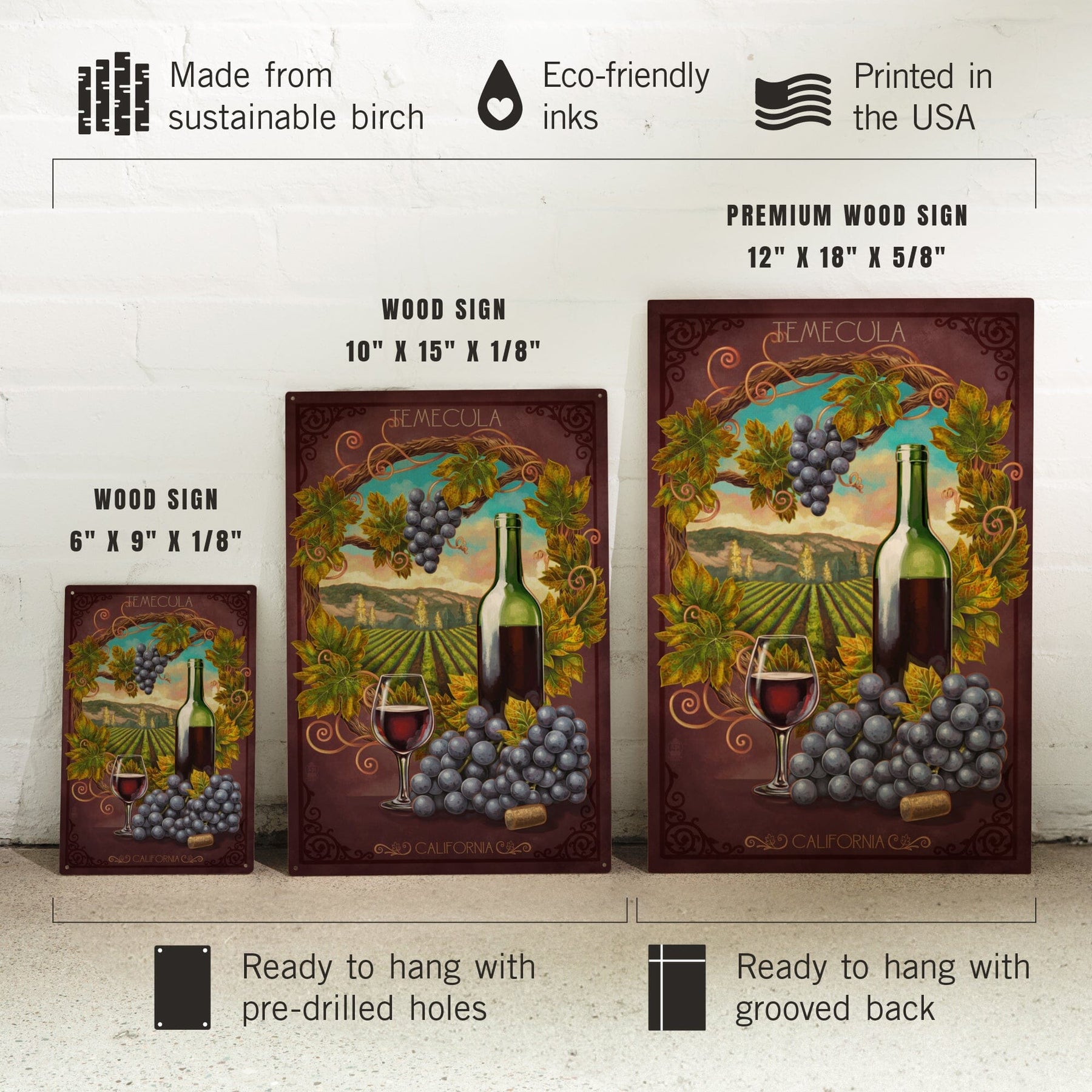 Temecula, California, Merlot Wine Scene, Lantern Press Artwork, Wood Signs and Postcards
