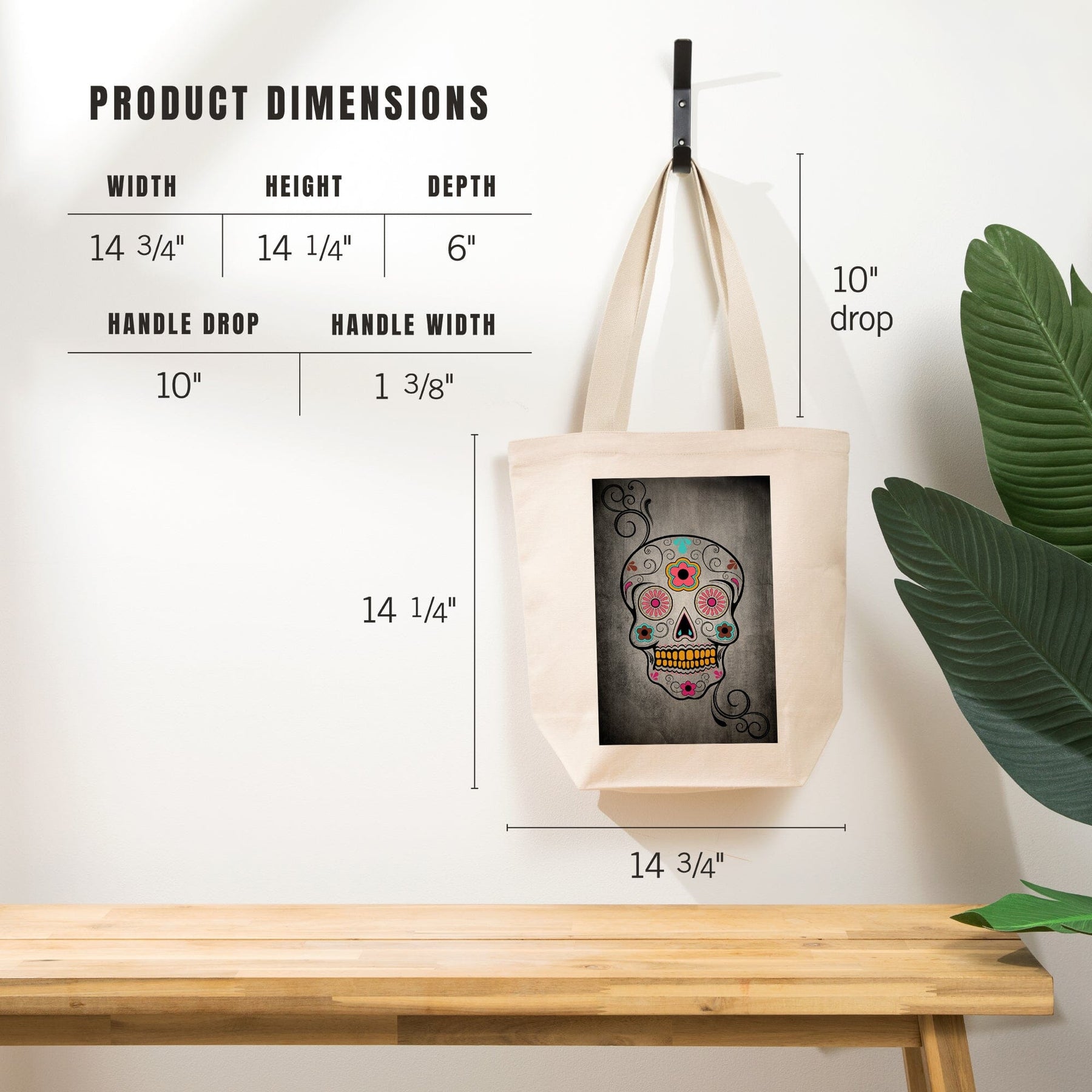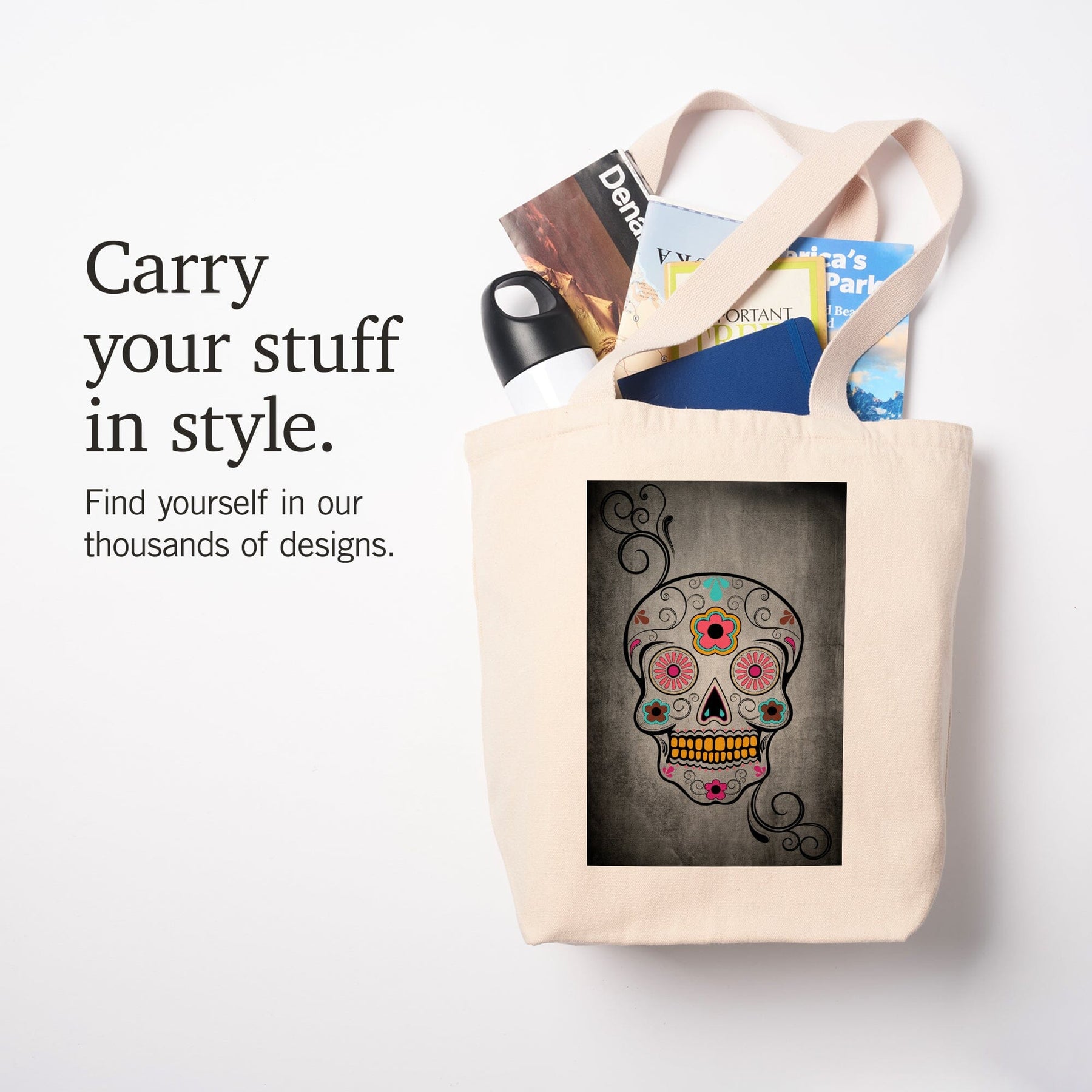 Sugar Skull, Black, Tote Bag