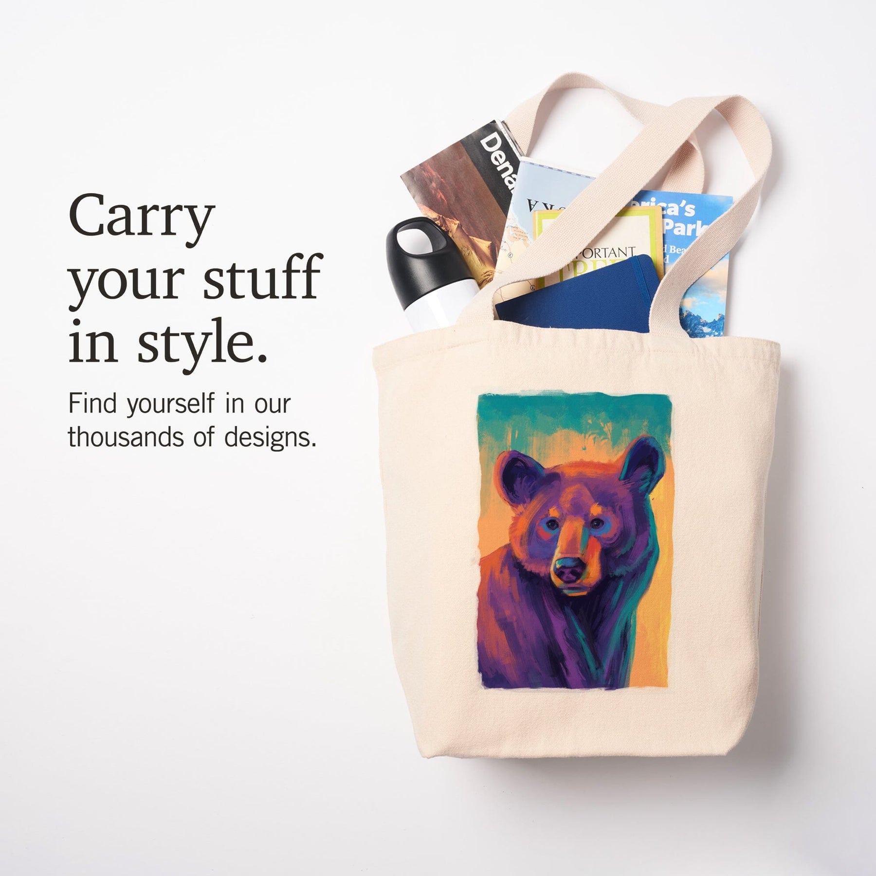 Black Bear, Vivid, Tote Bag Totes Lantern Press