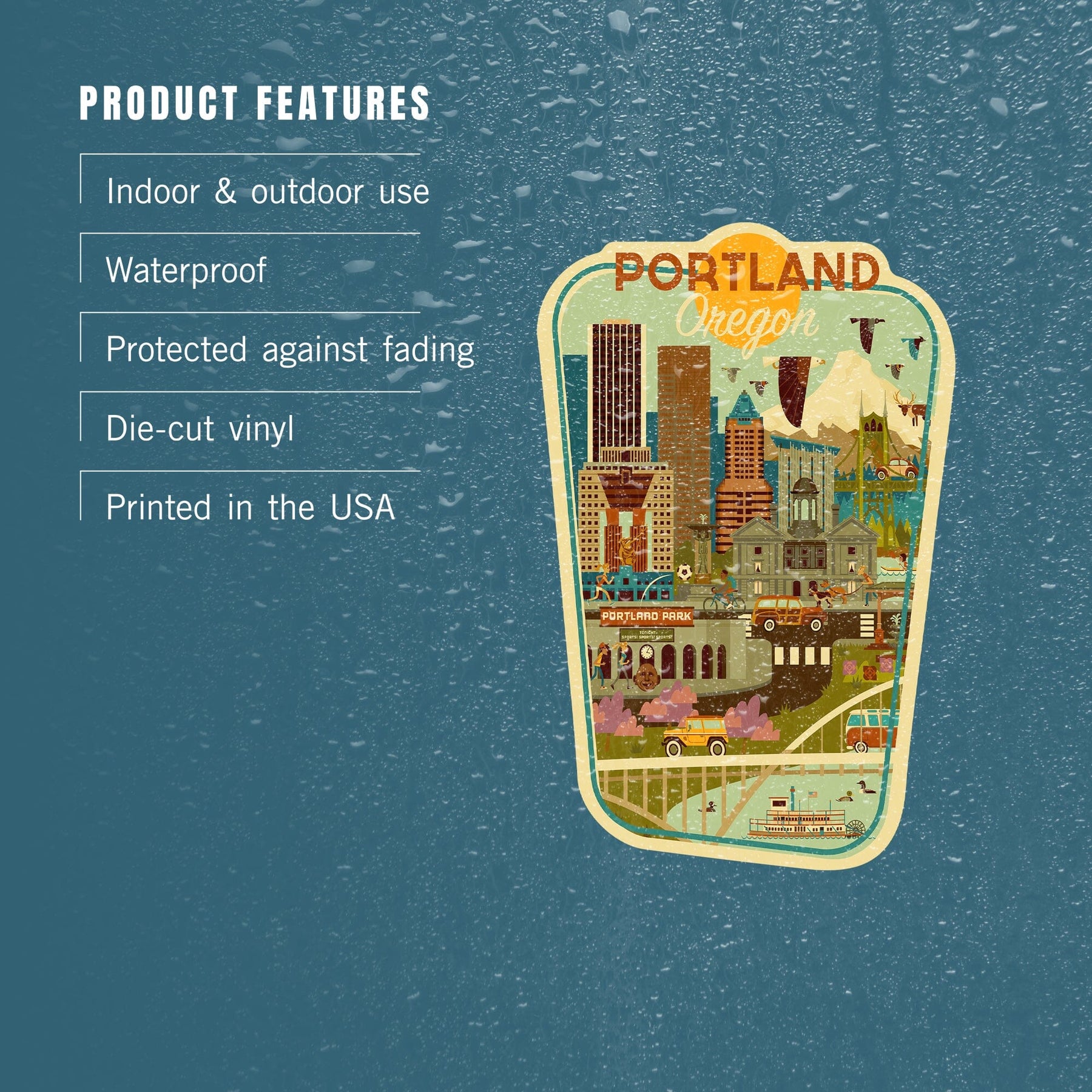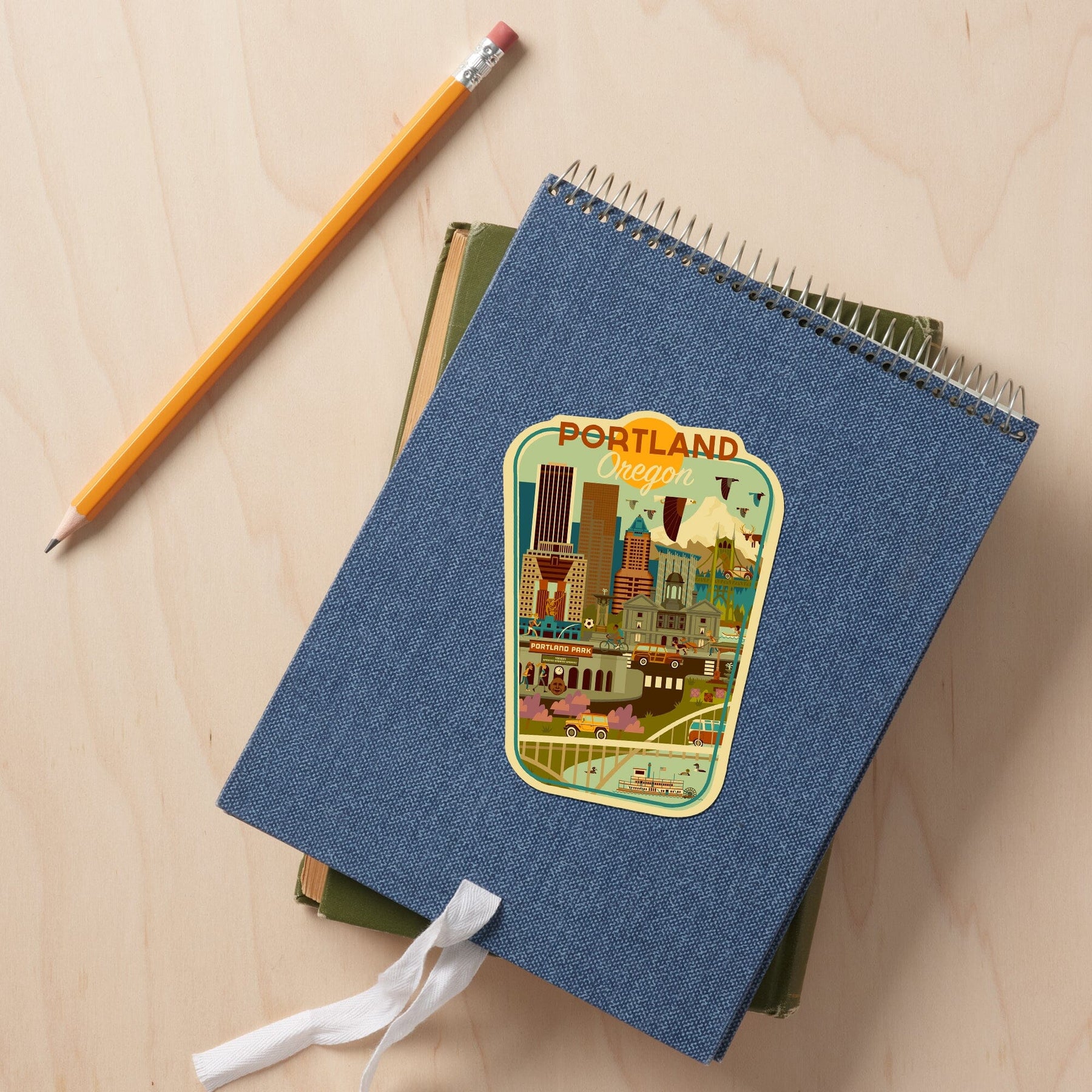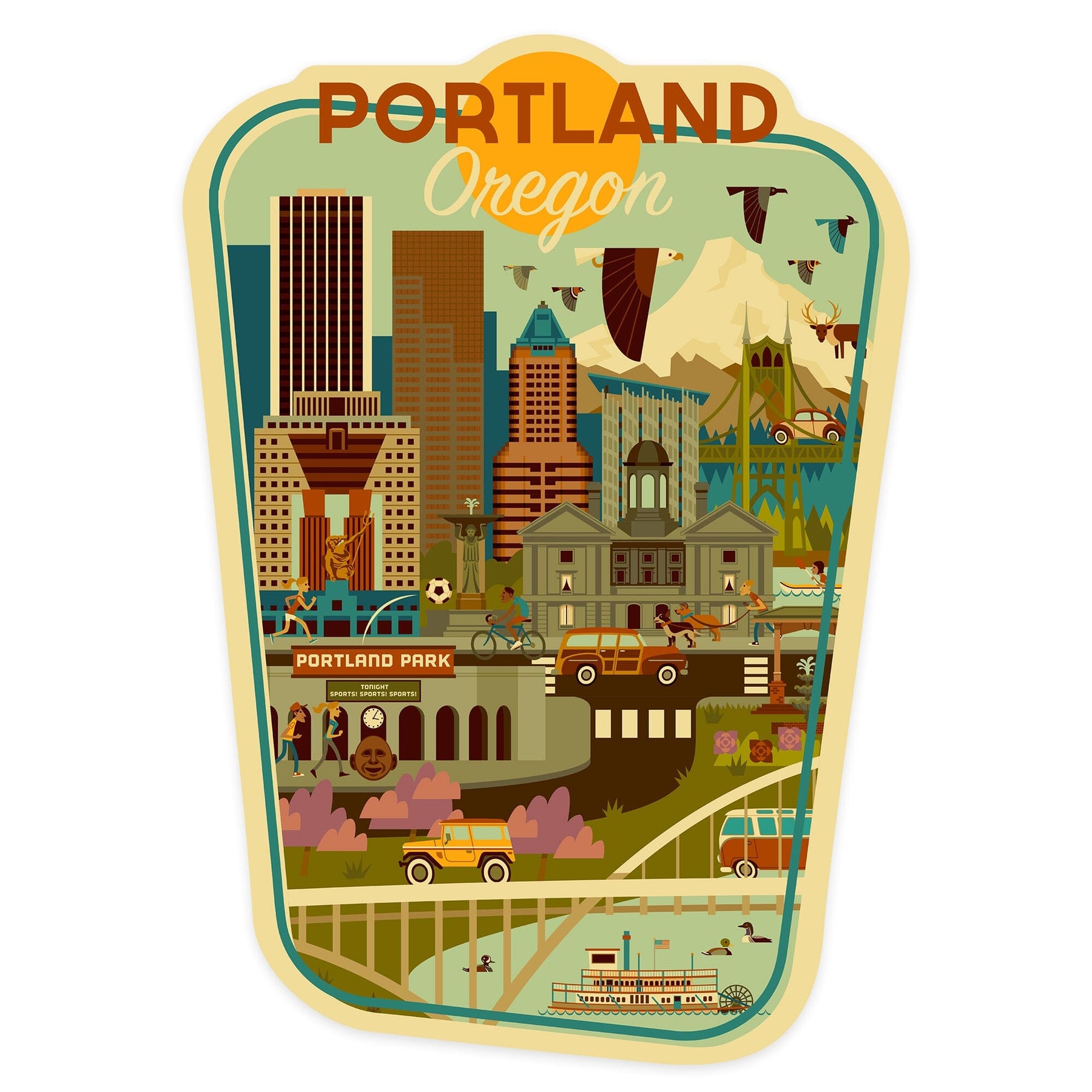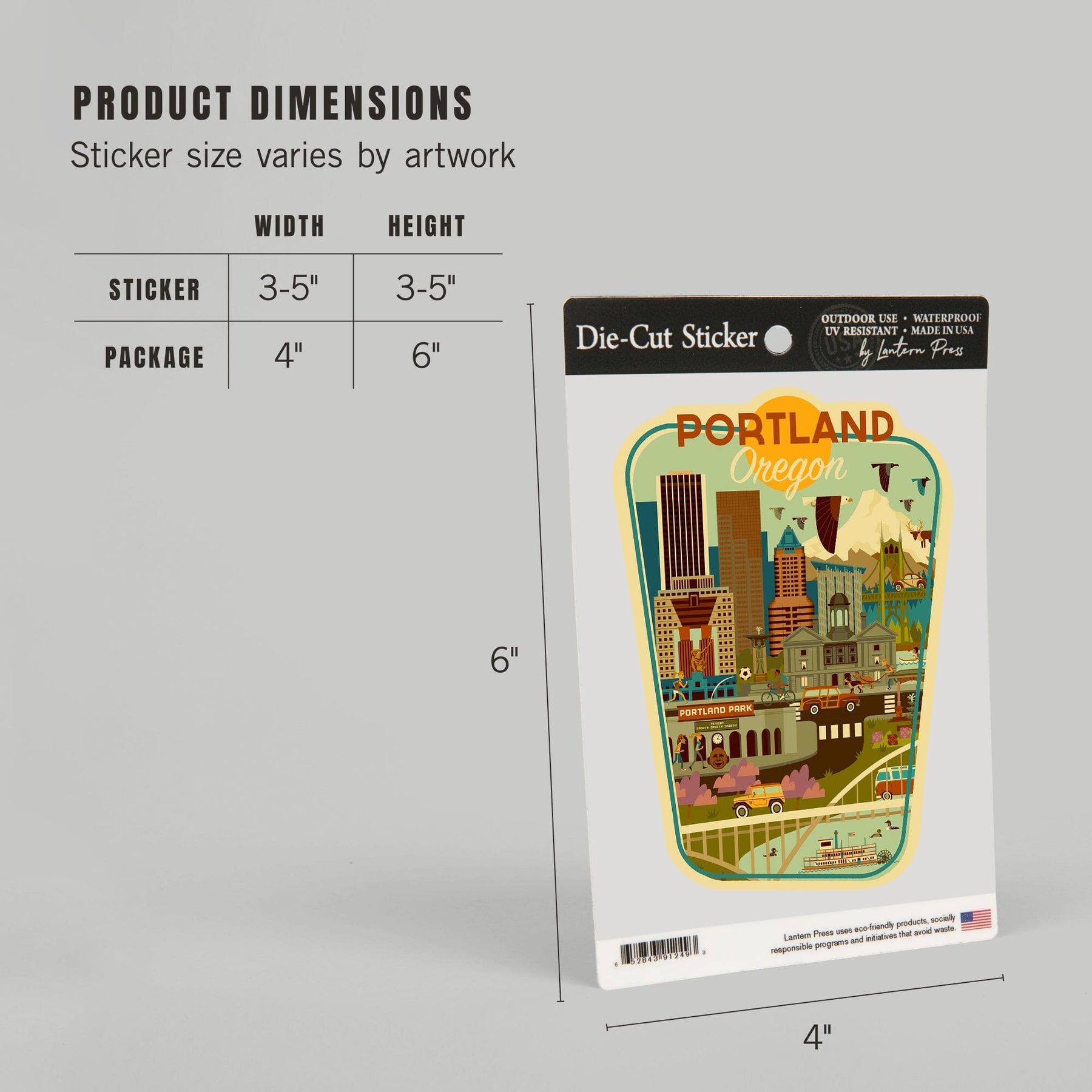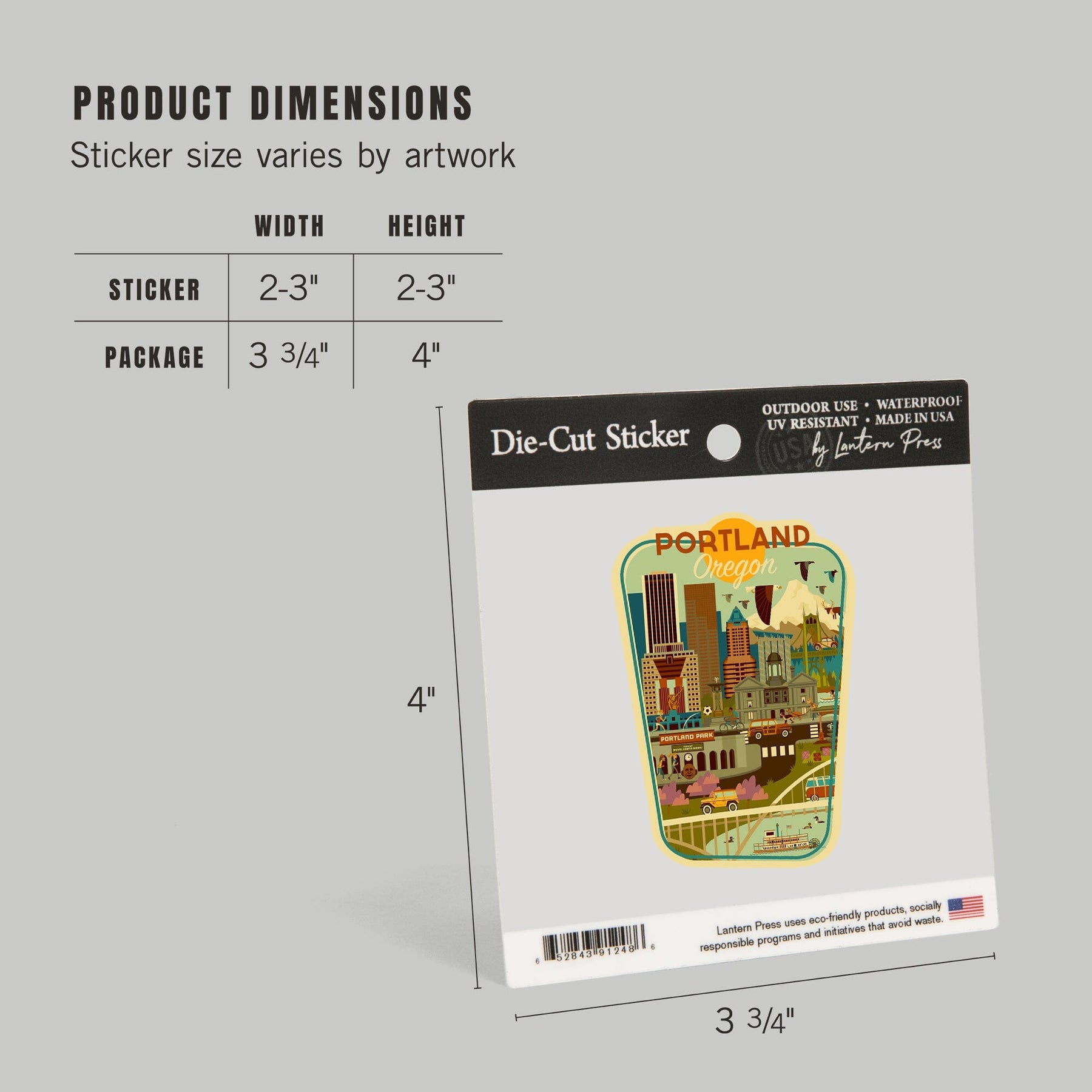 Portland, Oregon, Geometric, Contour, Vinyl Sticker Sticker Lantern Press