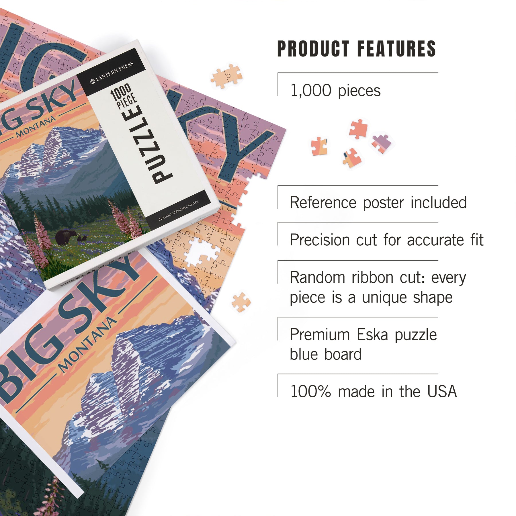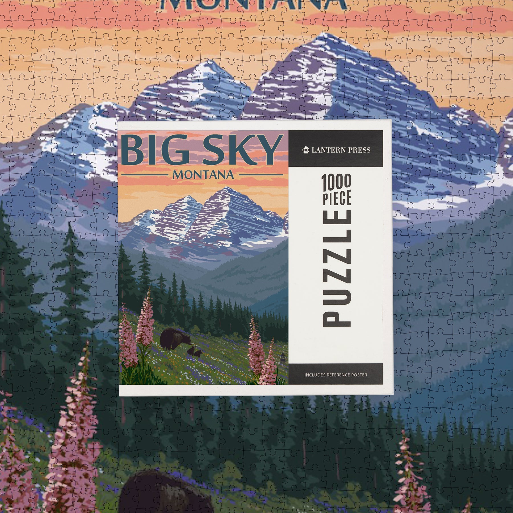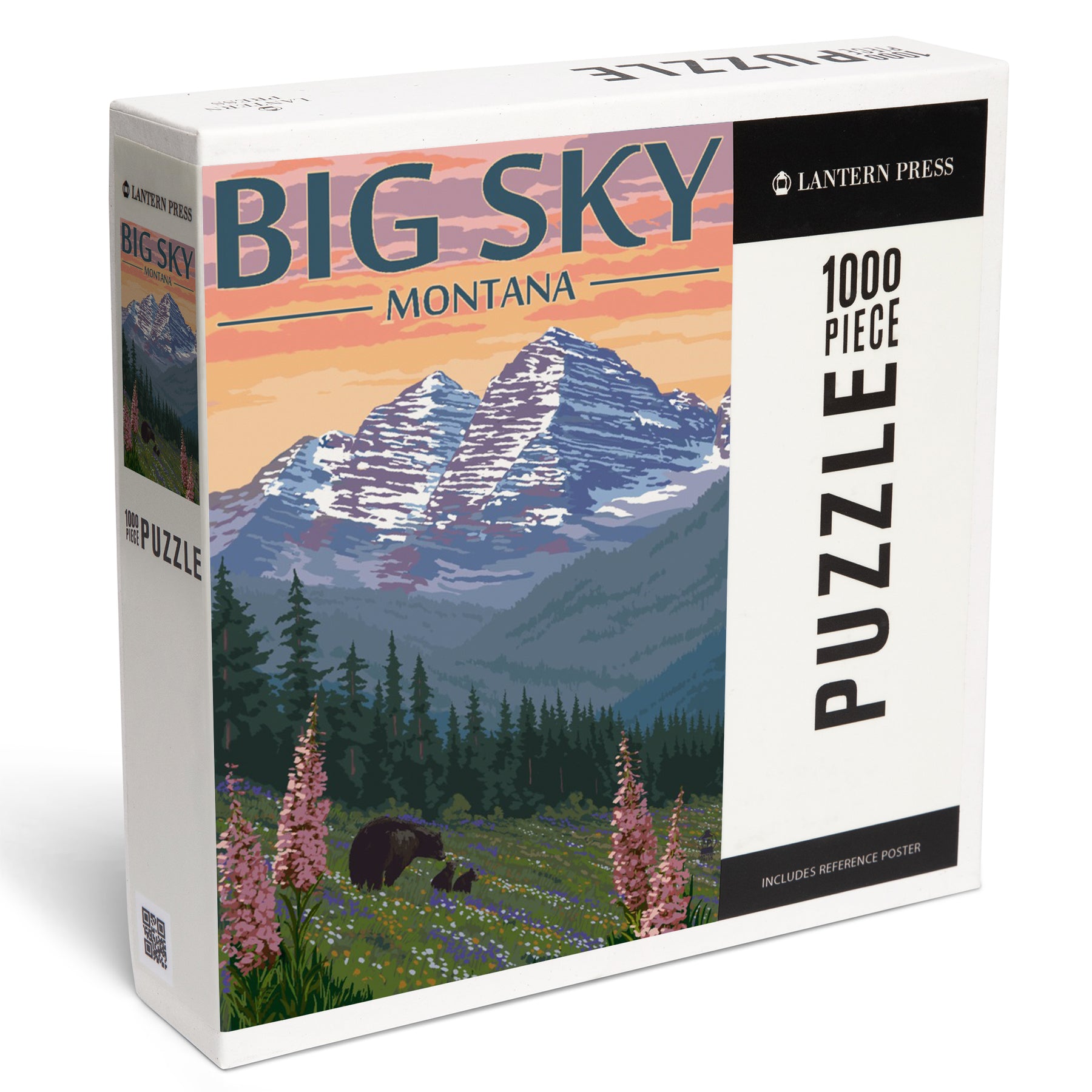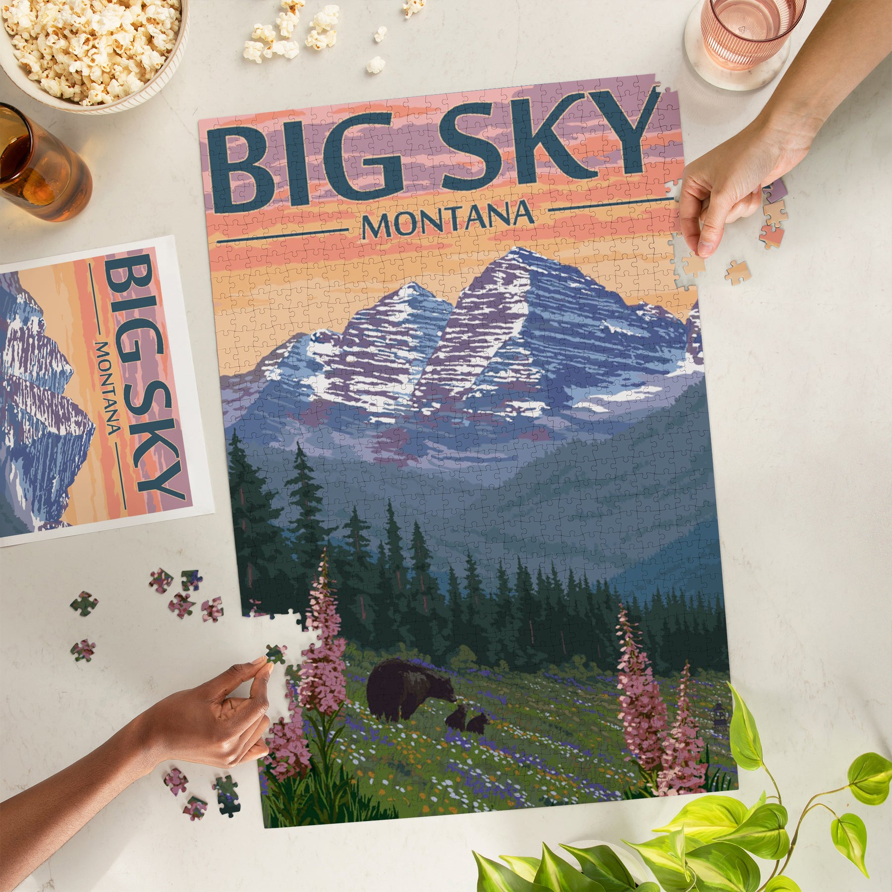 Big Sky, Montana, Bear and Spring Flowers, Jigsaw Puzzle Puzzle Lantern Press