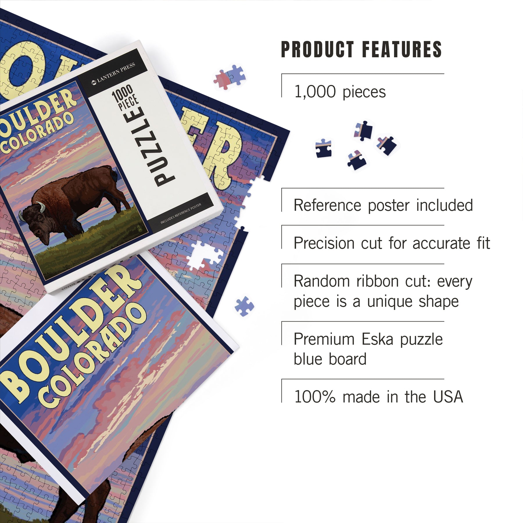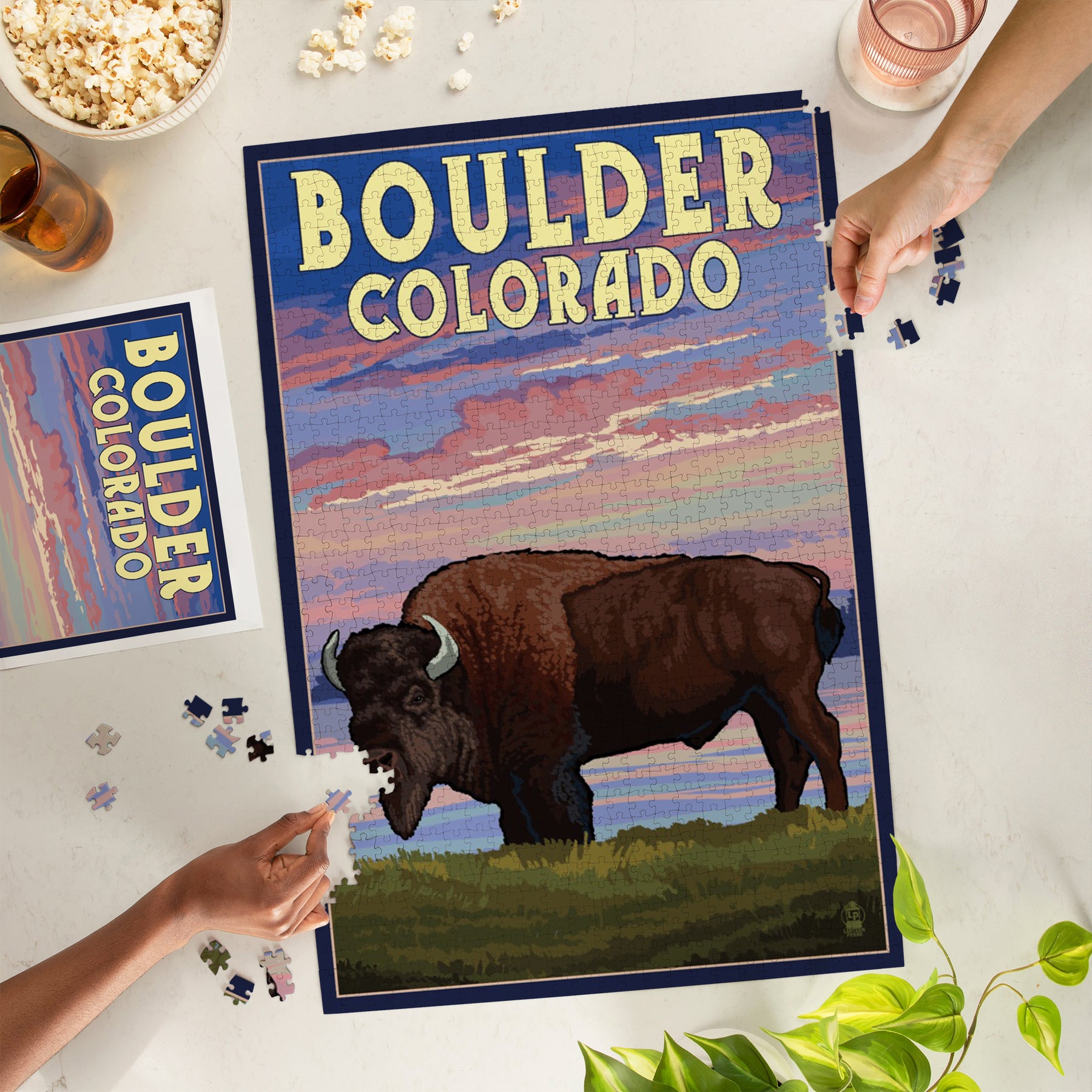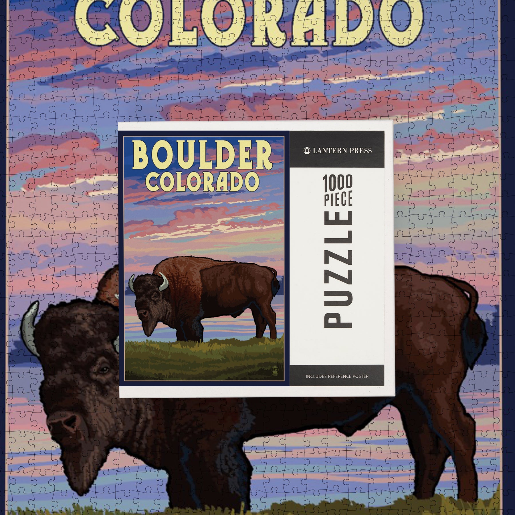 Boulder, Colorado, Bison and Sunset, Jigsaw Puzzle Puzzle Lantern Press