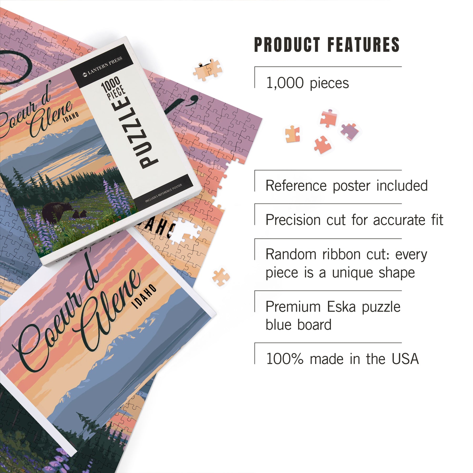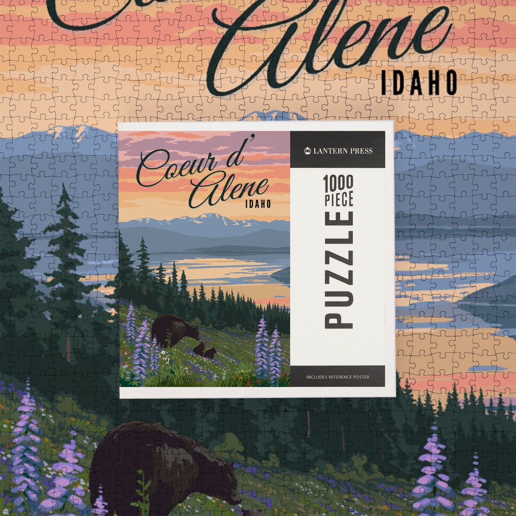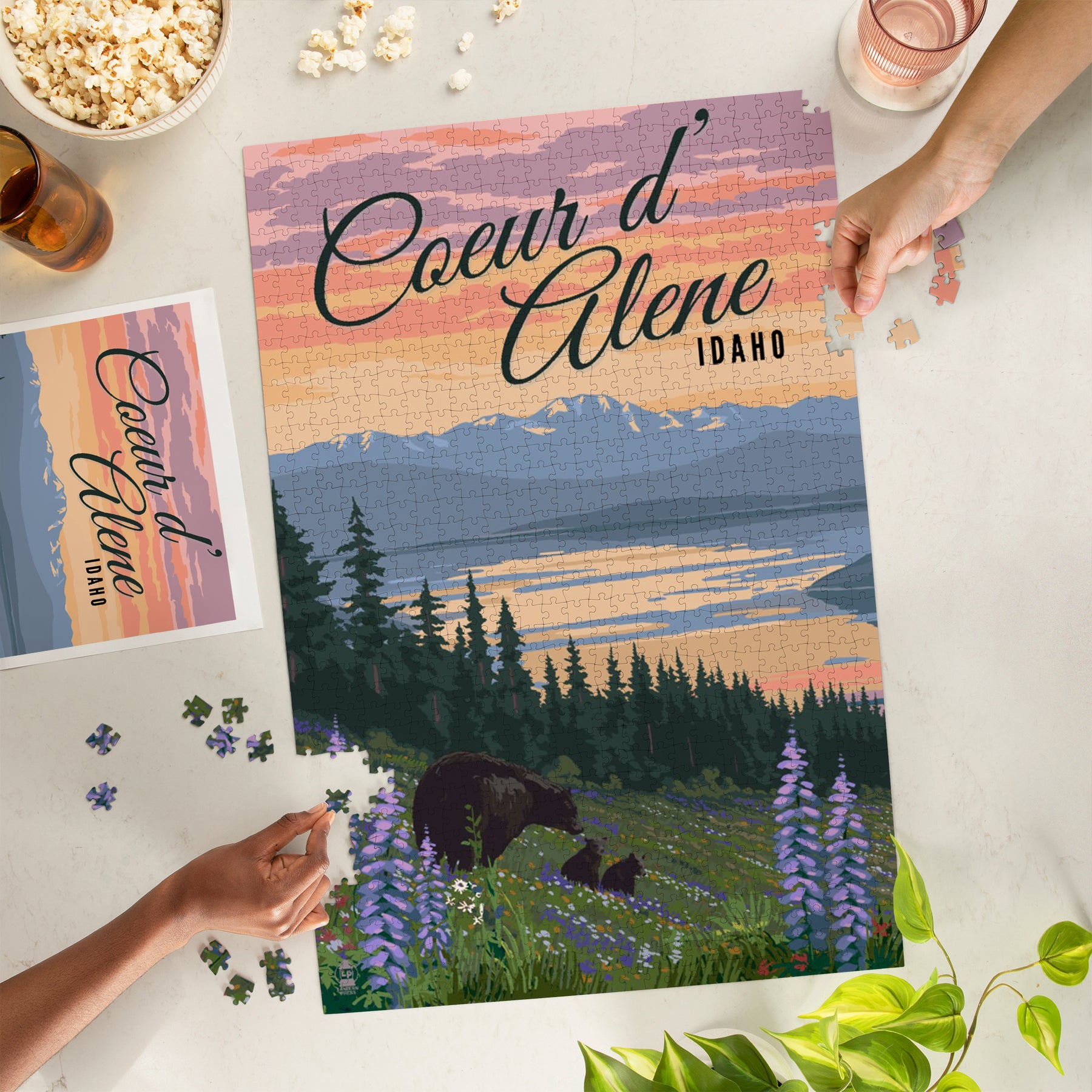 Coeur d'Alene, Idaho, Bear and Spring Flowers, Jigsaw Puzzle Puzzle Lantern Press