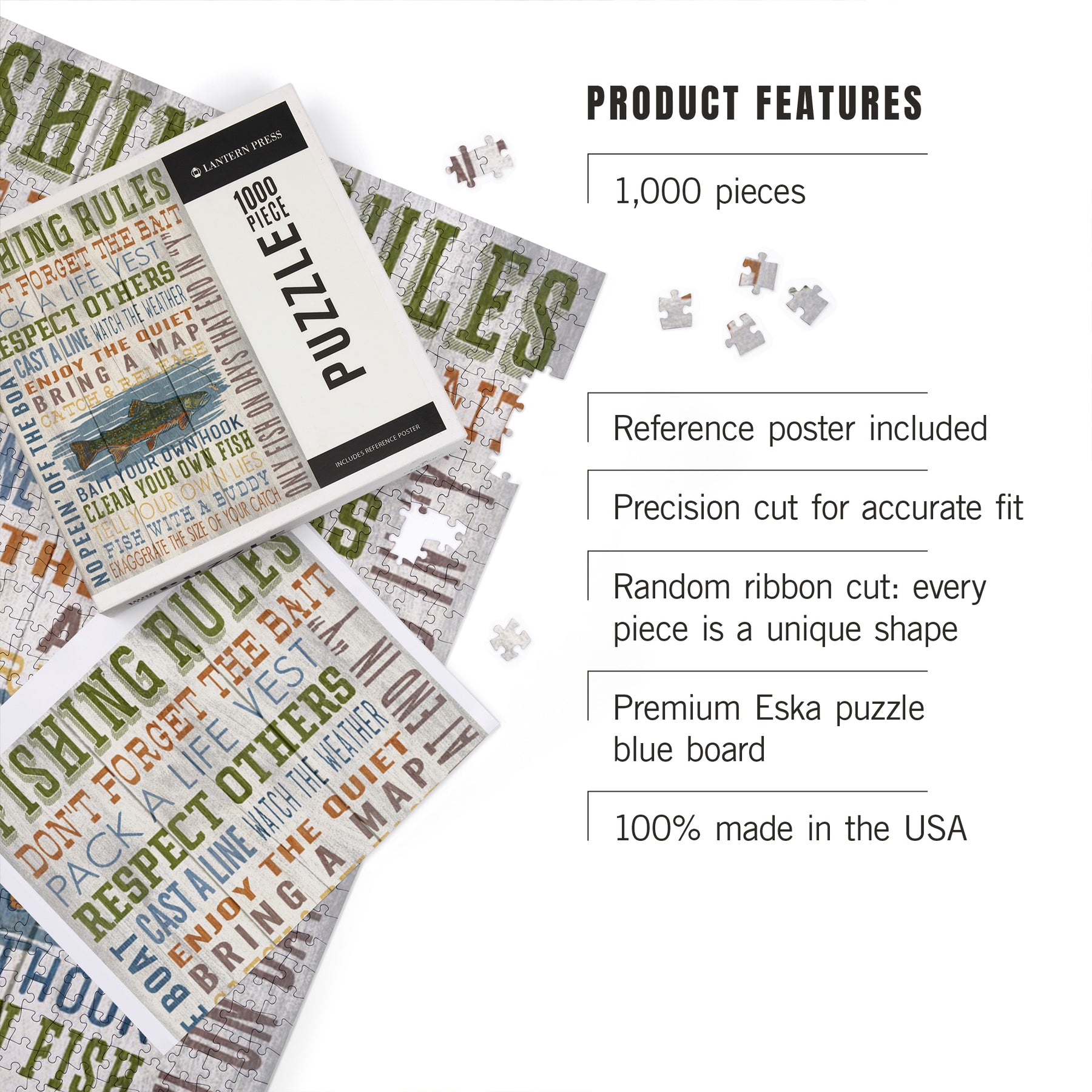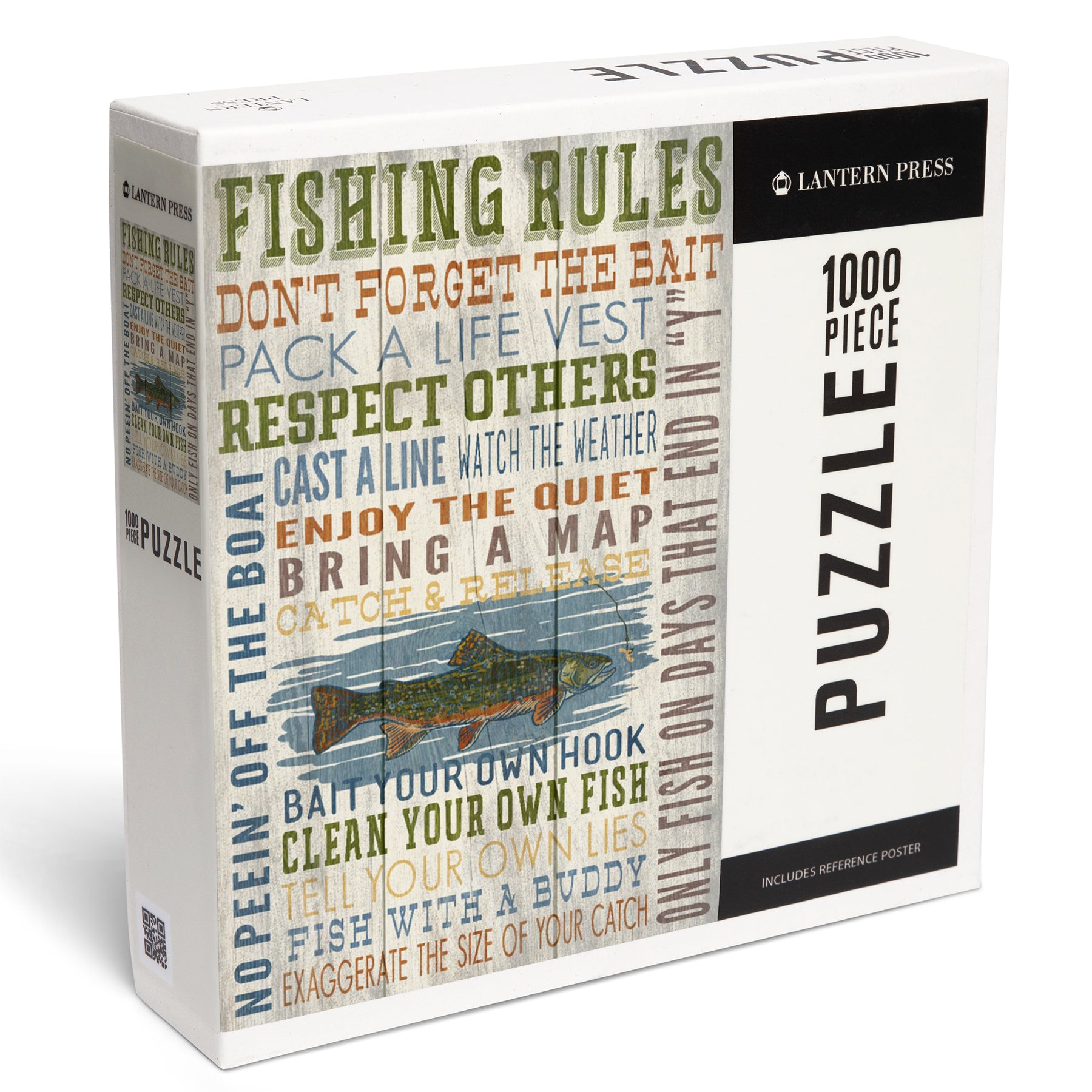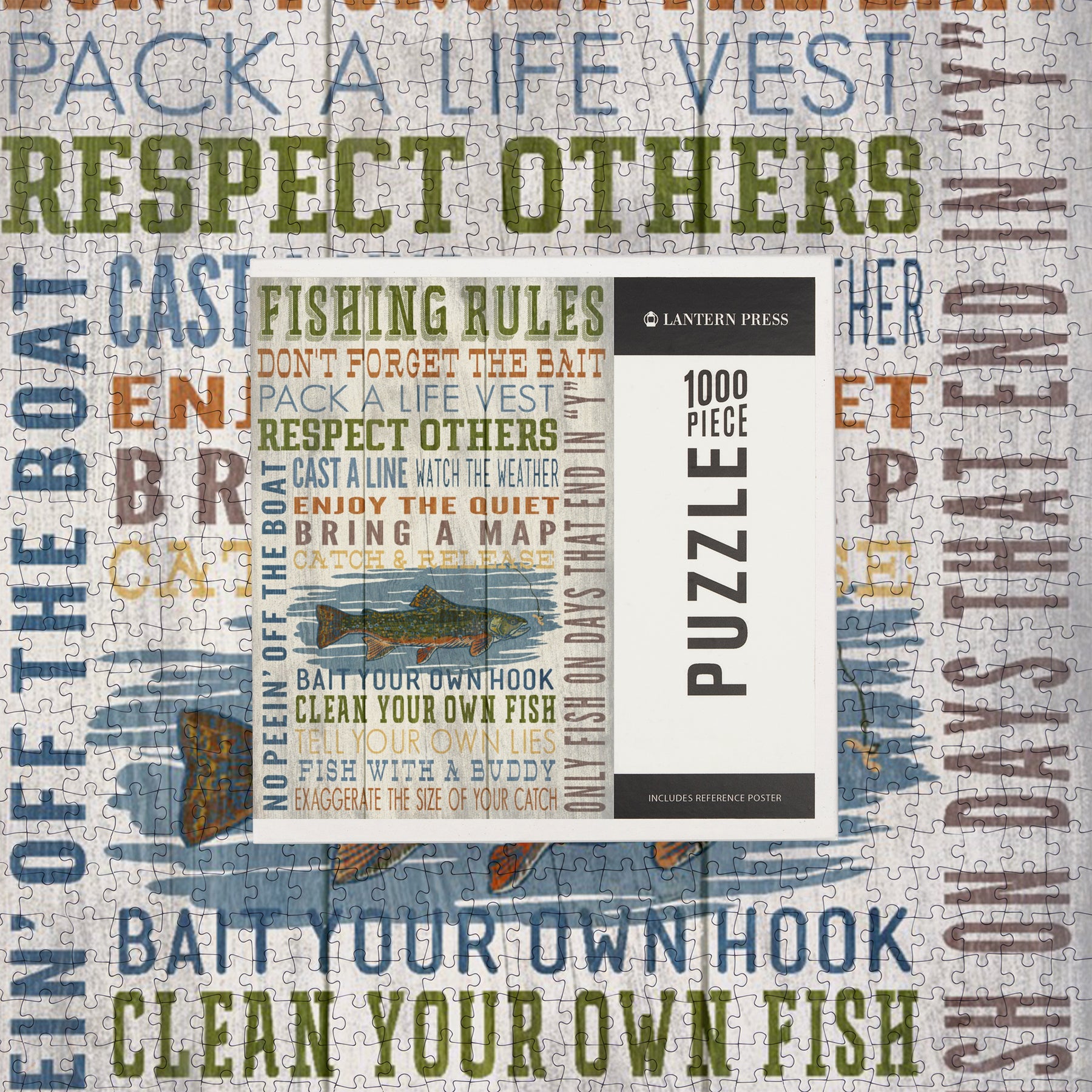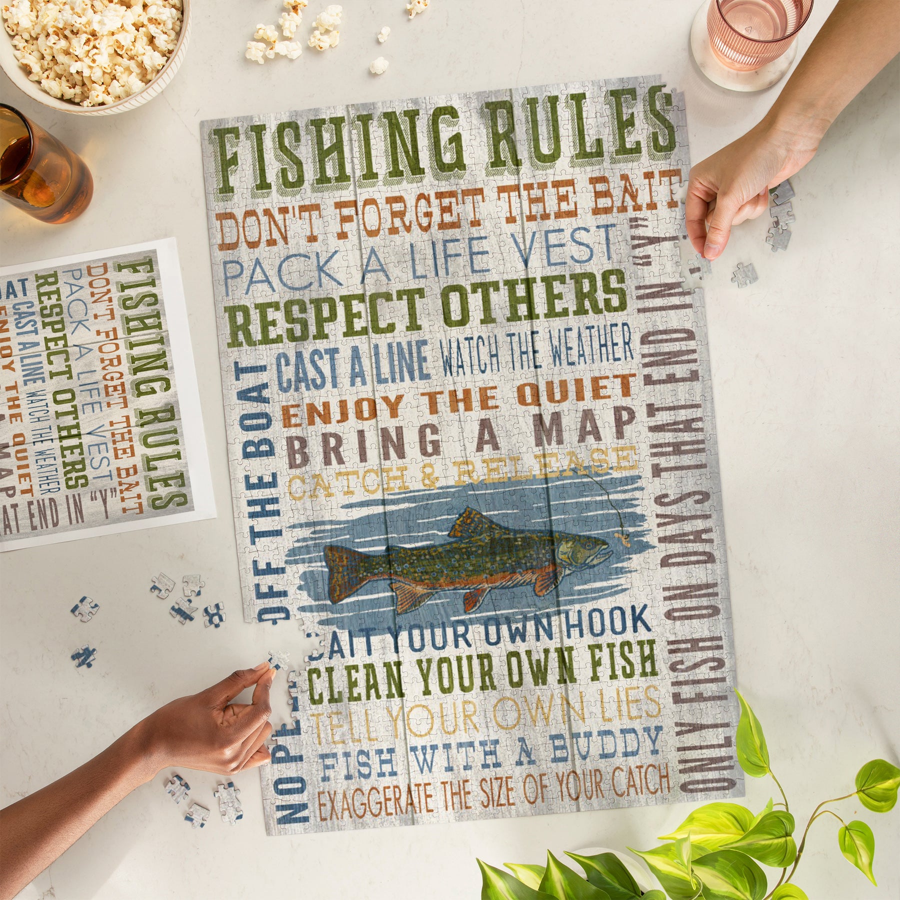 Fishing Rules, Rustic Typography, Jigsaw Puzzle Puzzle Lantern Press