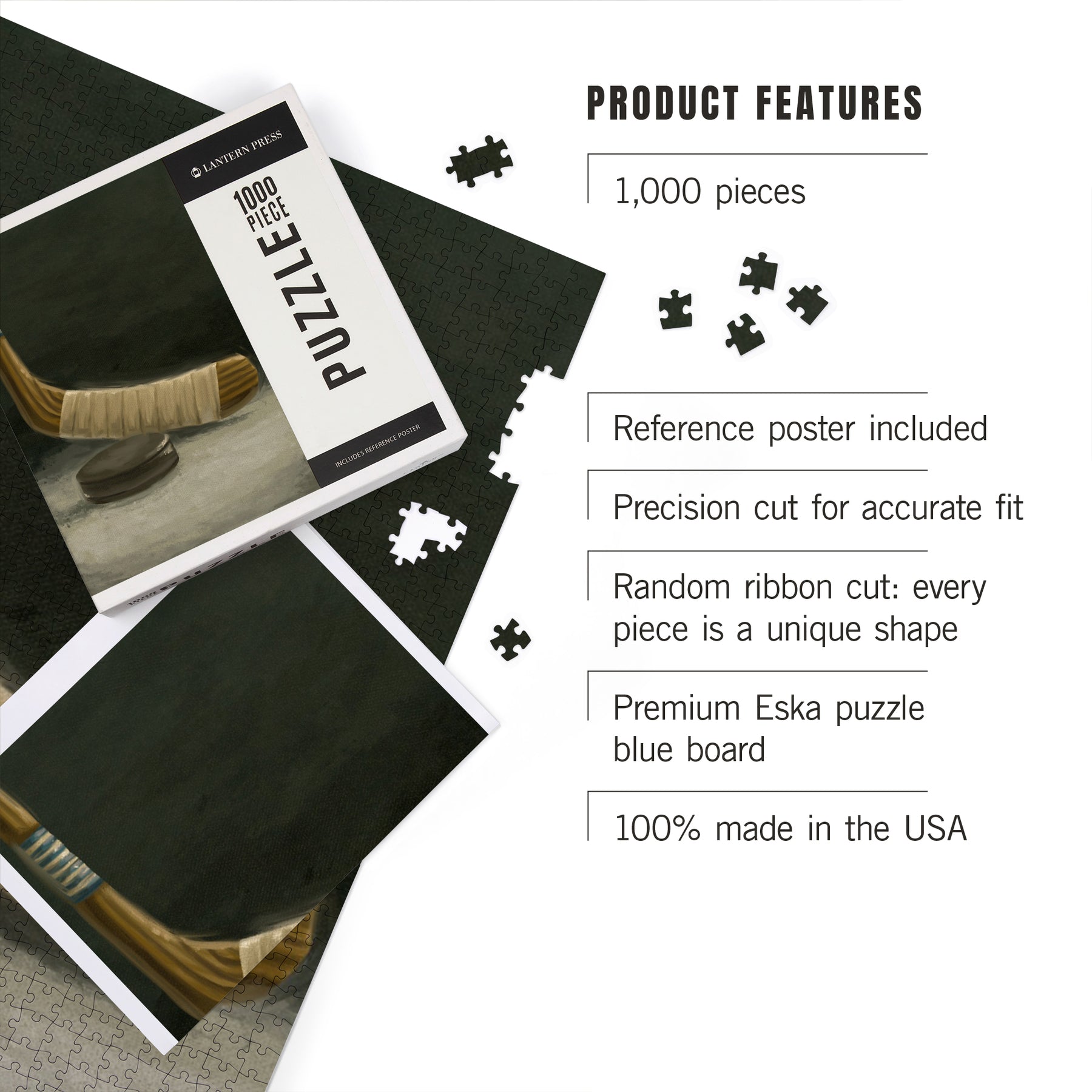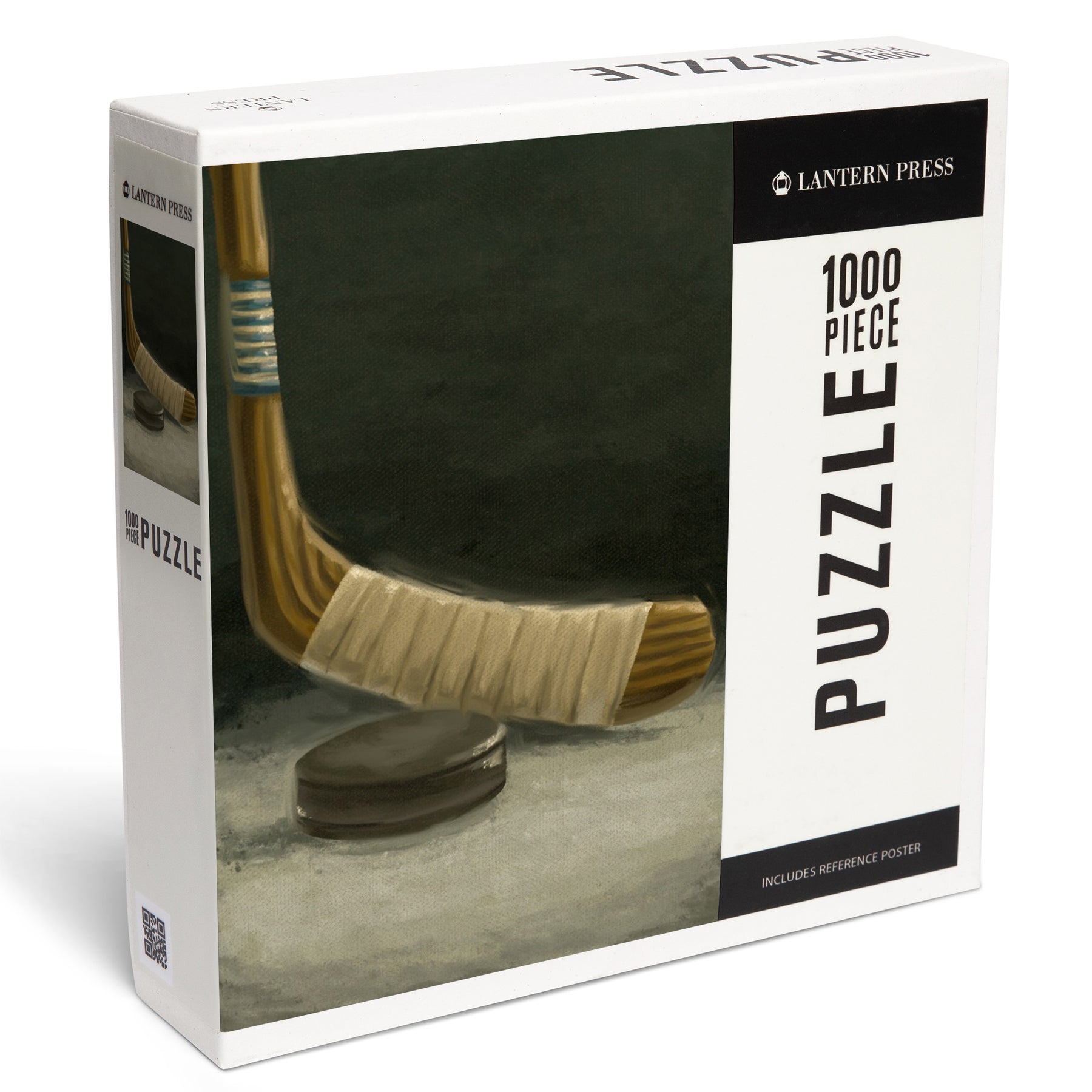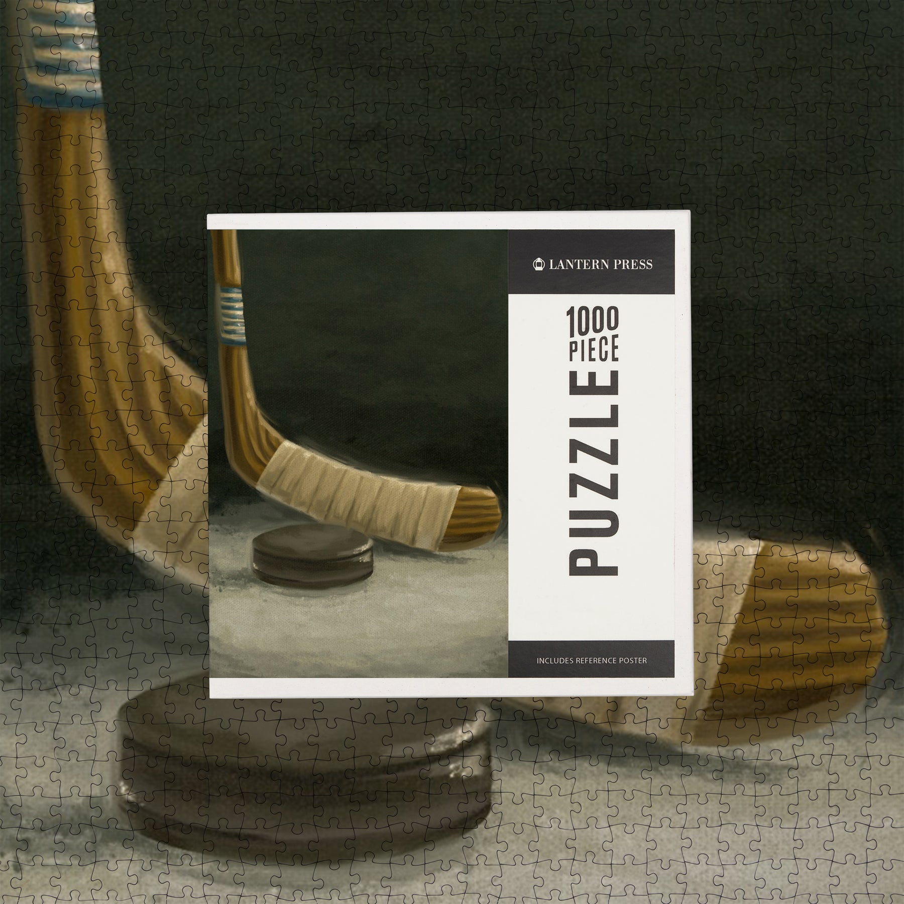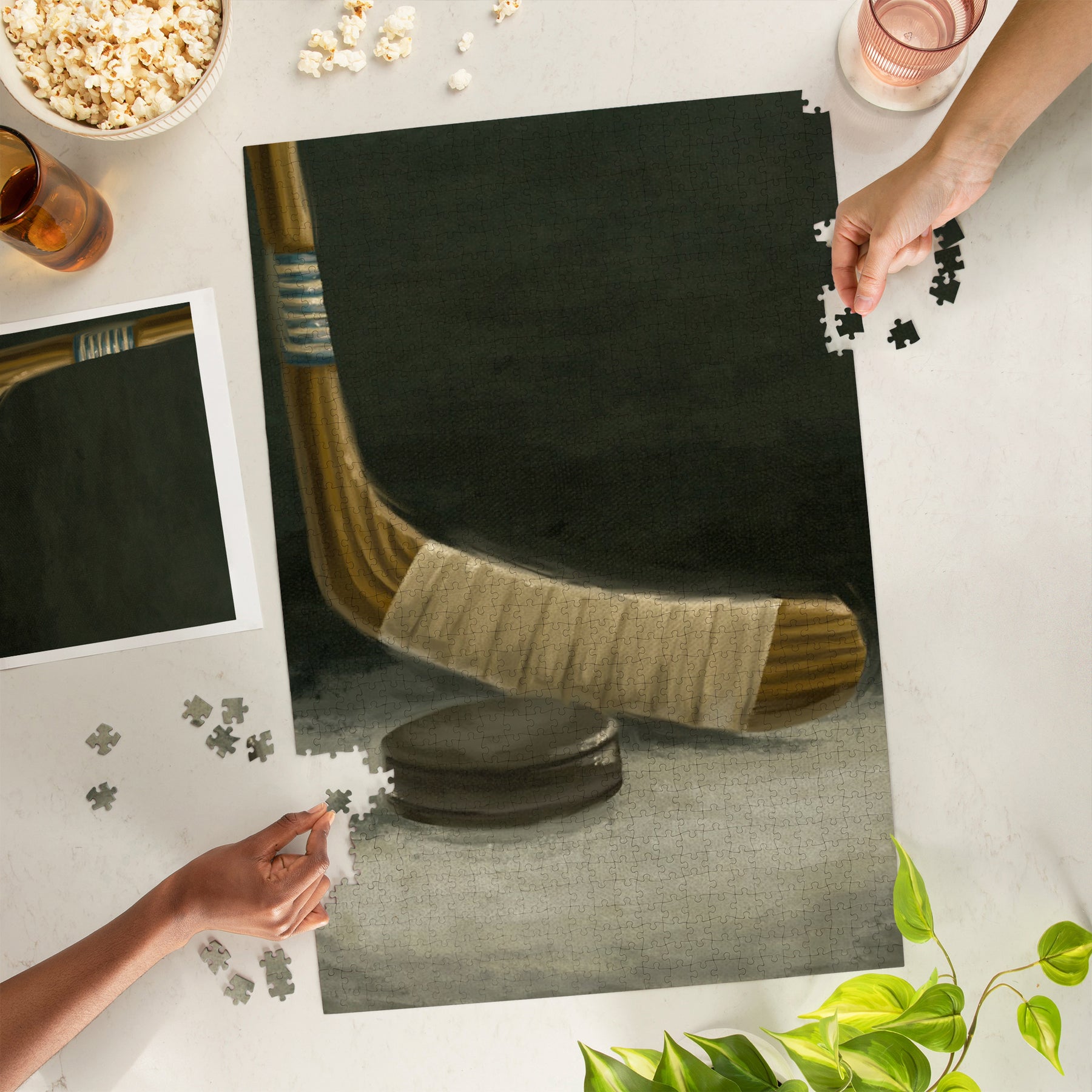 Hockey Stick and Puck, Oil Painting, Jigsaw Puzzle Puzzle Lantern Press