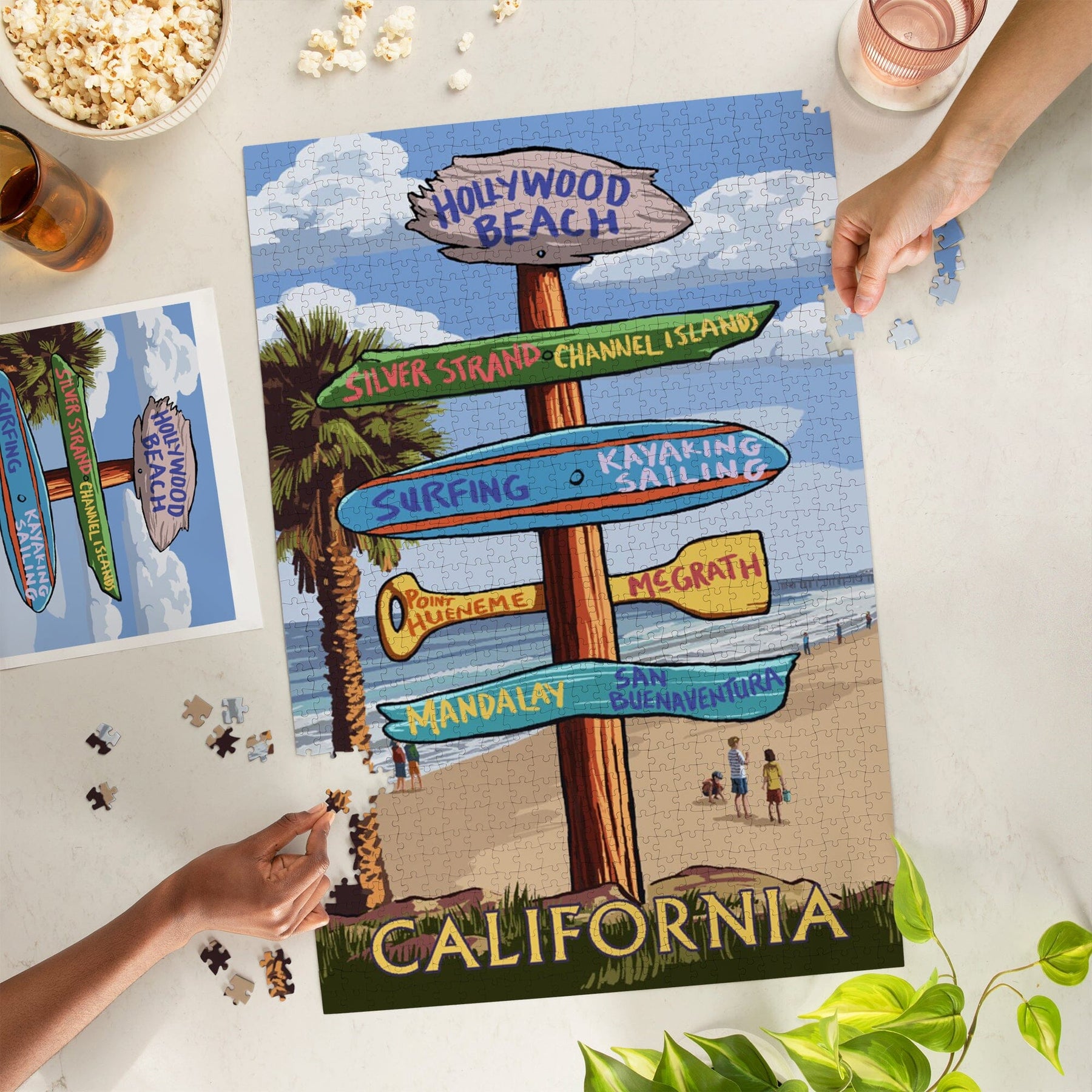 Hollywood Beach, California, Destination Sign, Jigsaw Puzzle Puzzle Lantern Press