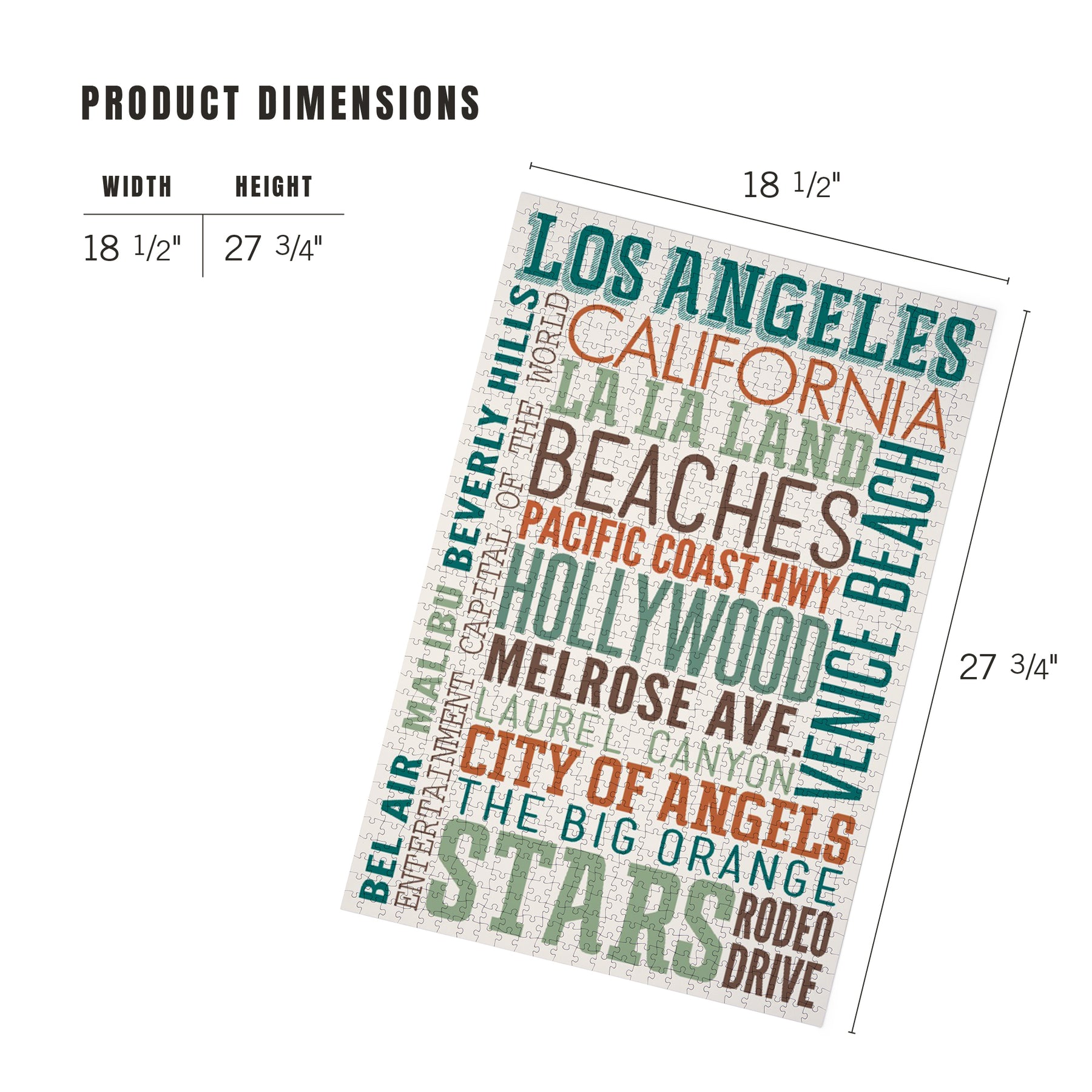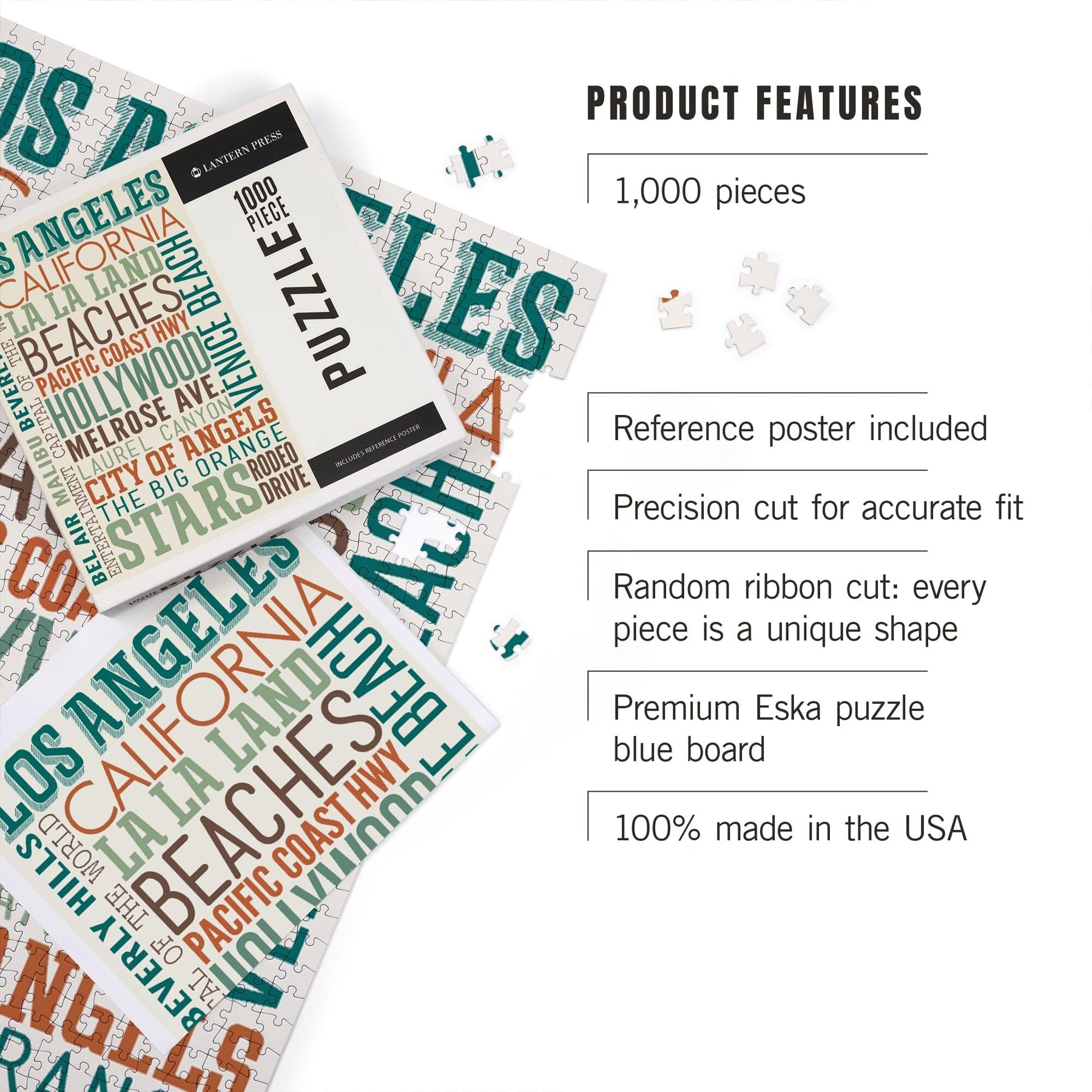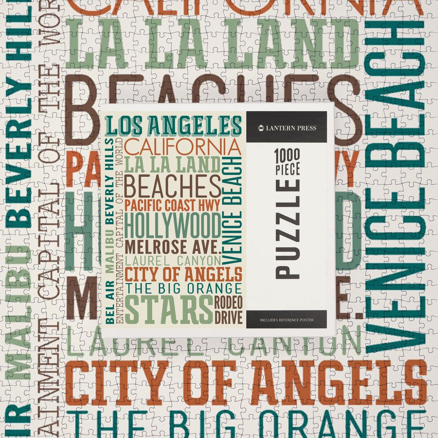 Los Angeles, California, Typography, Jigsaw Puzzle Puzzle Lantern Press