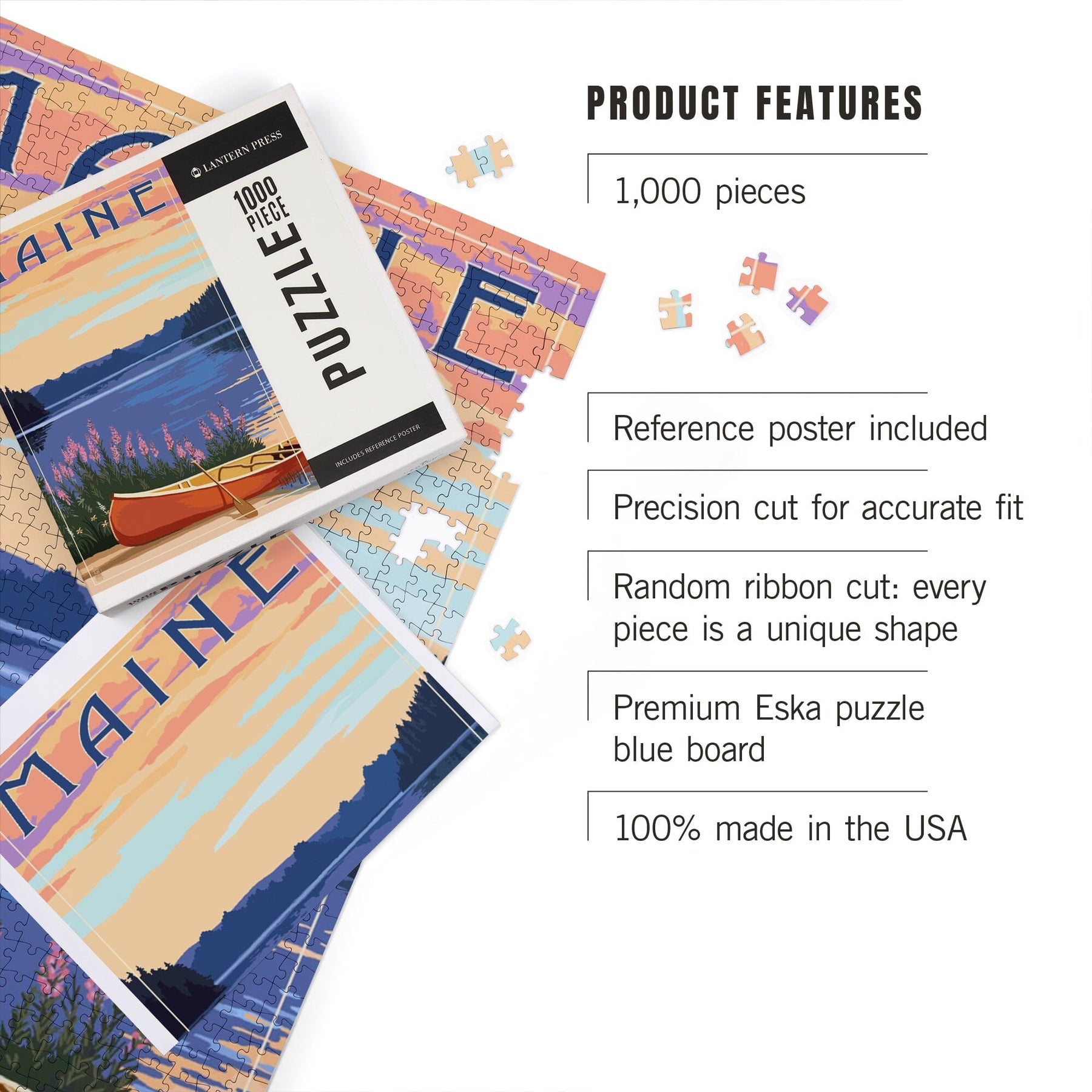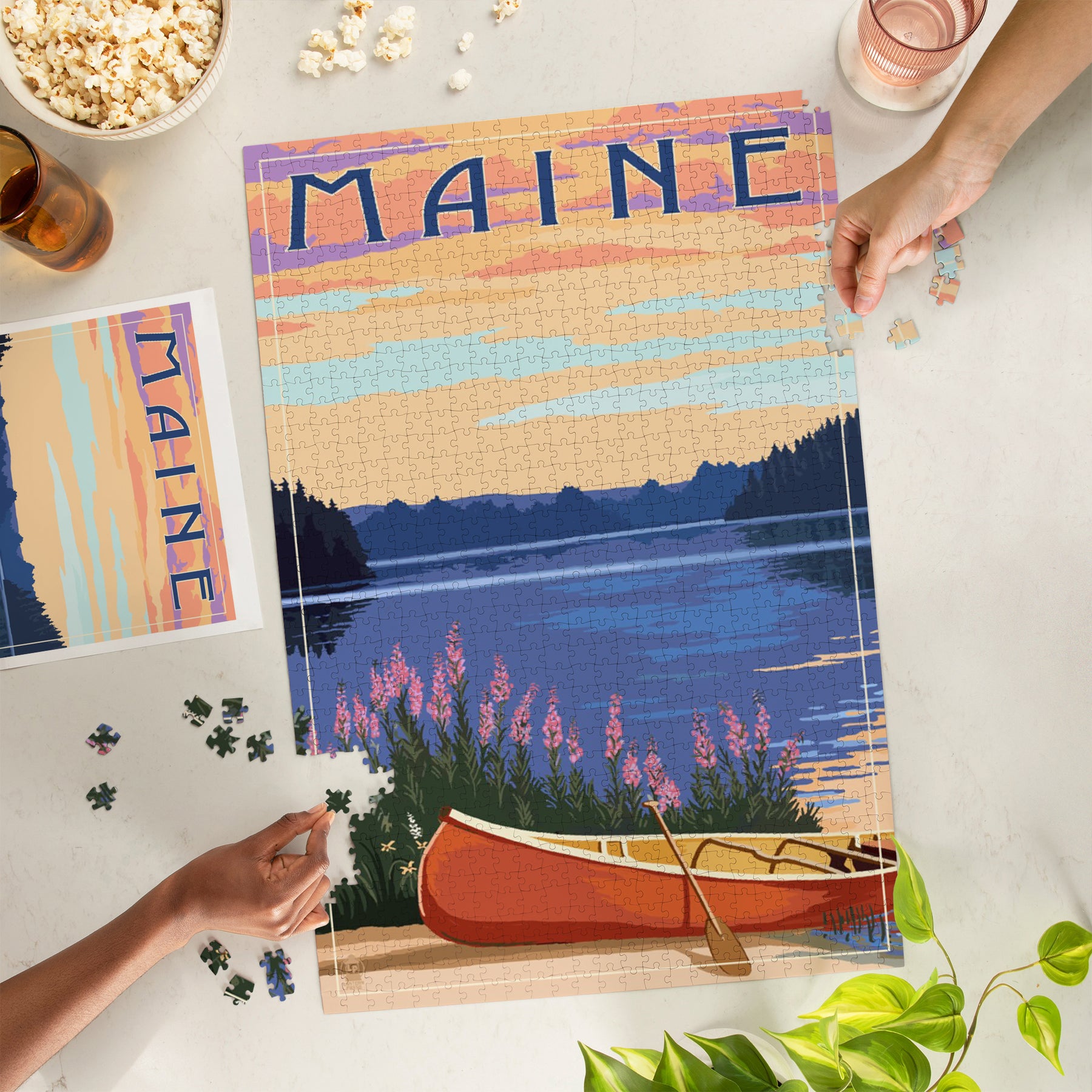 Maine, Canoe and Lake, Jigsaw Puzzle Puzzle Lantern Press