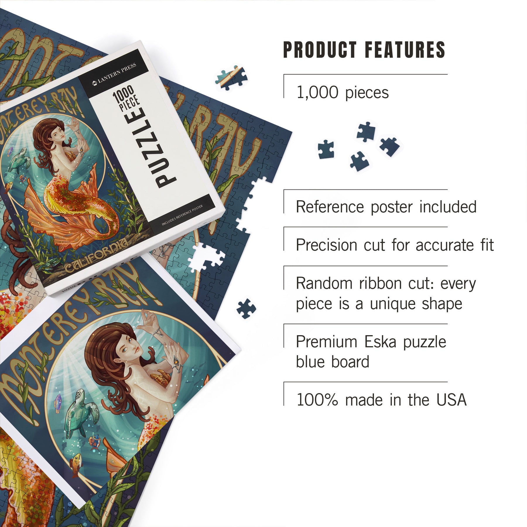 Monterey Bay, California, Mermaid, Jigsaw Puzzle Puzzle Lantern Press