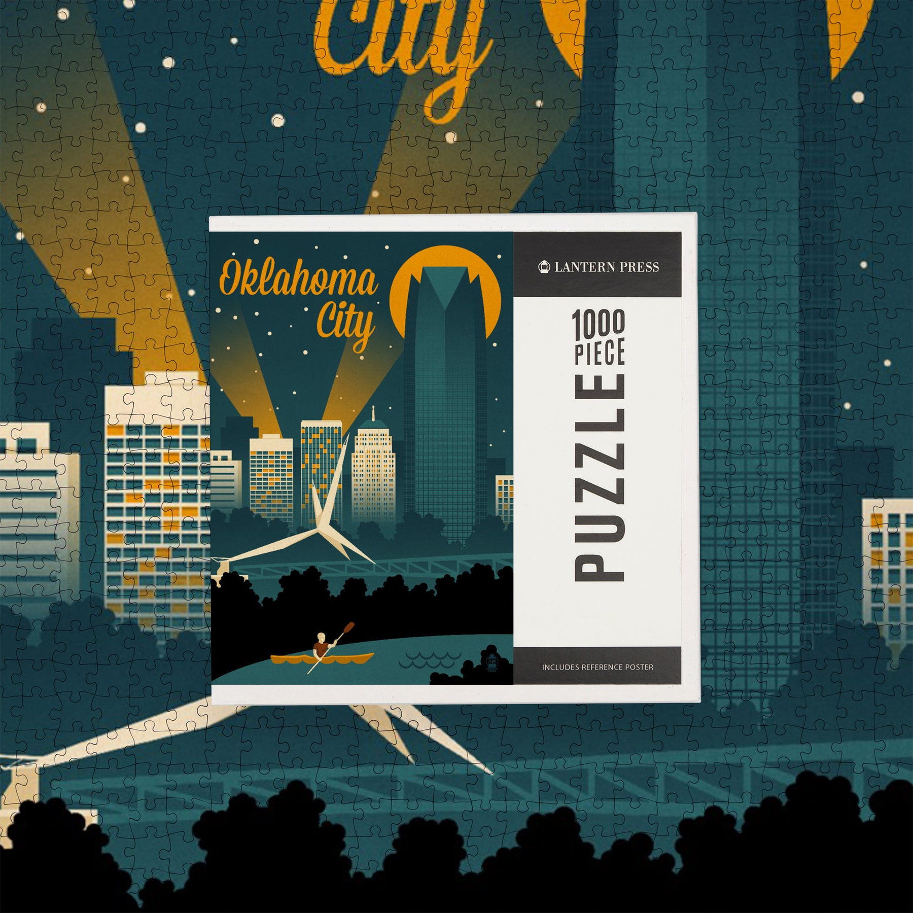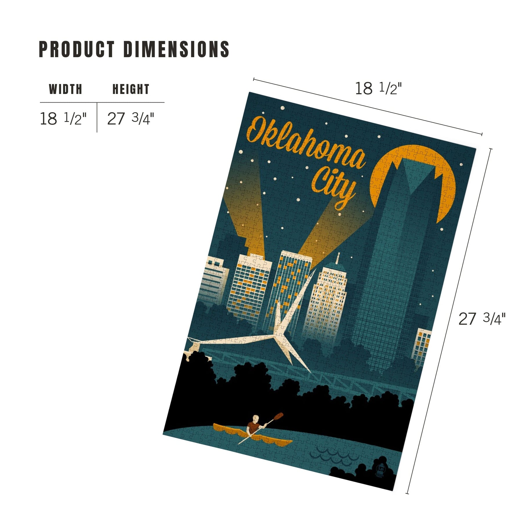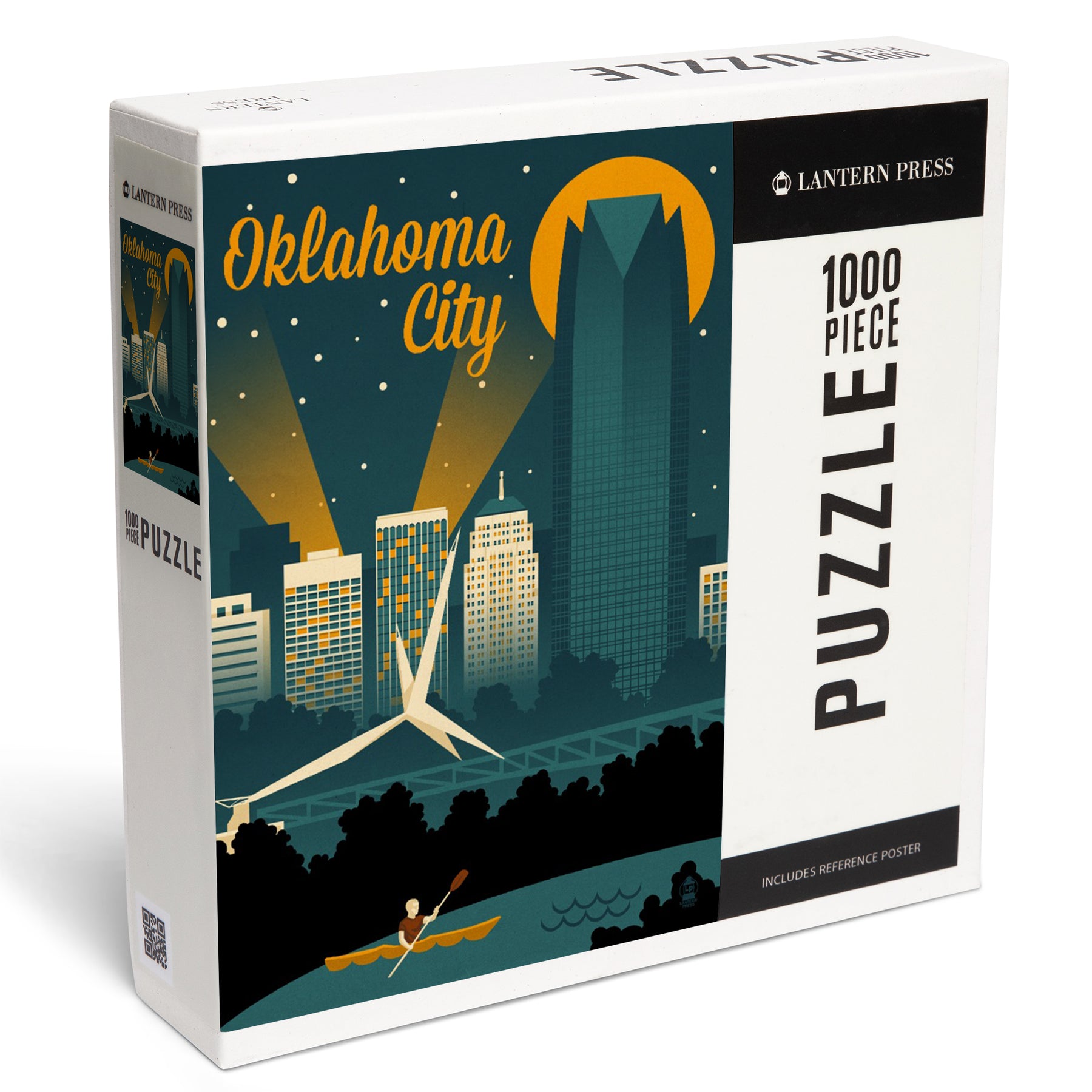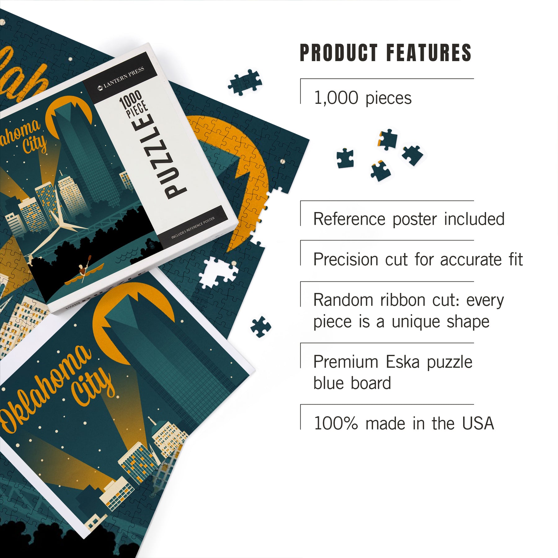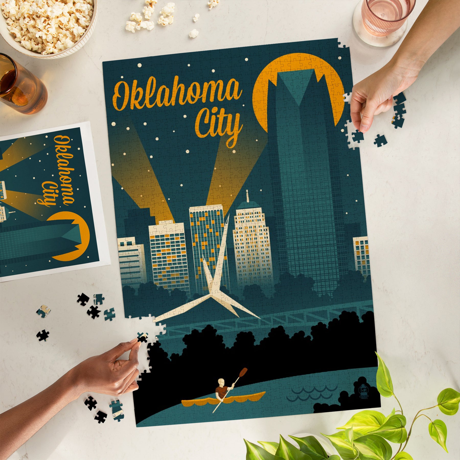 Oklahoma City, Oklahoma, Retro Skyline, Jigsaw Puzzle Puzzle Lantern Press