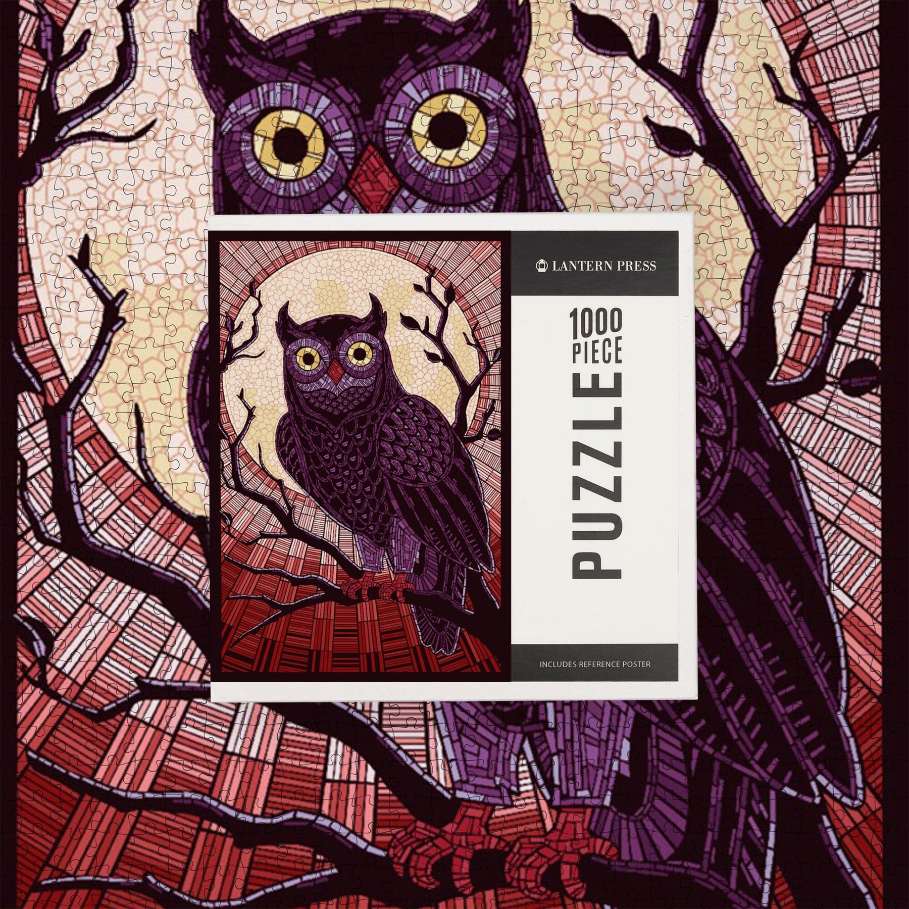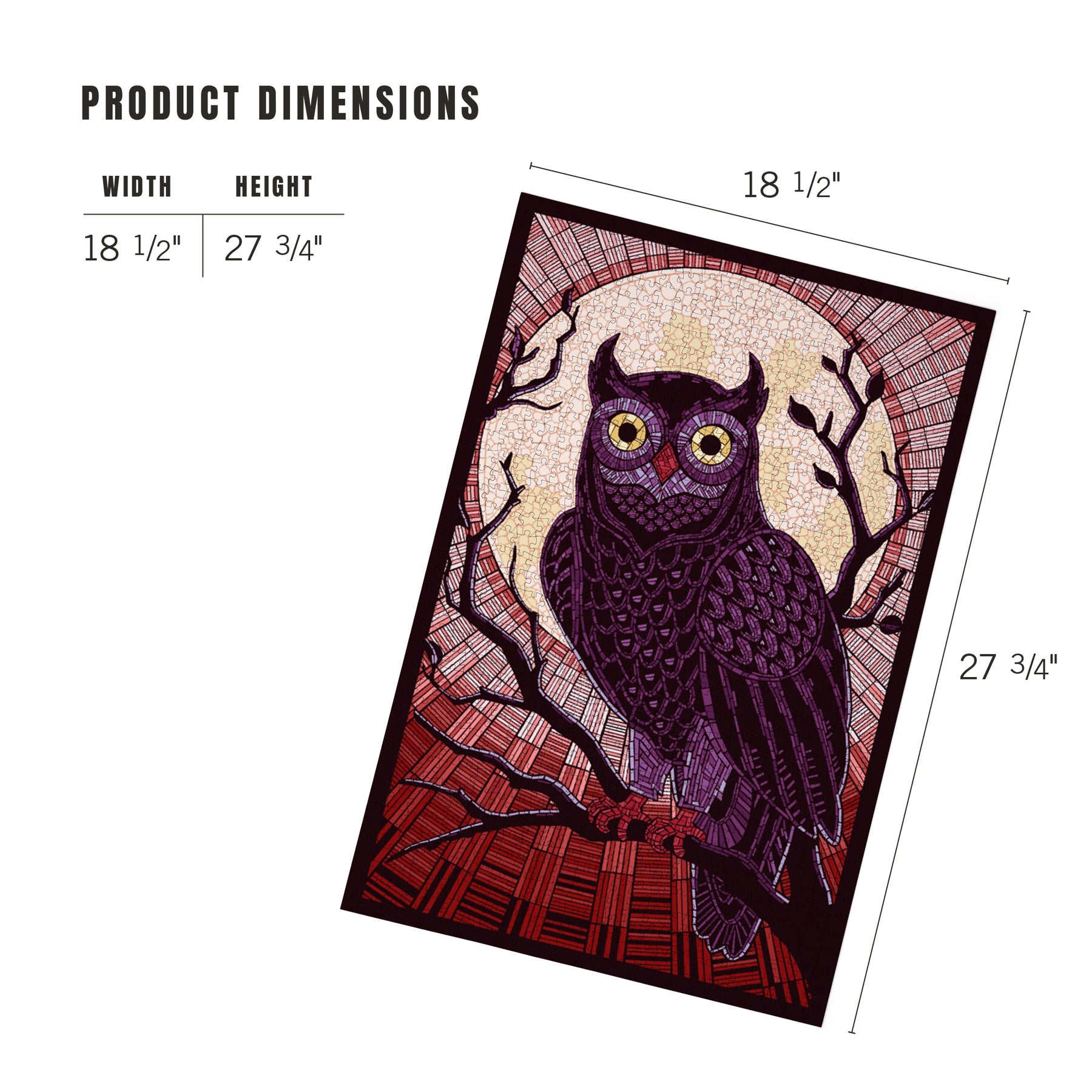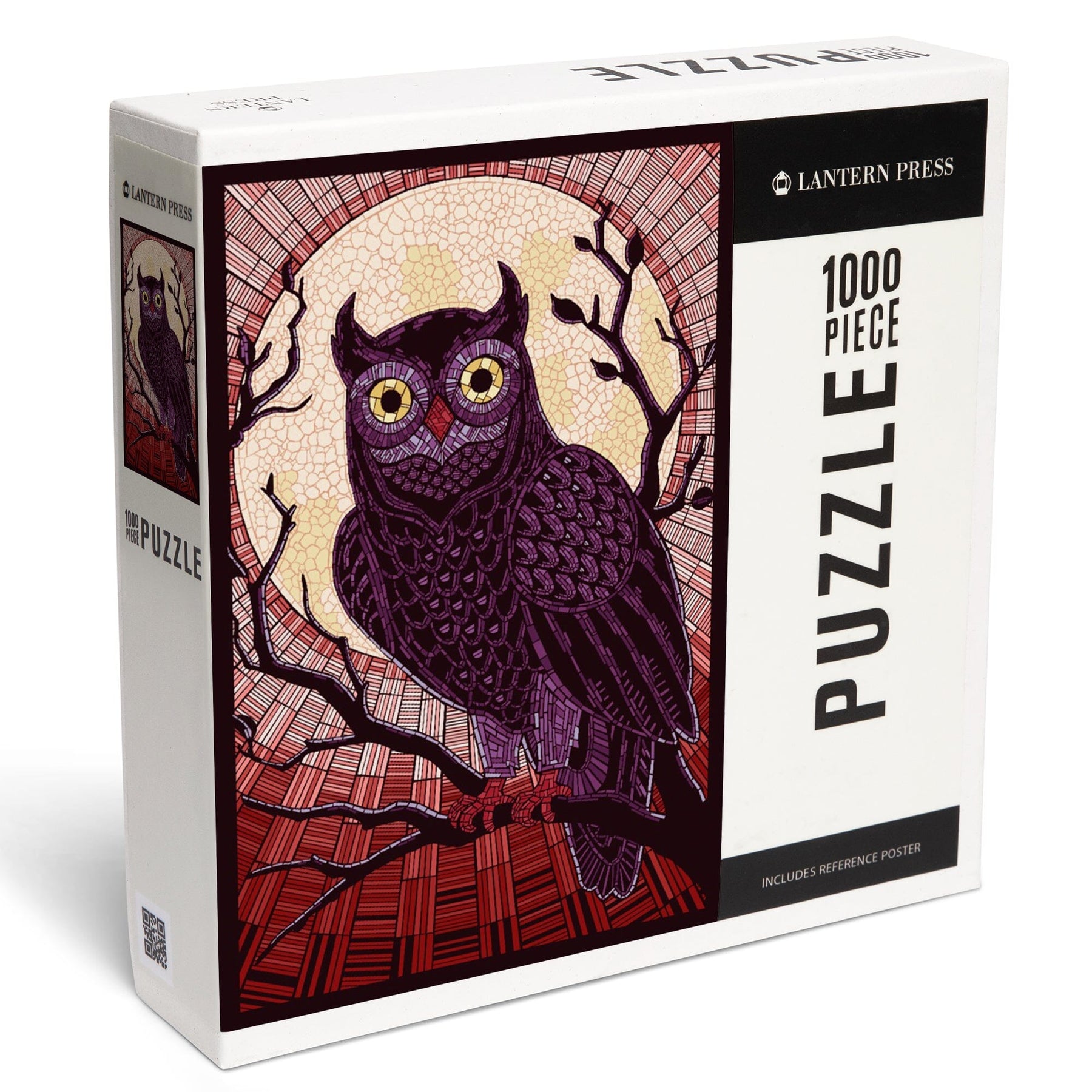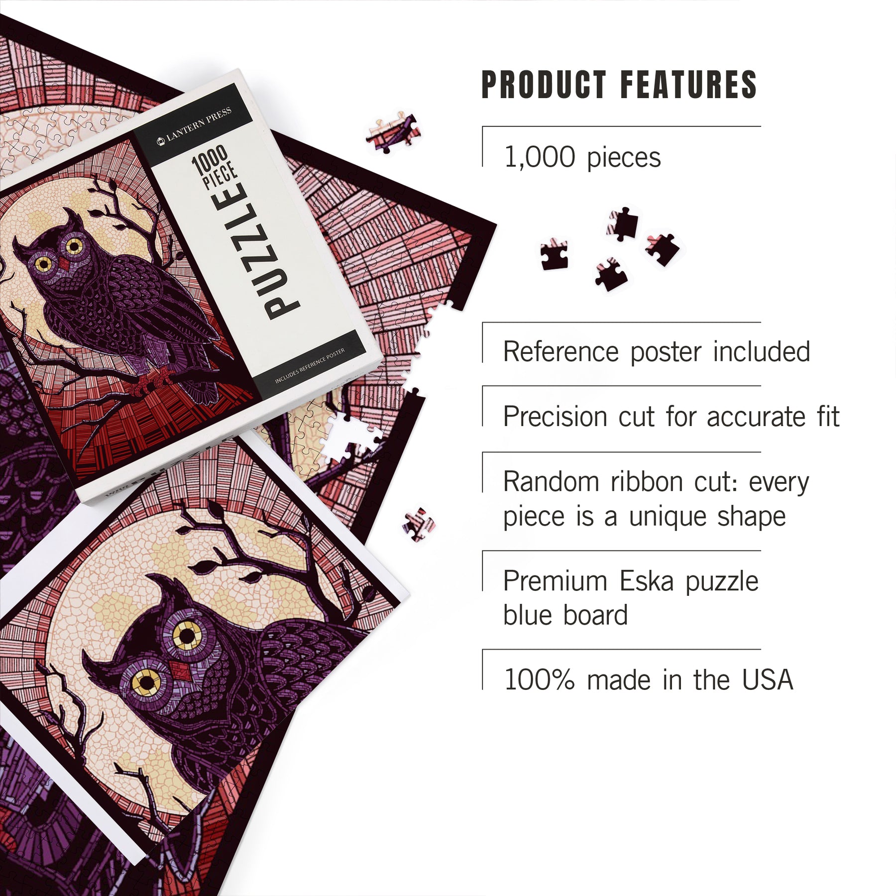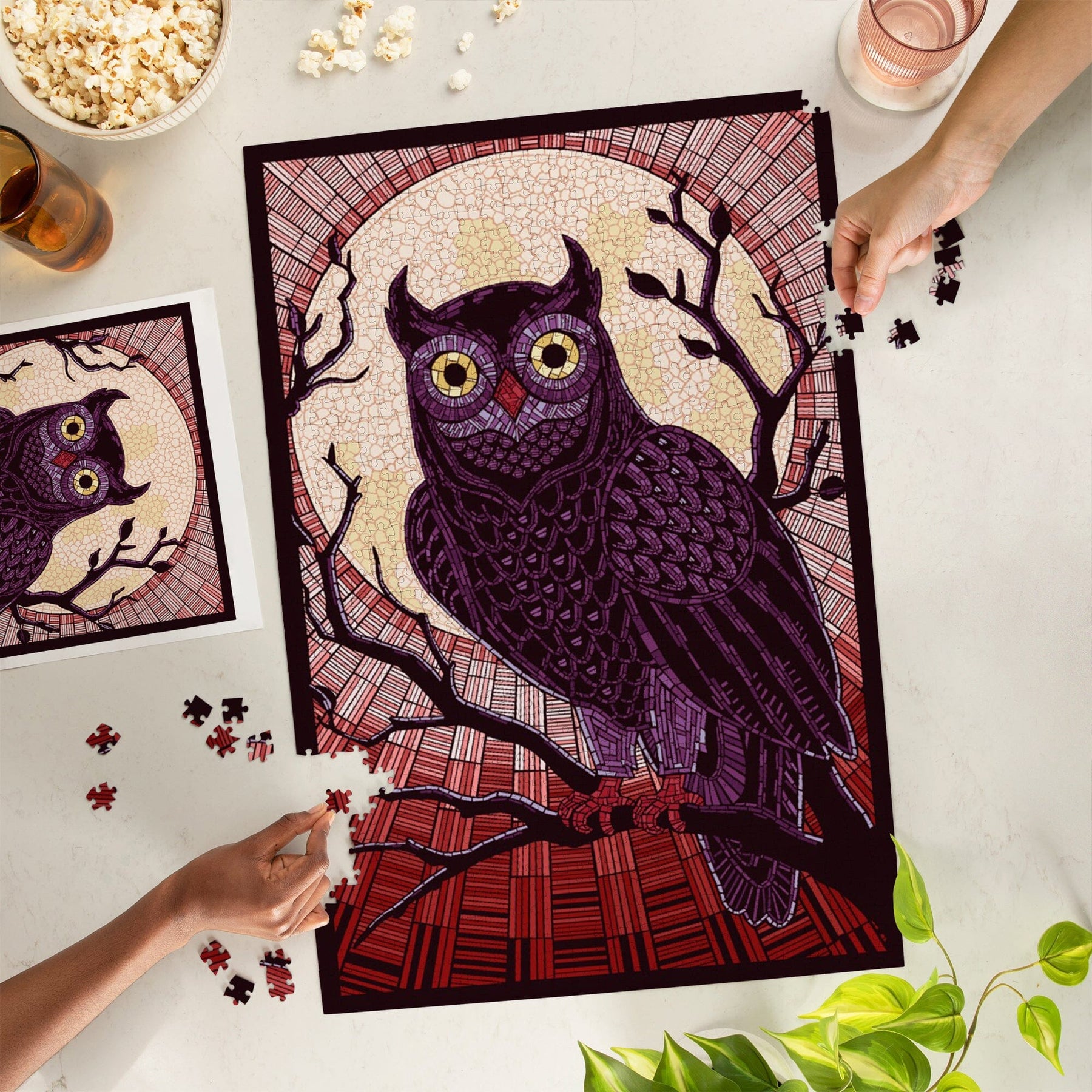 Owl, Paper Mosaic (Red), Jigsaw Puzzle Puzzle Lantern Press