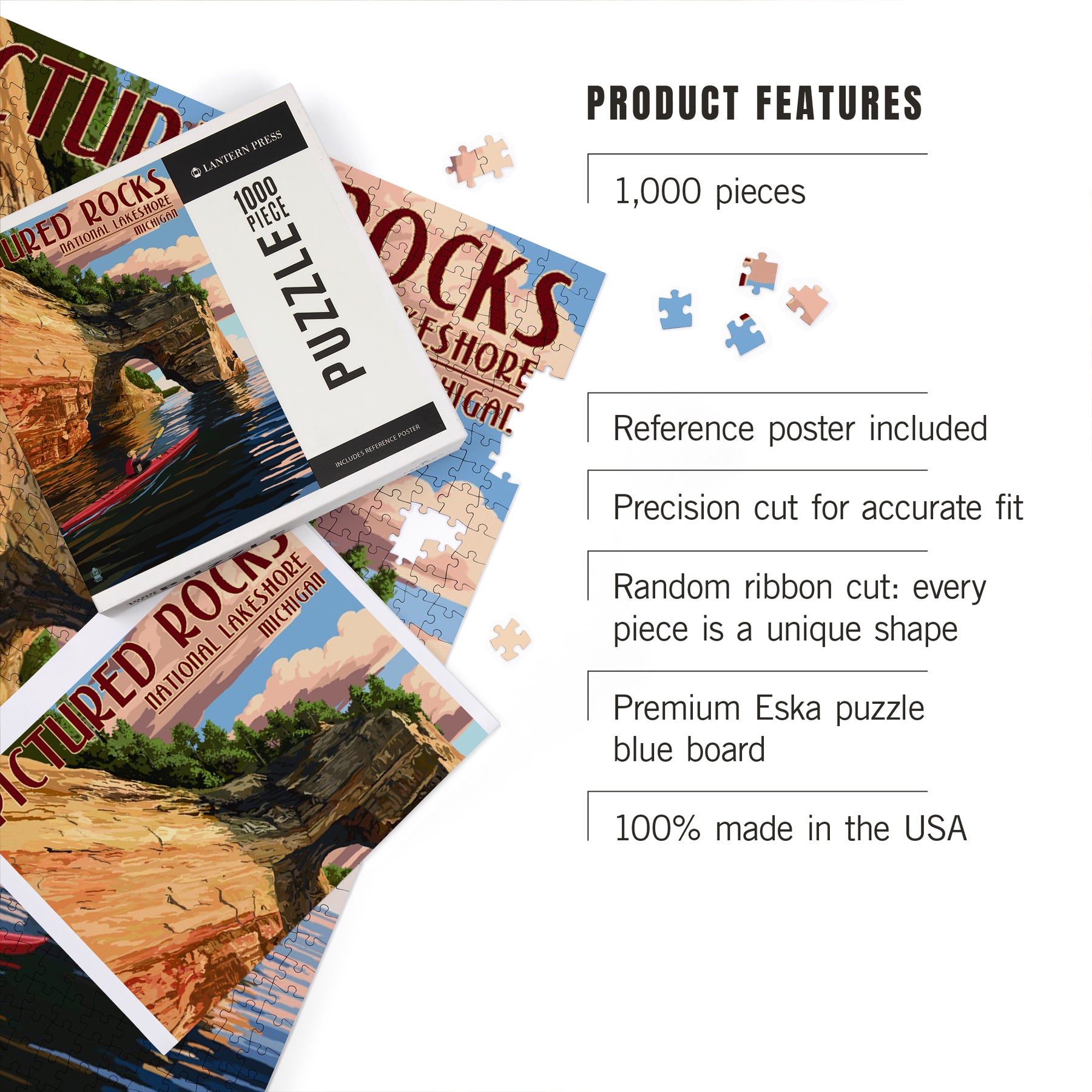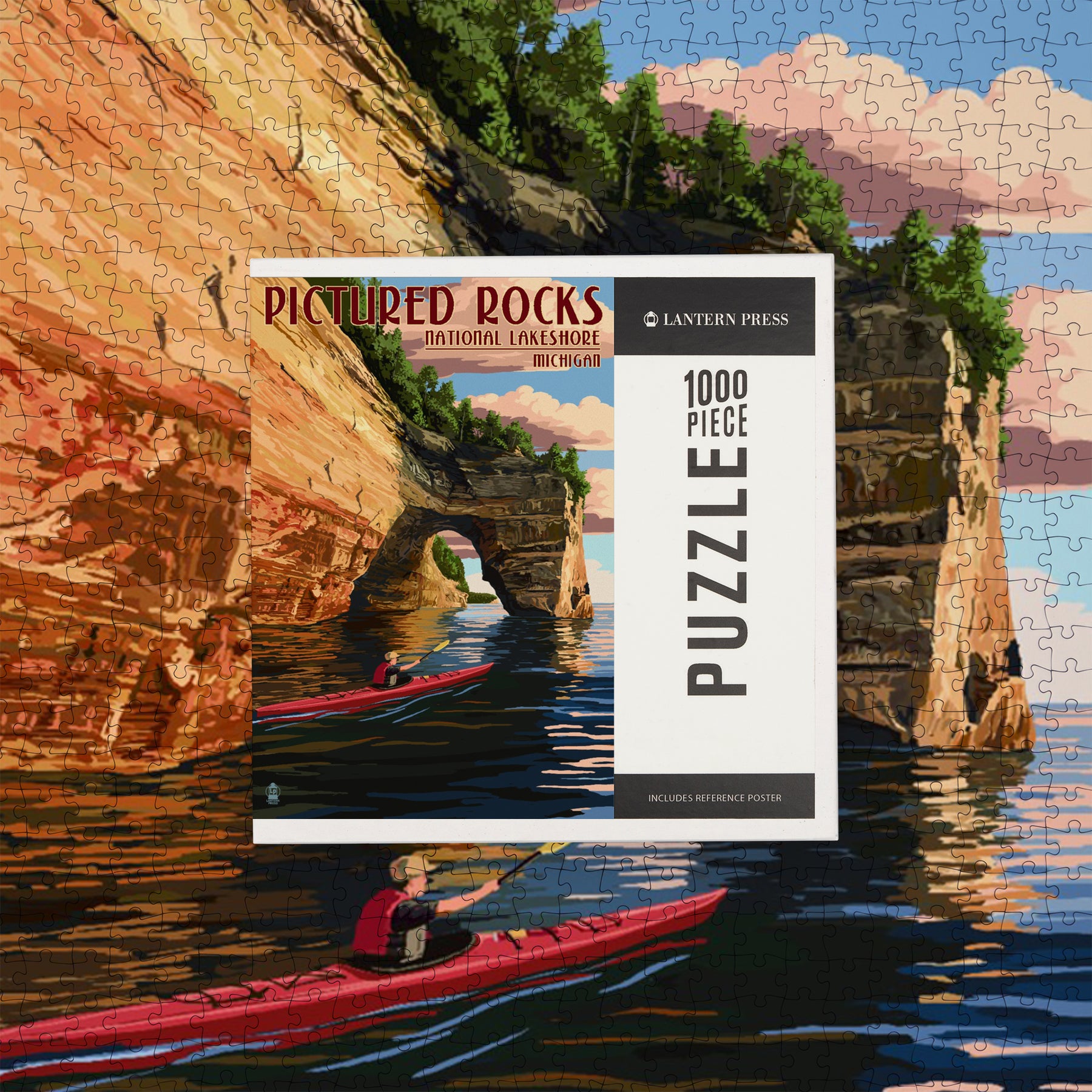 Pictured Rocks, Michigan, Kayaker, Jigsaw Puzzle Puzzle Lantern Press