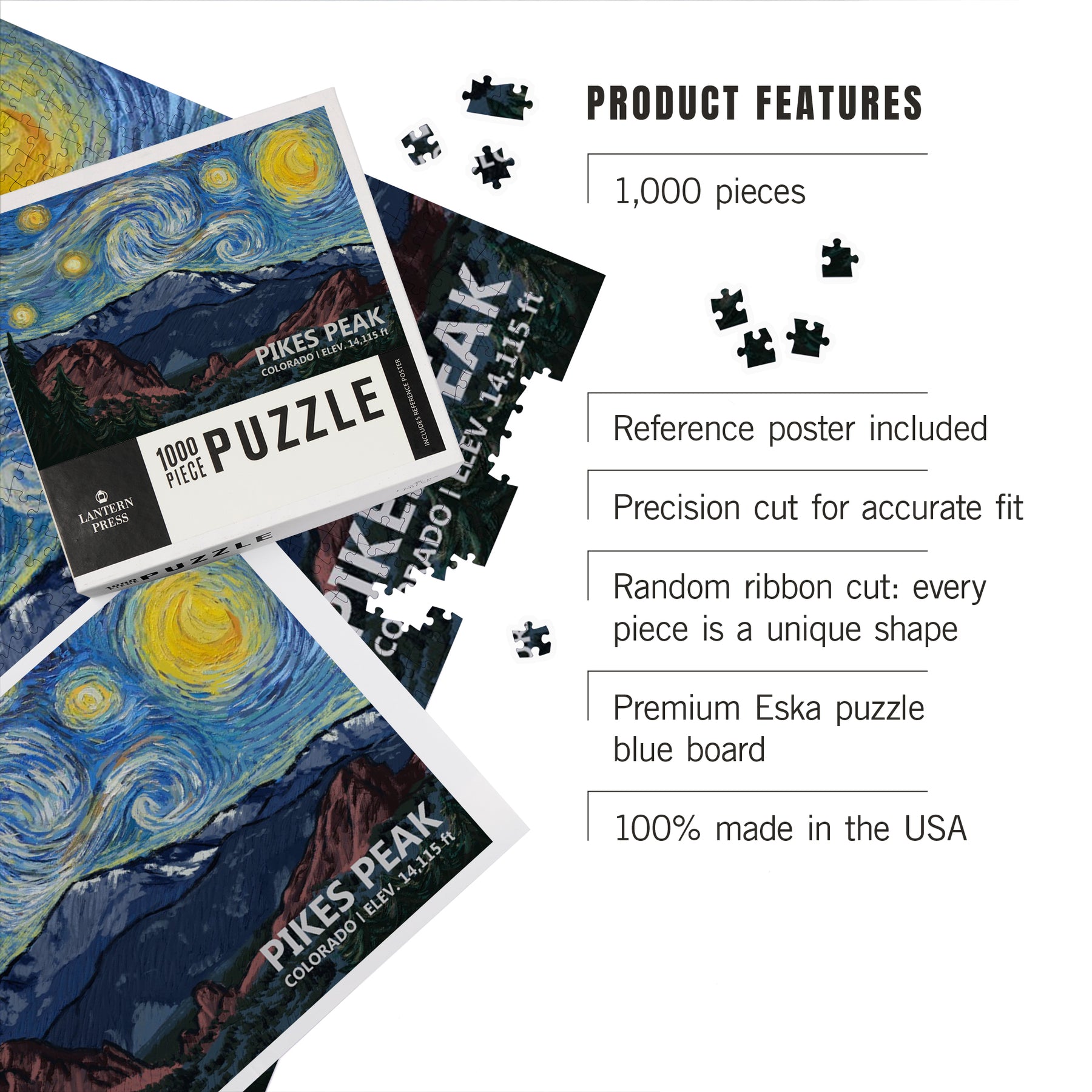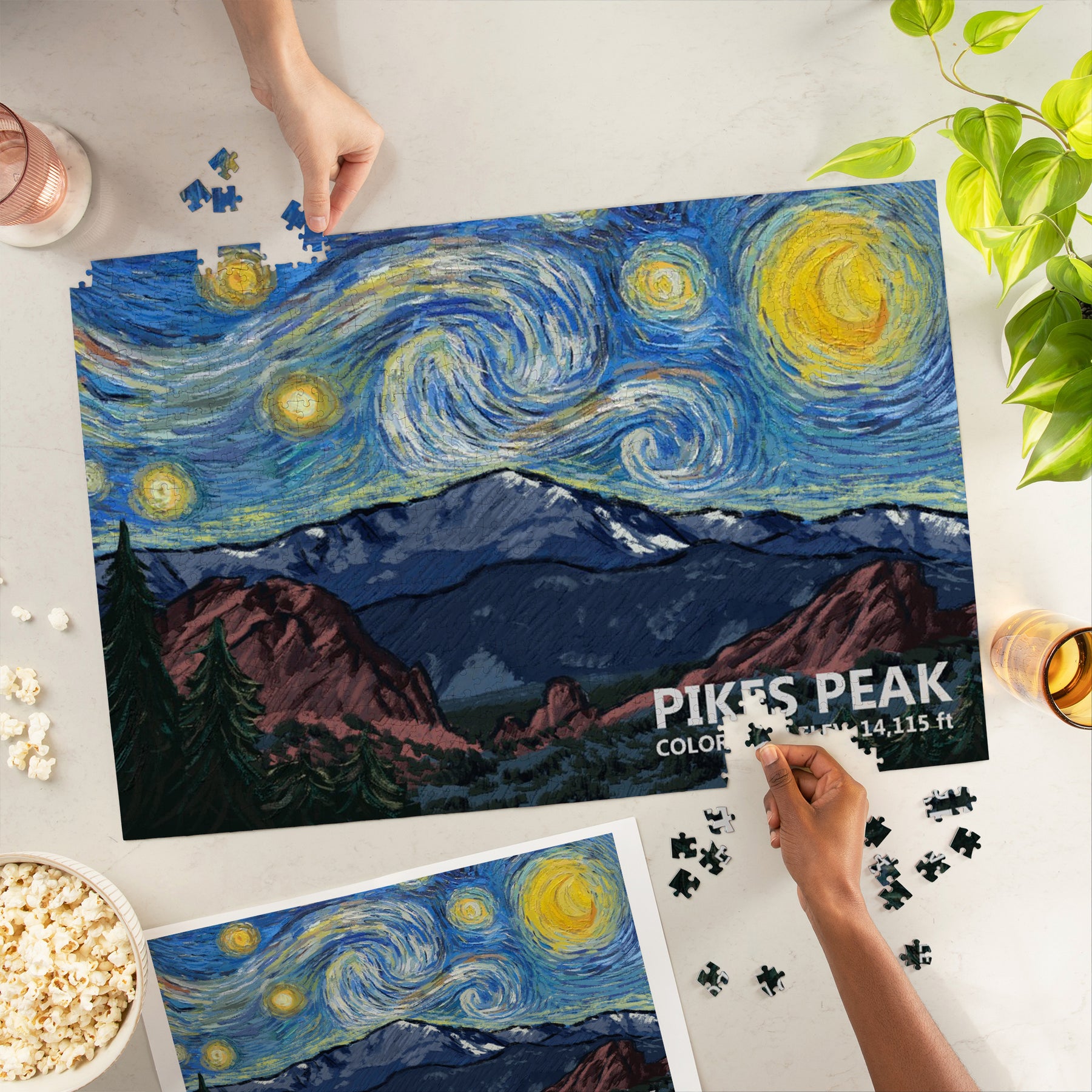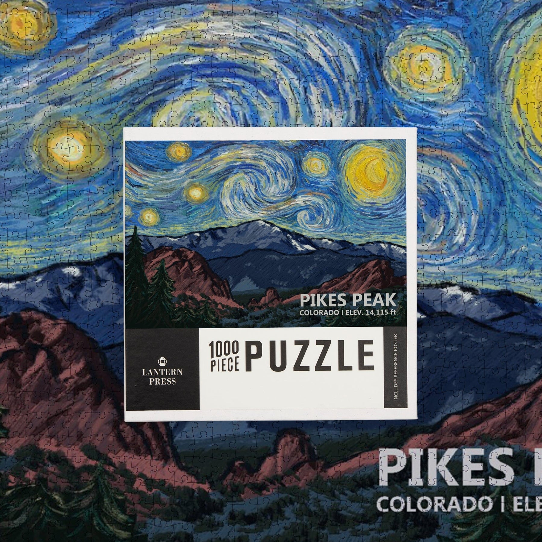 Pikes Peak, Colorado, Van Gogh Starry Night, Jigsaw Puzzle Puzzle Lantern Press