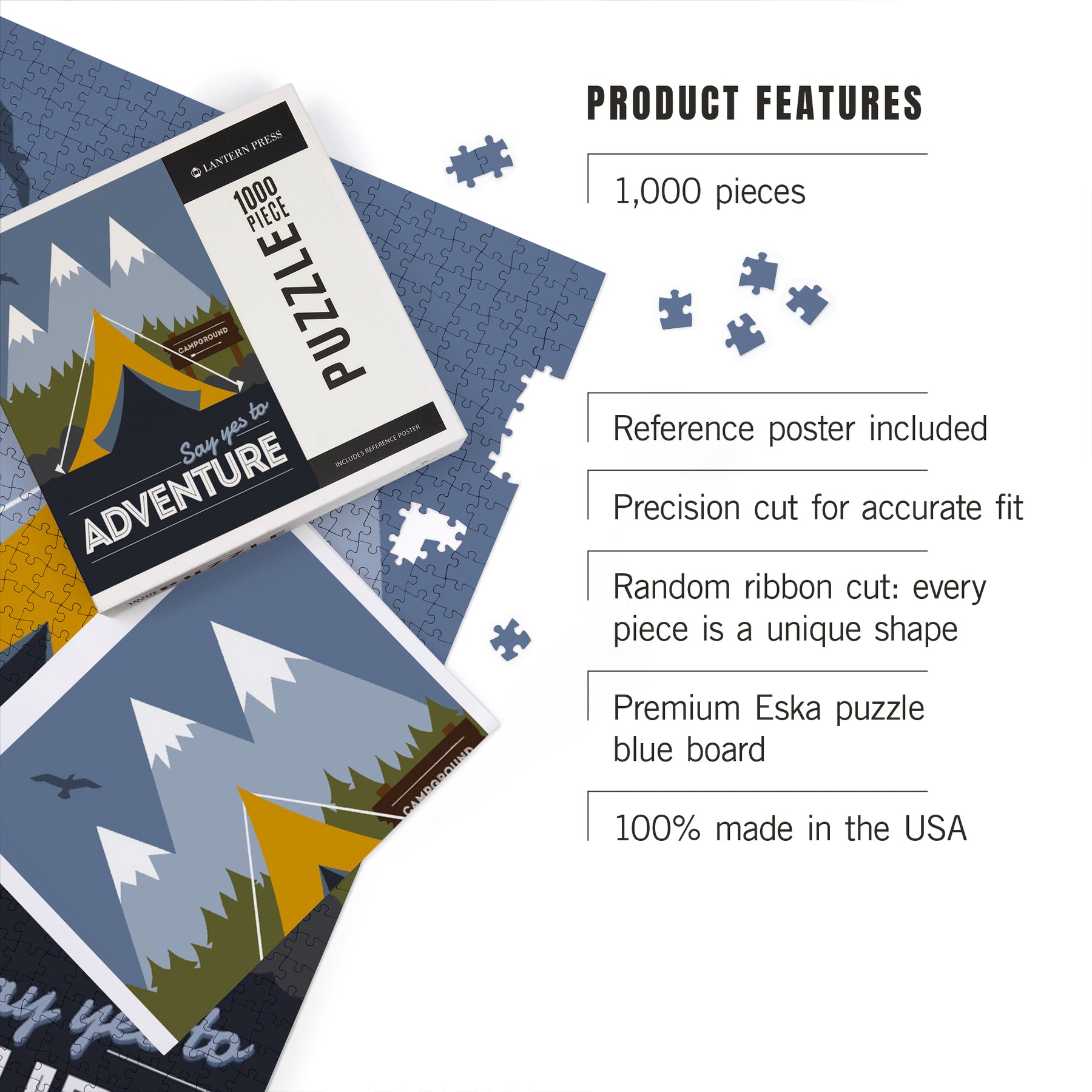 Say Yes to Adventure (Tent), Vector Style, Jigsaw Puzzle Puzzle Lantern Press