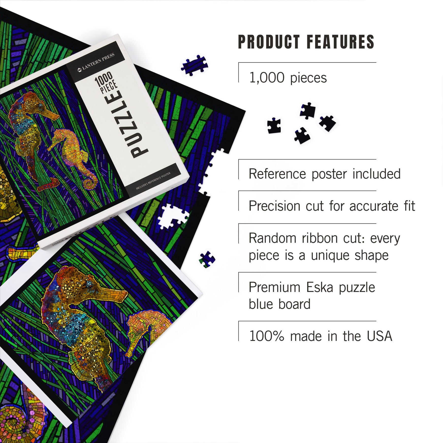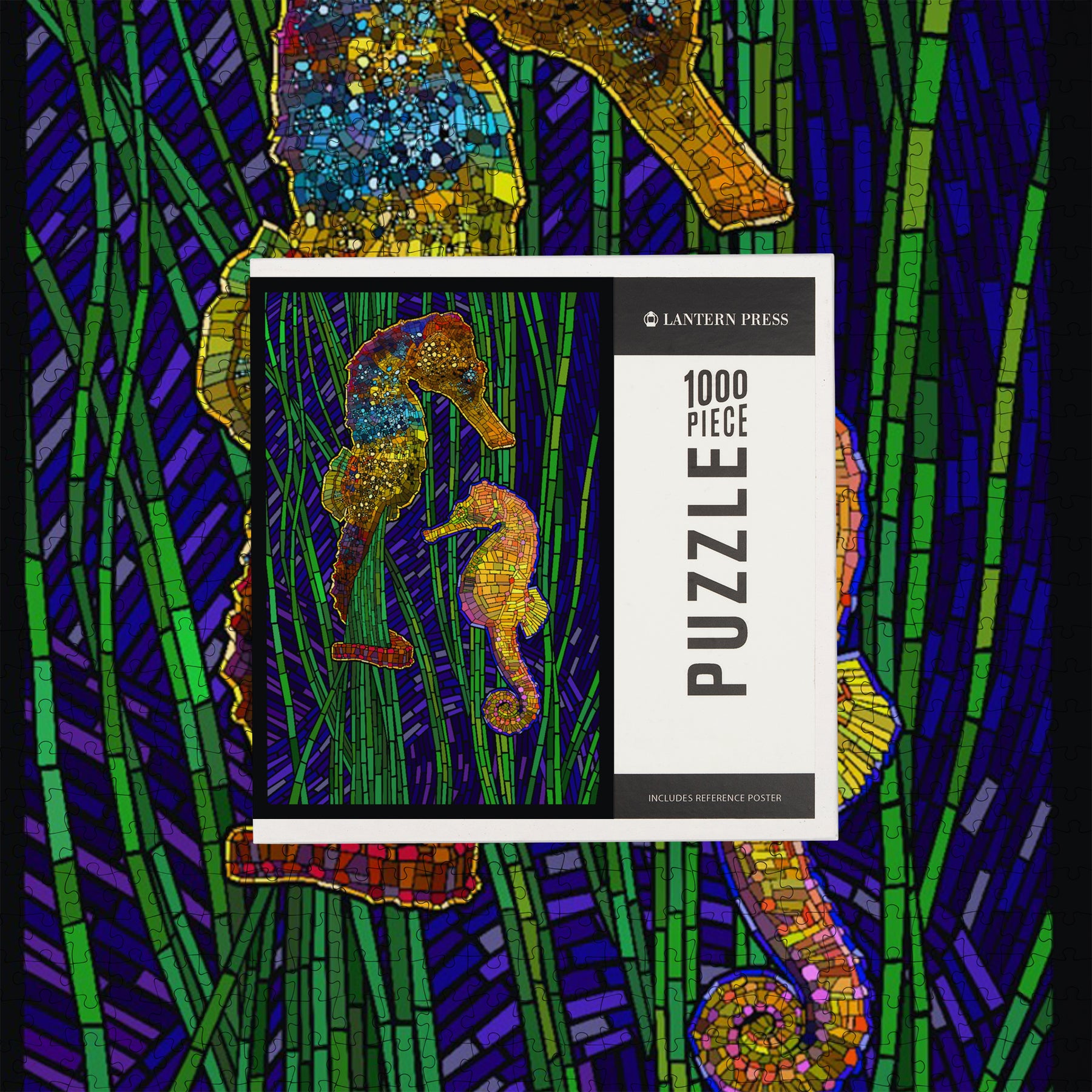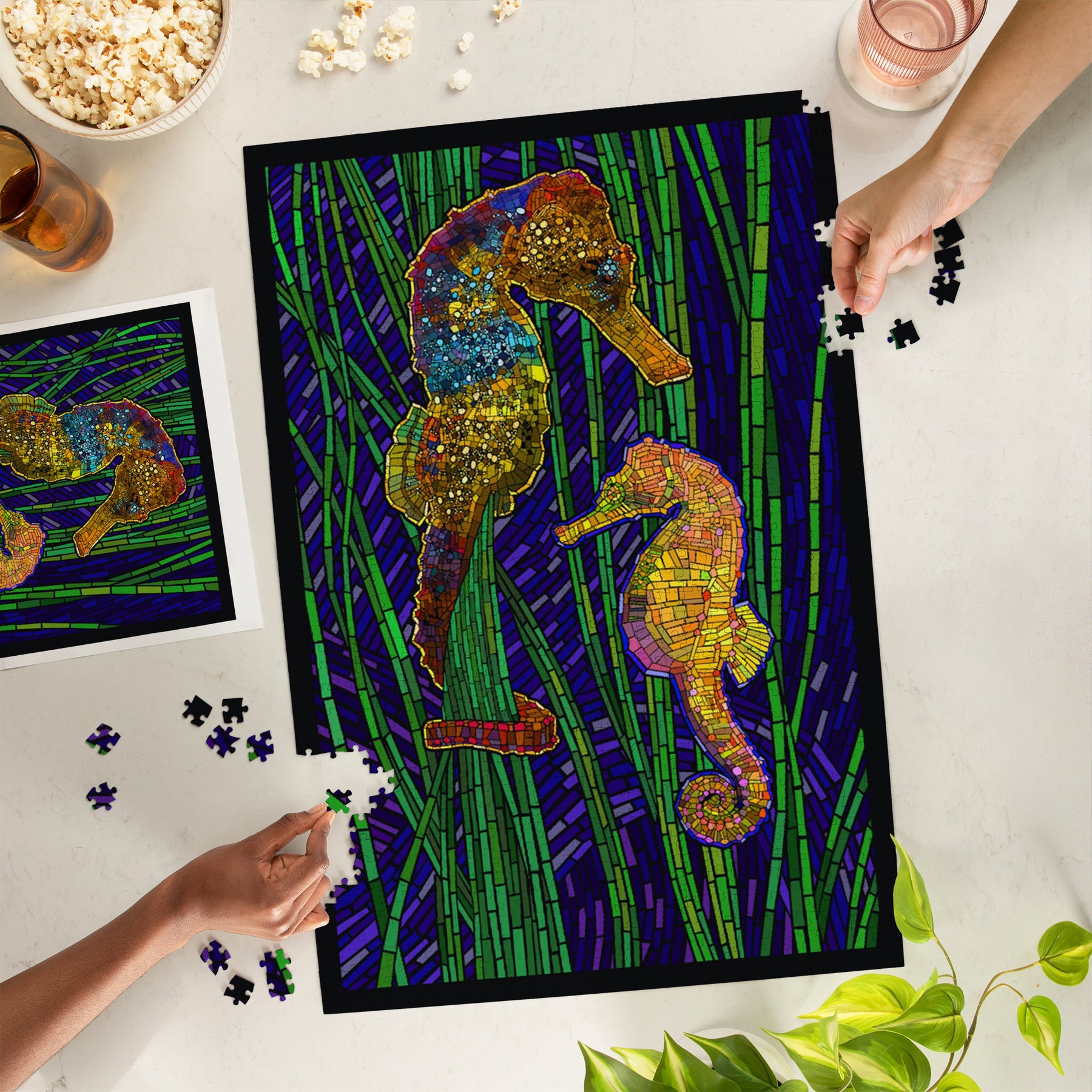 Seahorses, Paper Mosaic, Jigsaw Puzzle Puzzle Lantern Press