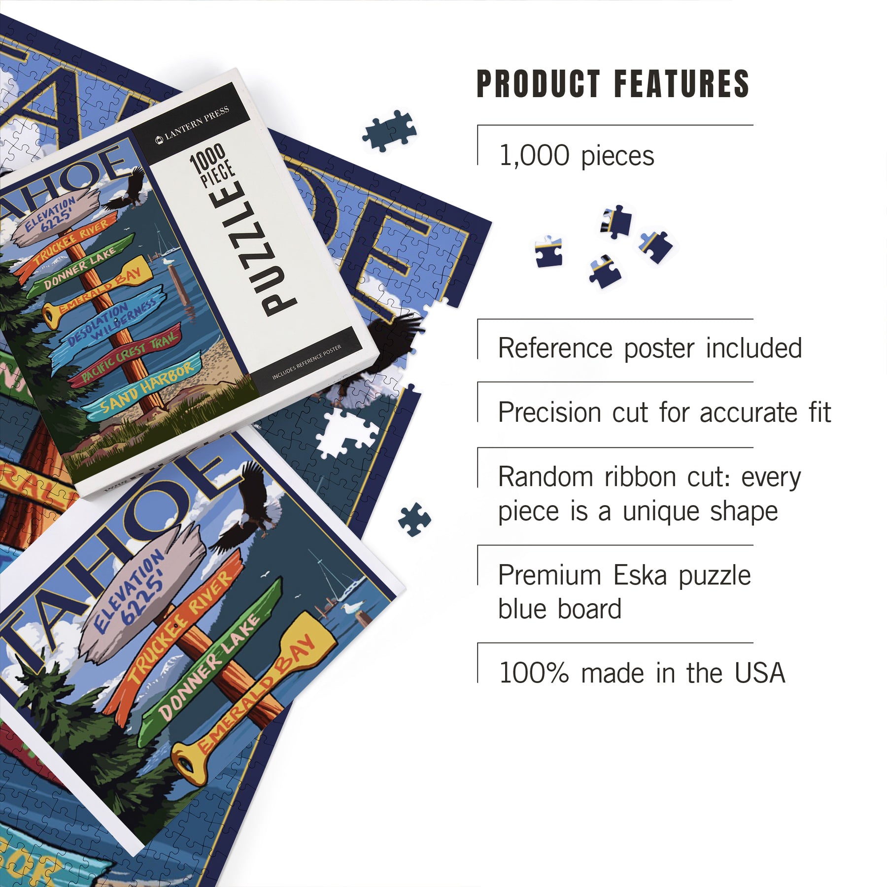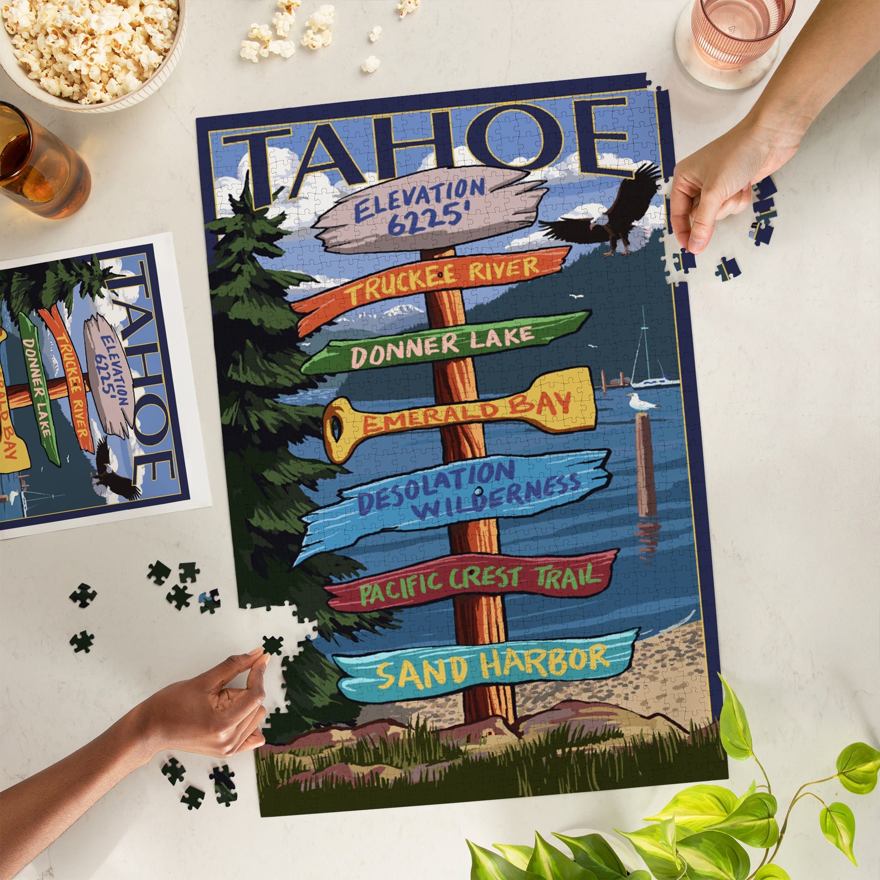 Tahoe, Destination Signpost, Jigsaw Puzzle Puzzle Lantern Press