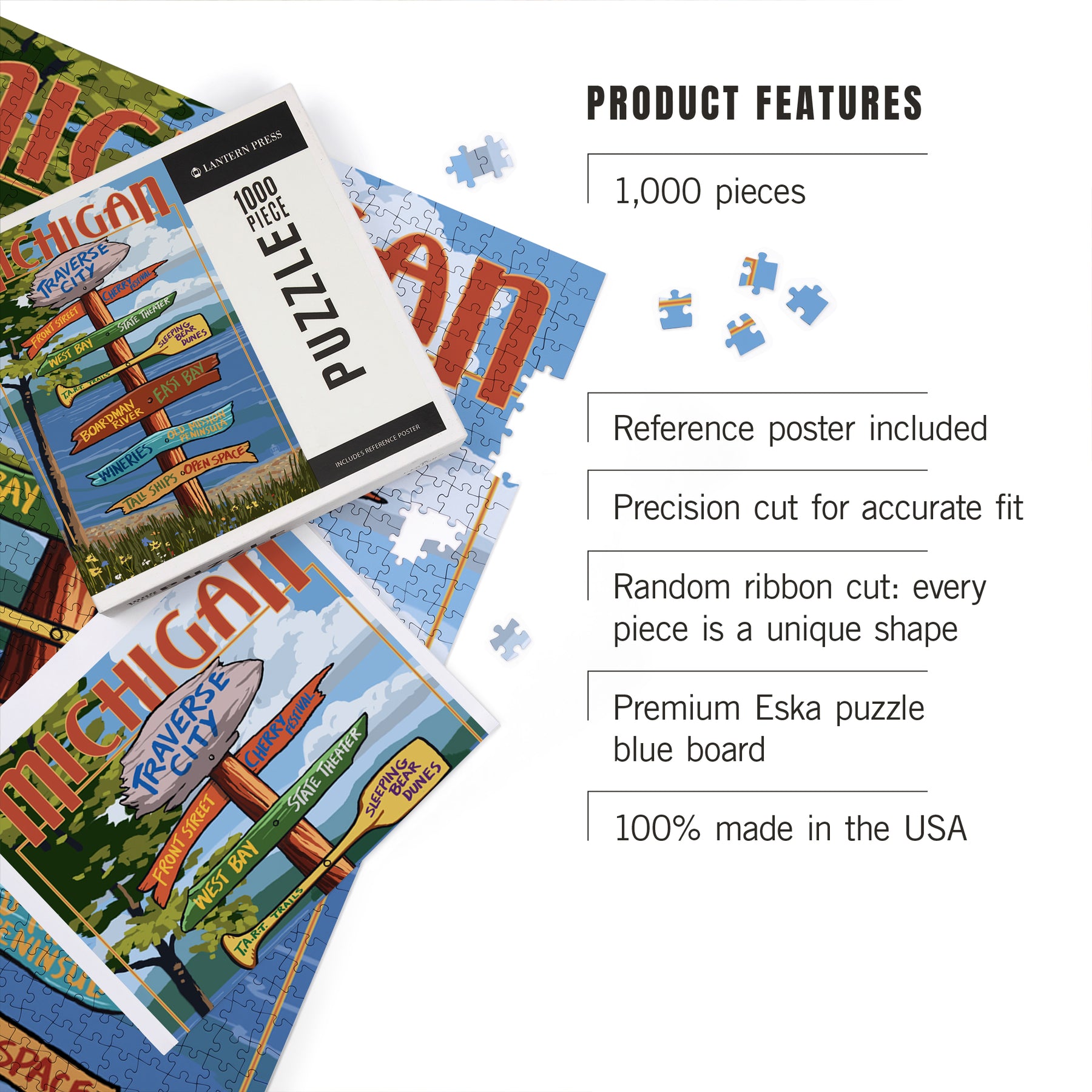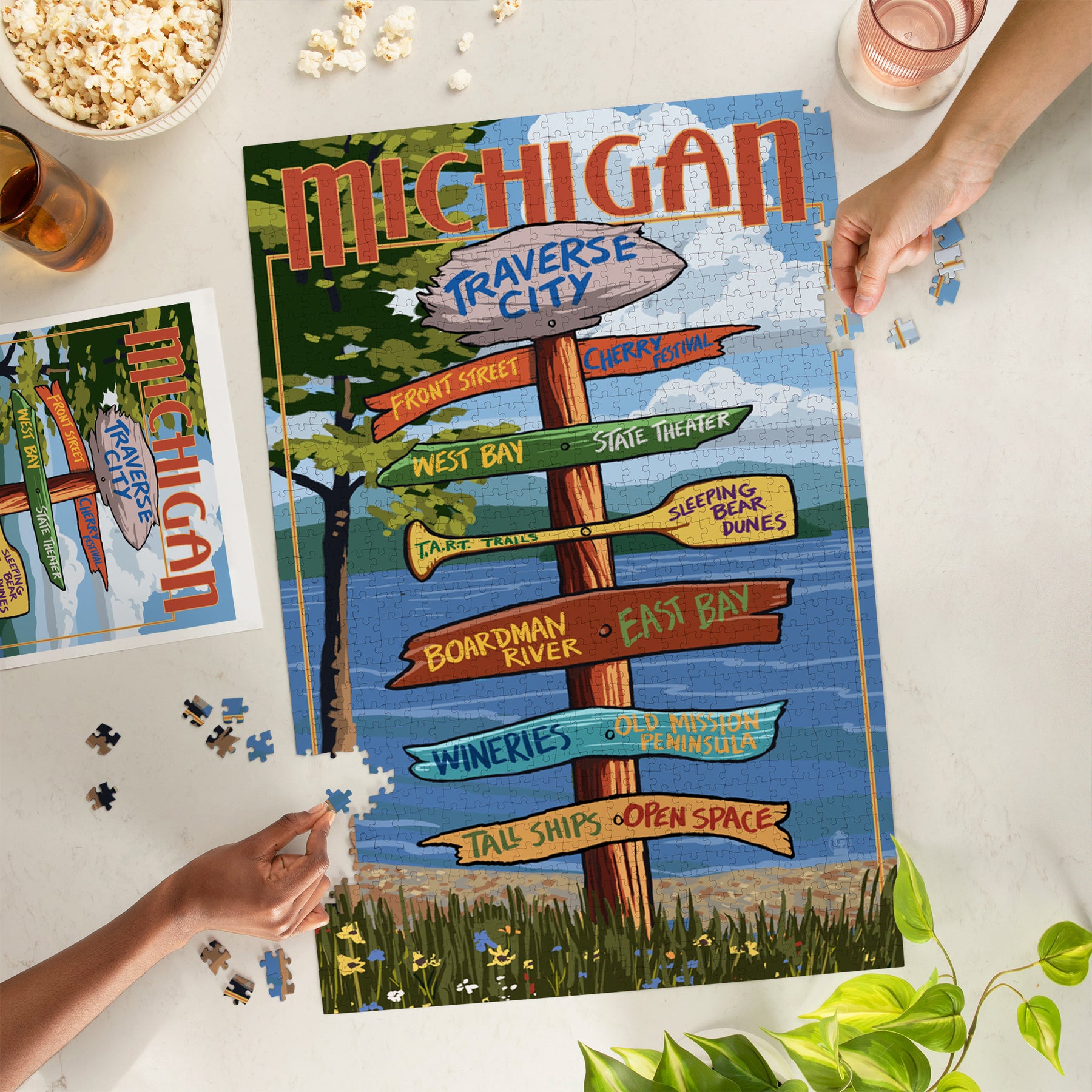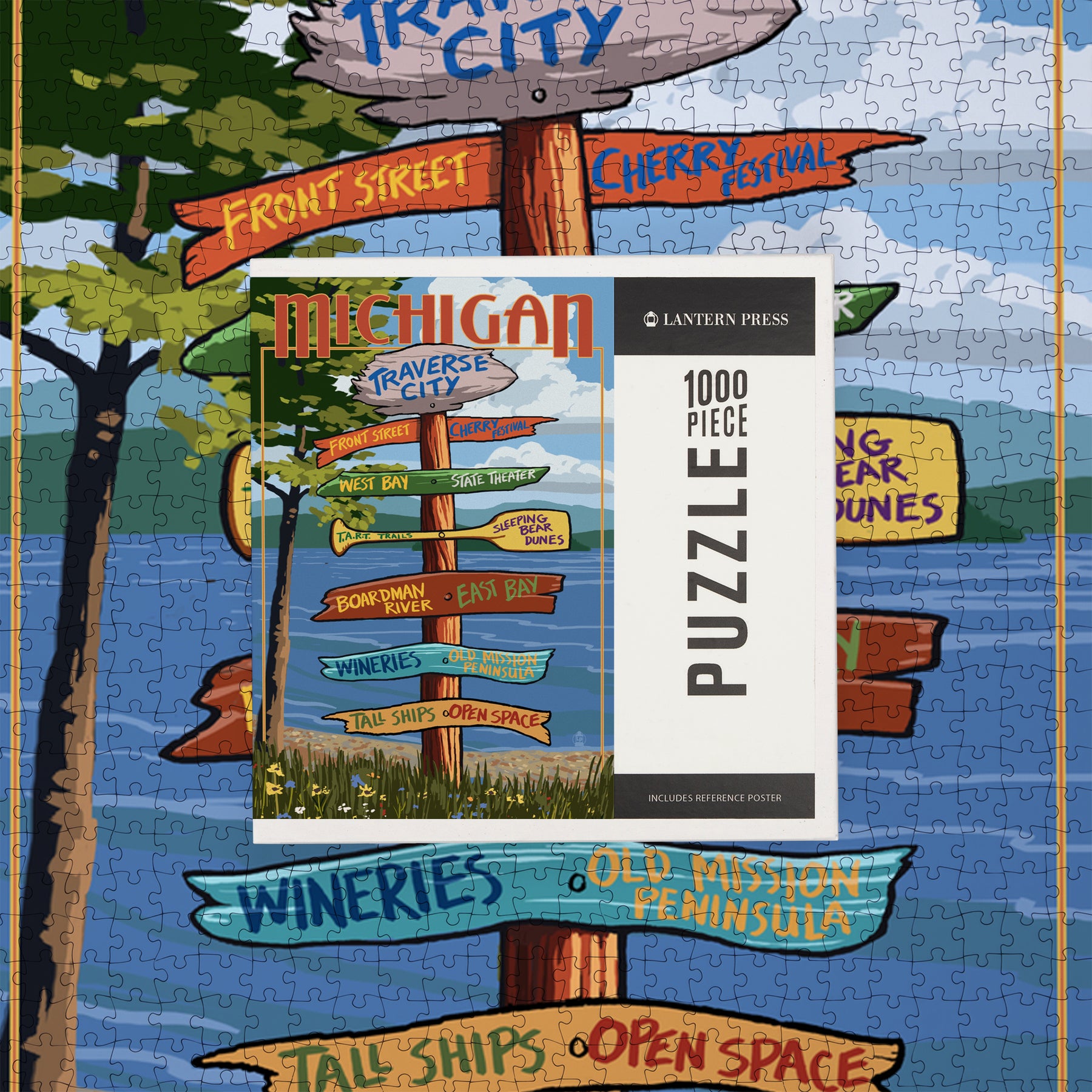 Traverse City, Michigan, Destinations Sign, Jigsaw Puzzle Puzzle Lantern Press