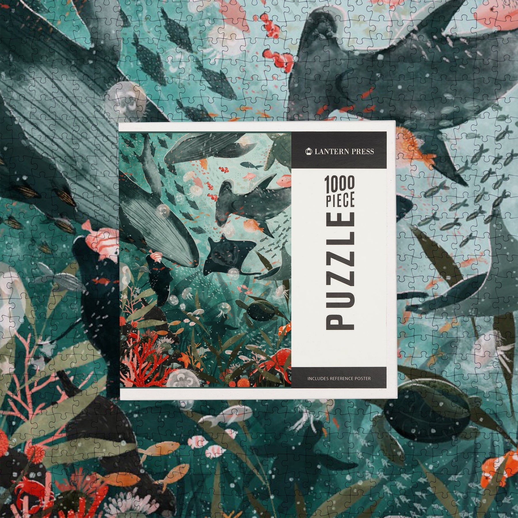 Pacific Northwest, Marine Animals, Geometric, Jigsaw Puzzle Puzzle Lantern Press