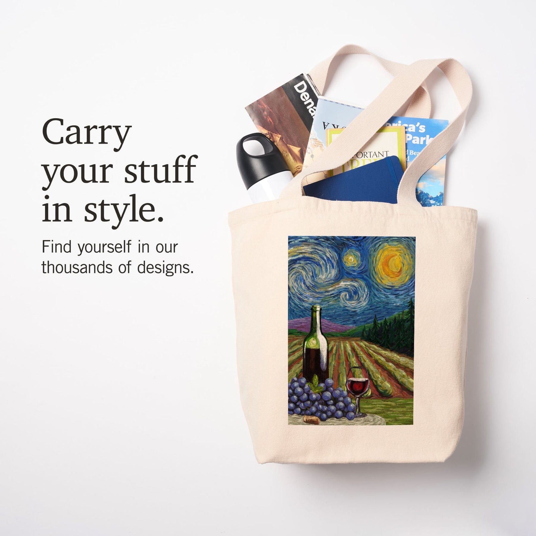 Vineyard, Starry Night, Tote Bag Totes Lantern Press