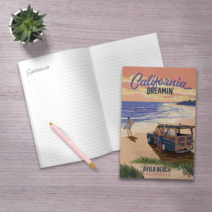 Our Hardcover Journals are printed in the USA, and feature vibrant full color artwork of Avila Beach, California, Woody on Beach, California Dreamin on quality, planet-friendly materials. We use eco-friendly ink and packaging, FSC-certified paper, and recycled materials sourced responsibly.