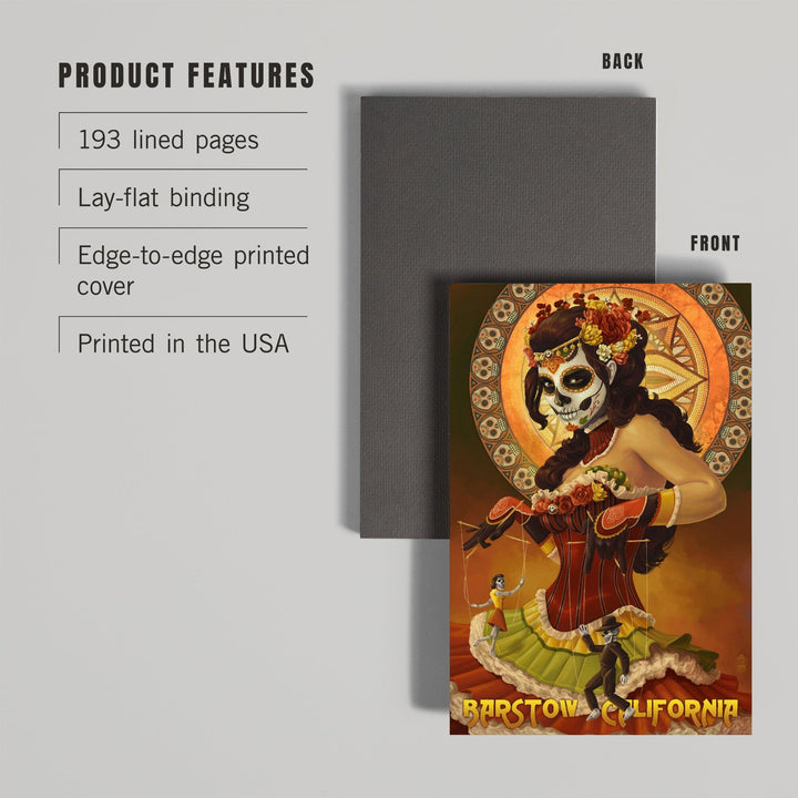 Our Hardcover Journals are printed in the USA, and feature vibrant full color artwork of Barstow, California, Day of the Dead Marionettes on quality, planet-friendly materials. We use eco-friendly ink and packaging, FSC-certified paper, and recycled materials sourced responsibly.