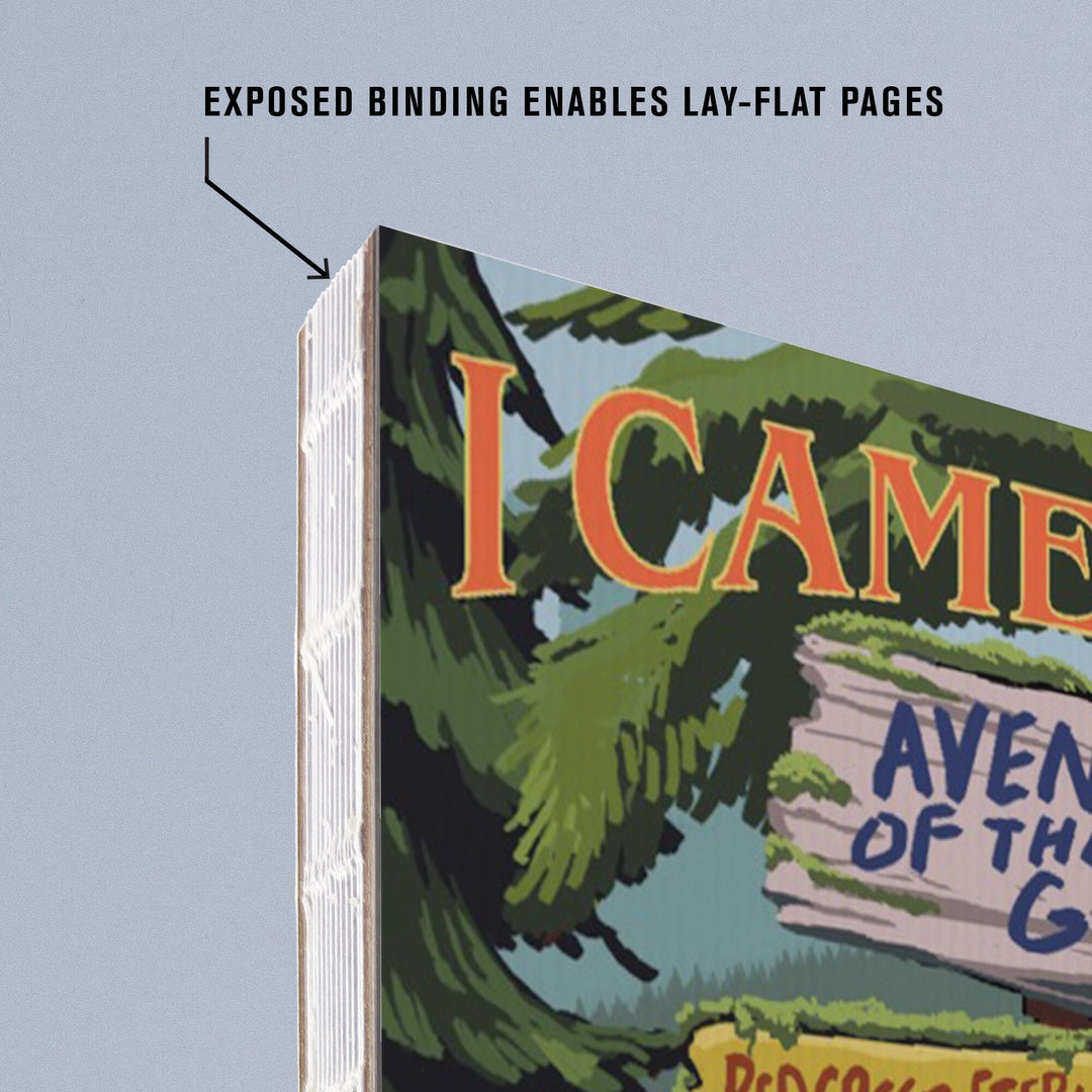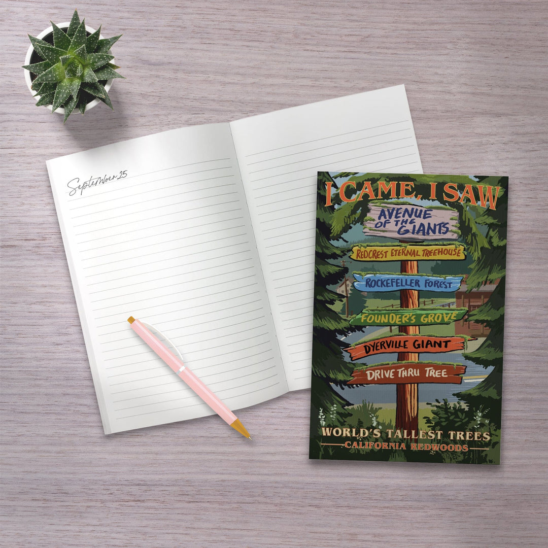 Our Hardcover Journals are printed in the USA, and feature vibrant full color artwork of California Redwoods, Destination Signpost, I Came I Saw on quality, planet-friendly materials. We use eco-friendly ink and packaging, FSC-certified paper, and recycled materials sourced responsibly.