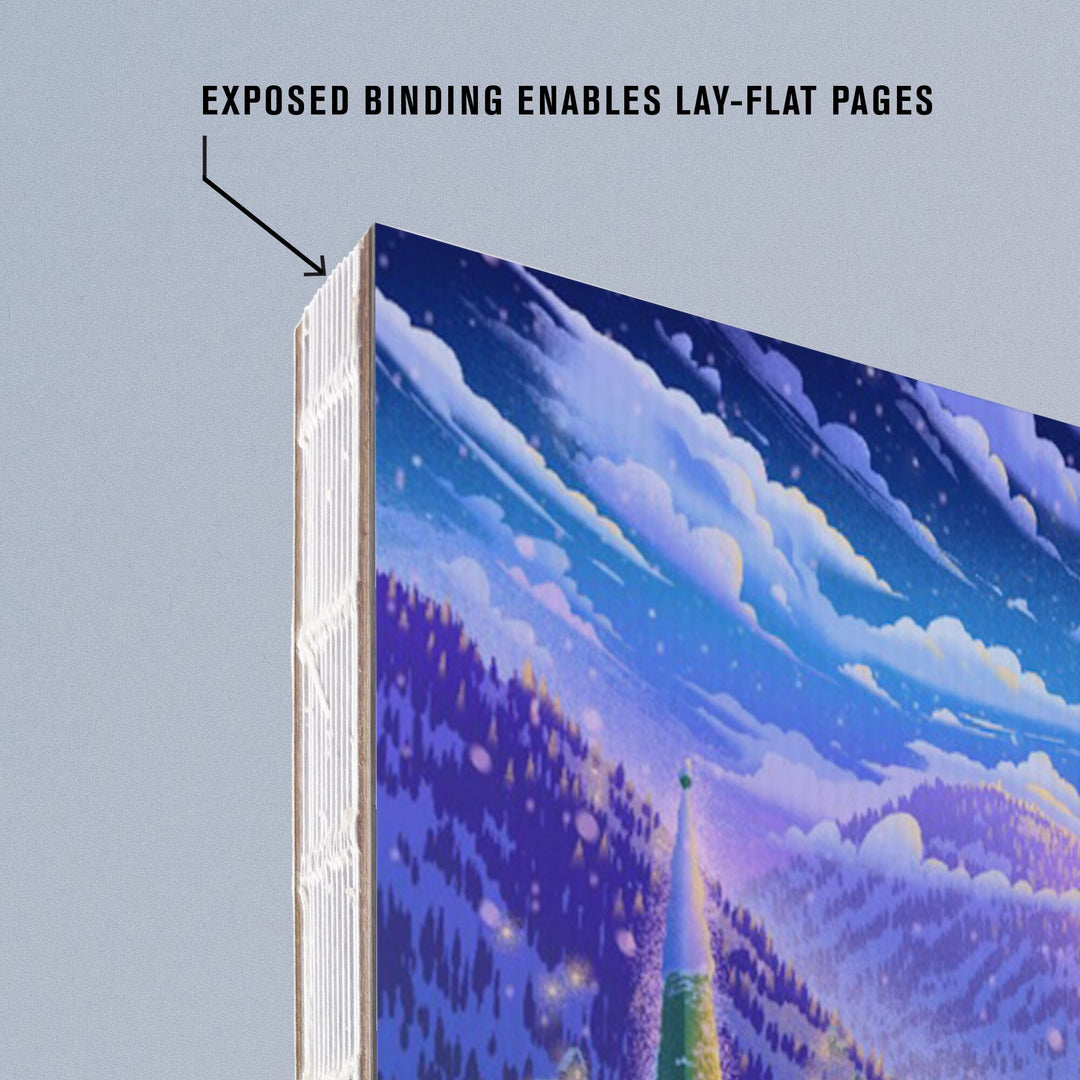Our Hardcover Journals are printed in the USA, and feature vibrant full color artwork of Sleepy Winter Village, Santa Flying Over Mountain on quality, planet-friendly materials. We use eco-friendly ink and packaging, FSC-certified paper, and recycled materials sourced responsibly.