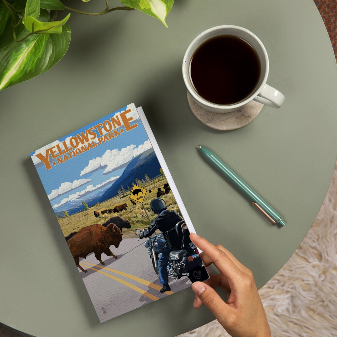 Our Hardcover Journals are printed in the USA, and feature vibrant full color artwork of Yellowstone National Park, Wyoming, Motorcycle and Bison on quality, planet-friendly materials. We use eco-friendly ink and packaging, FSC-certified paper, and recycled materials sourced responsibly.