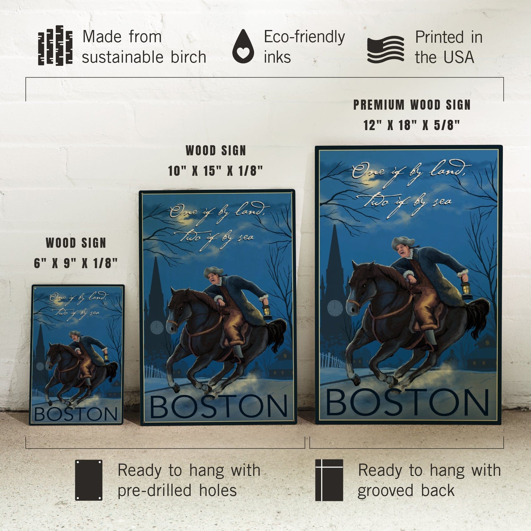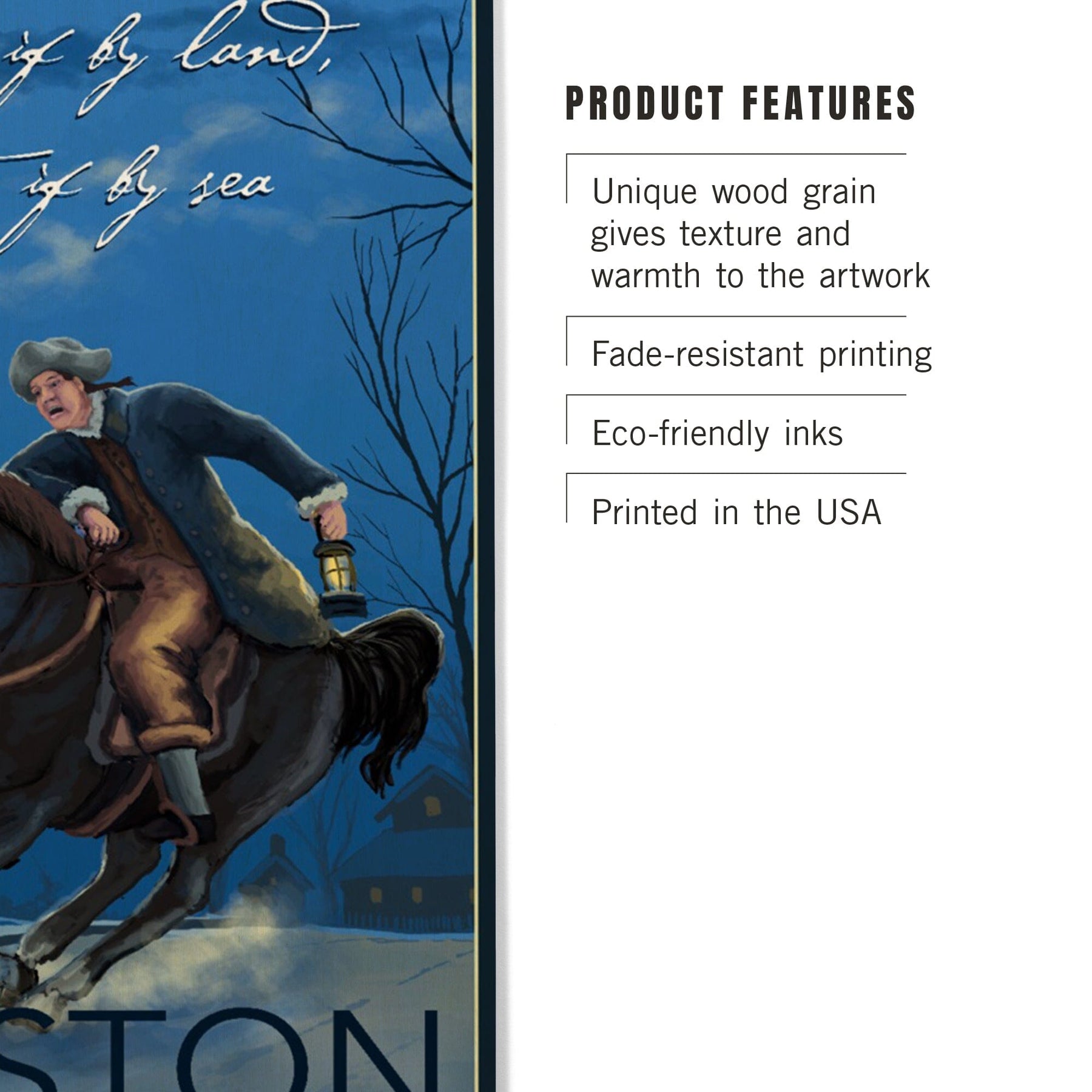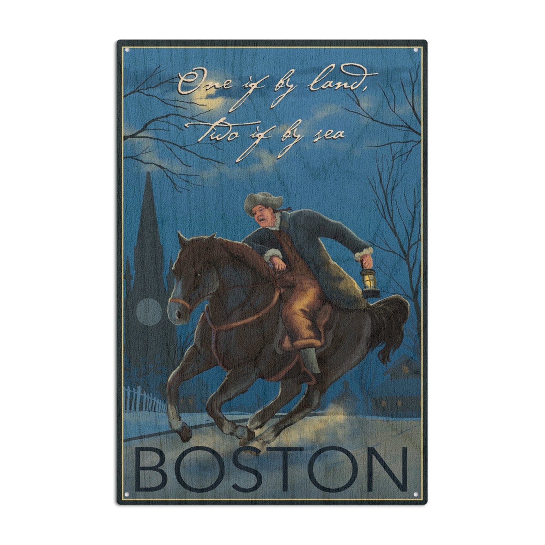 Boston, Massachusetts, Paul Revere, One If By Land, Lantern Press Artwork, Wood Signs and Postcards